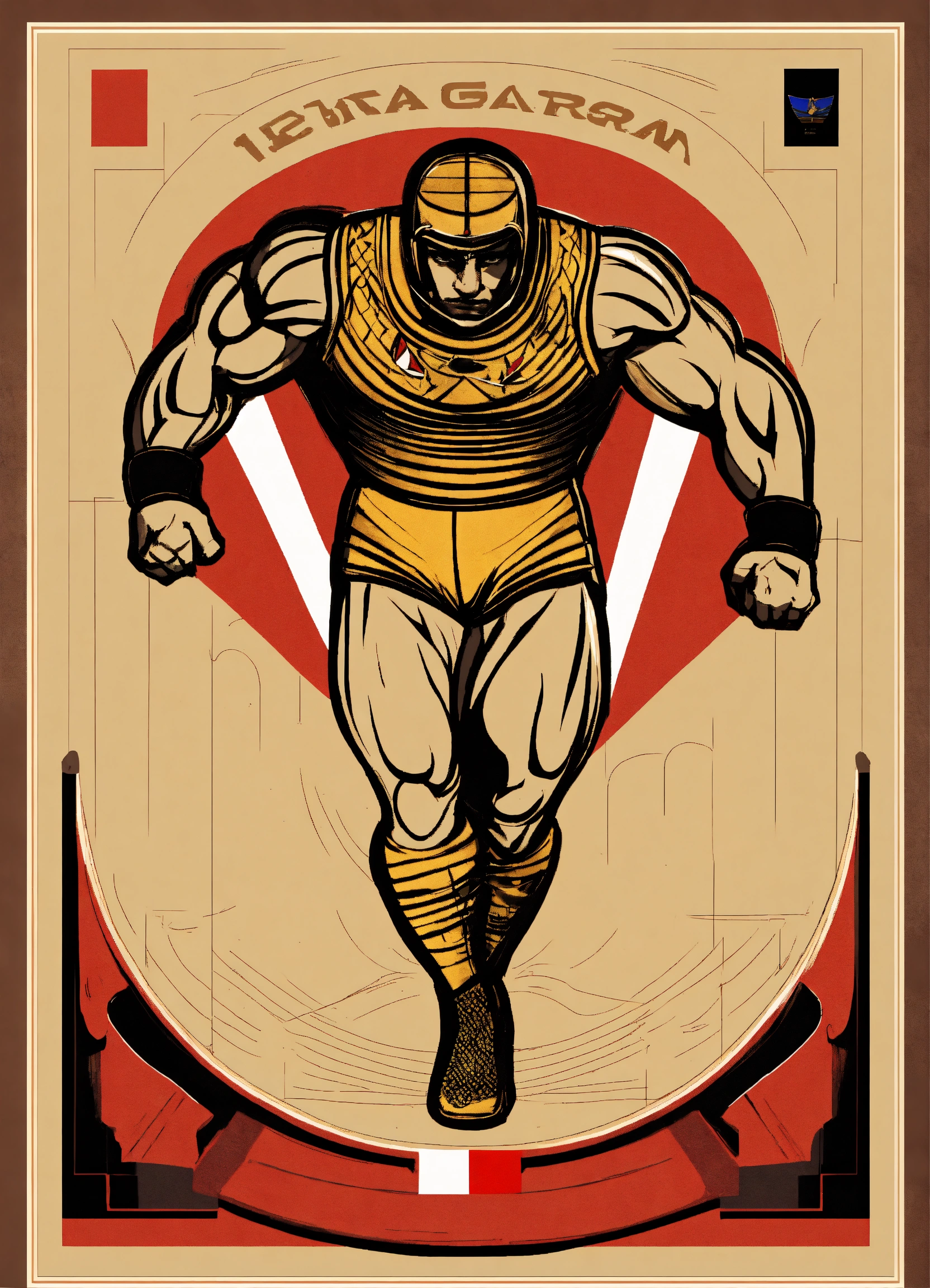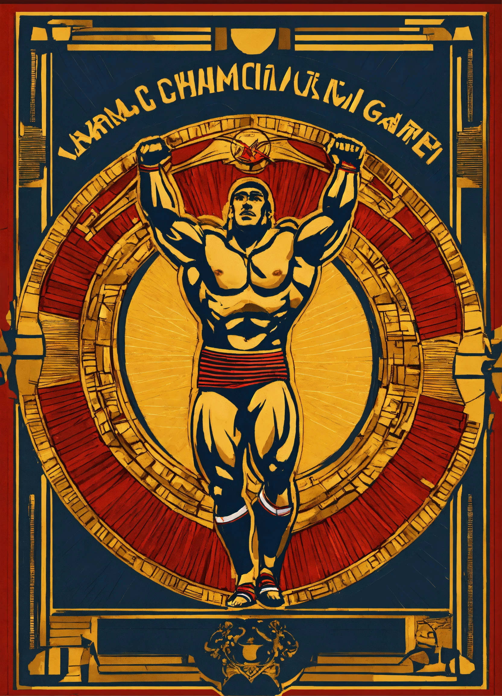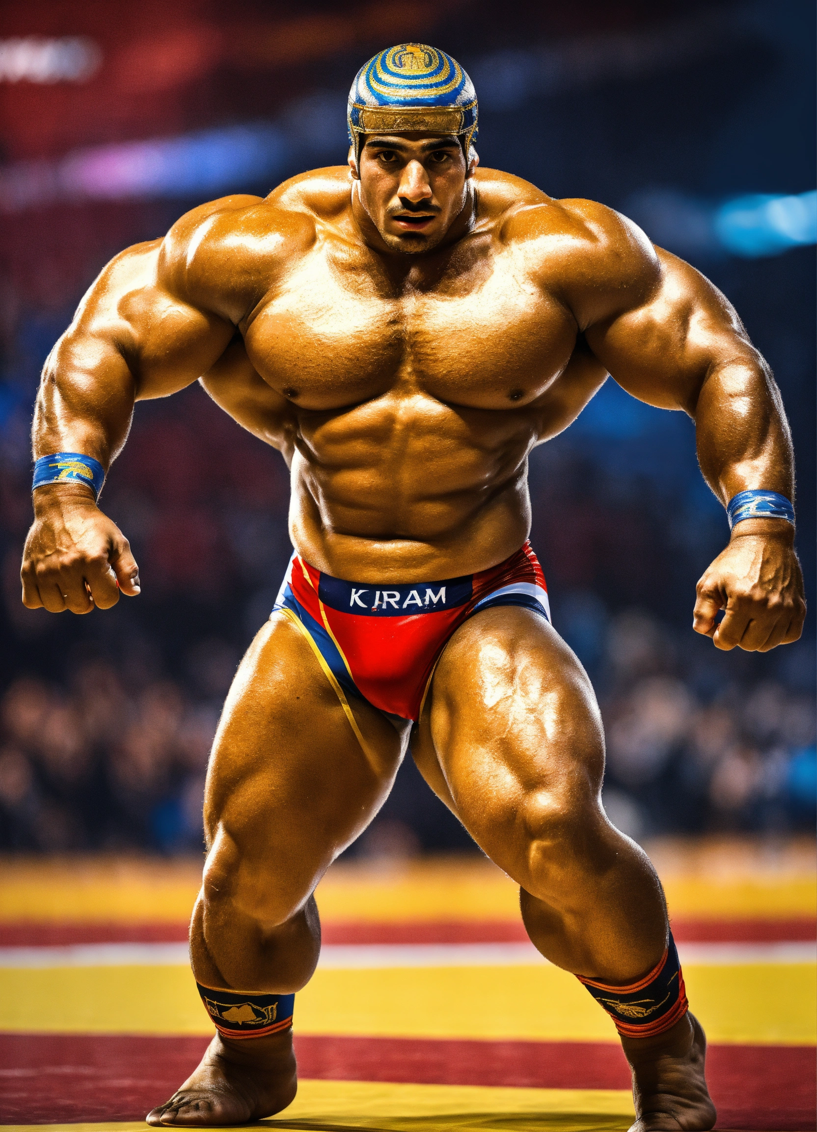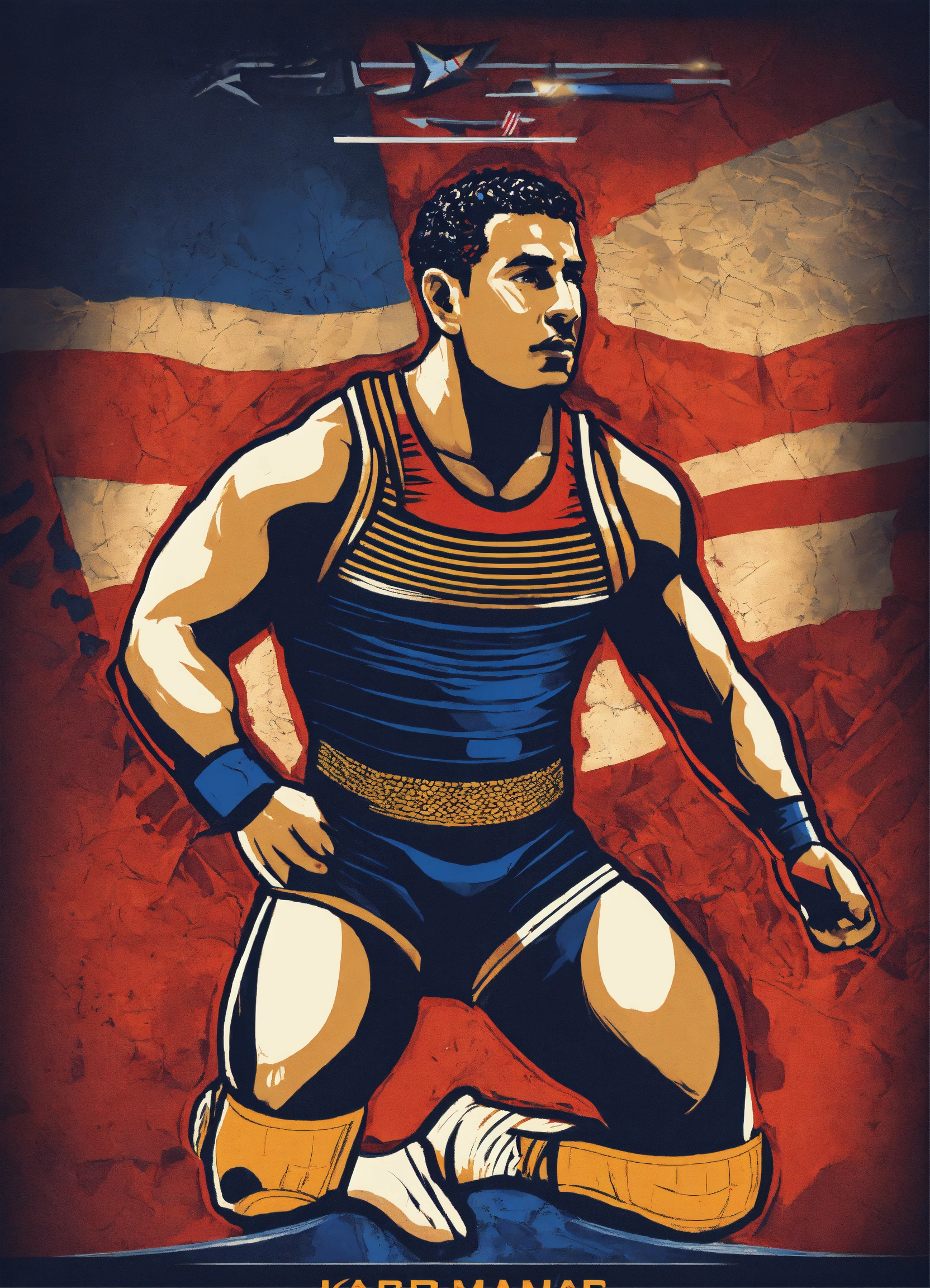 "a design that represents the renowned egyptian athlete karam gaber winning the world championship in greco-roman wrestling, "
