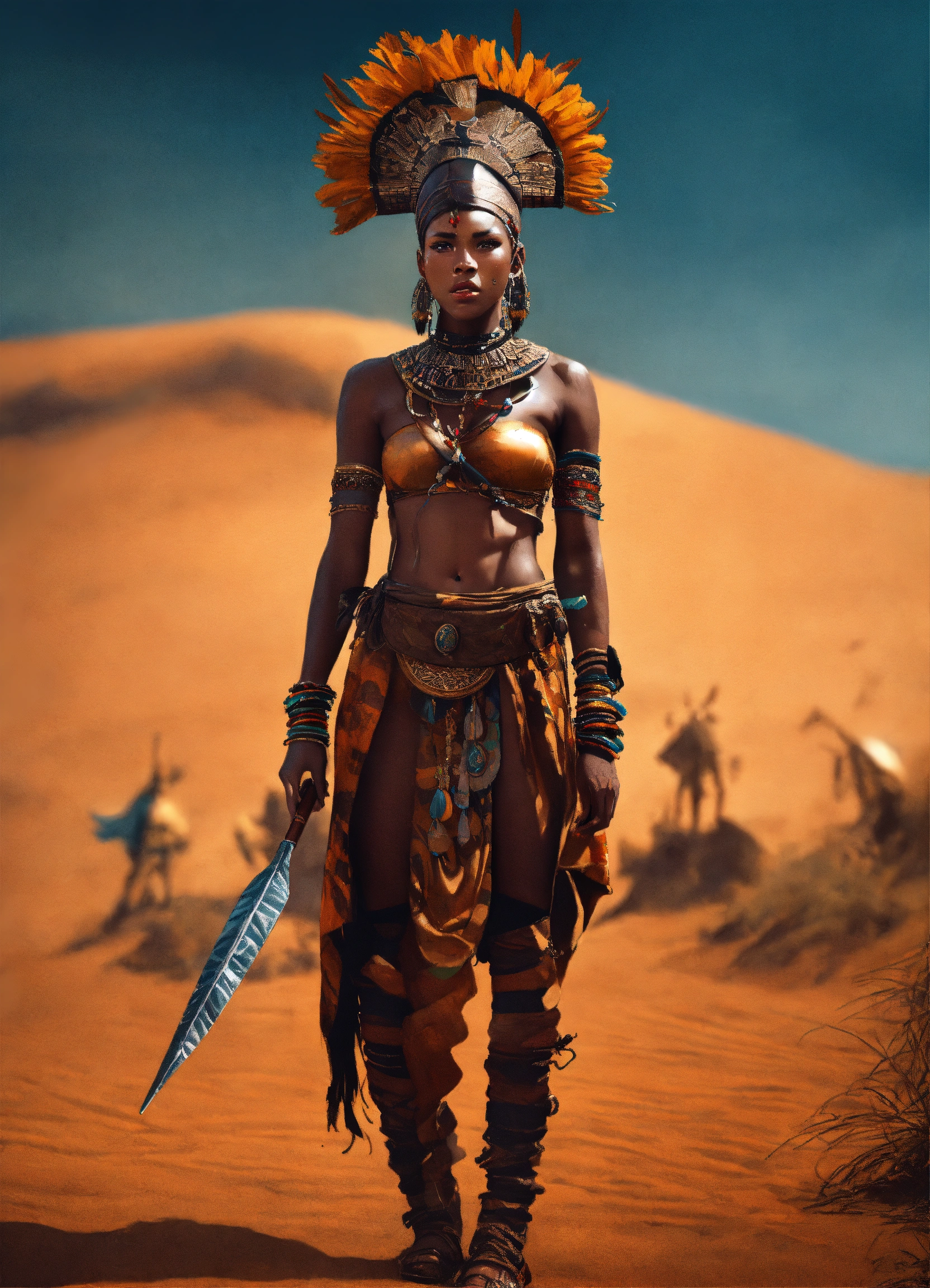 A ultra beautiful african tribal warrior, intricate, hyper-realistic, fantasy, cinematic lighting, other worldy, surreal digital painting, dark moody aesthetic