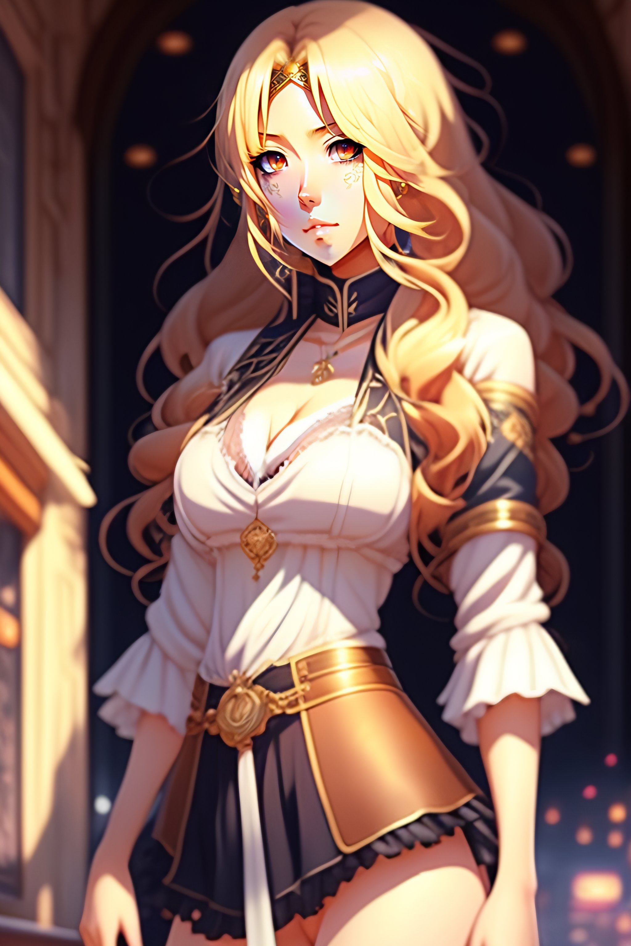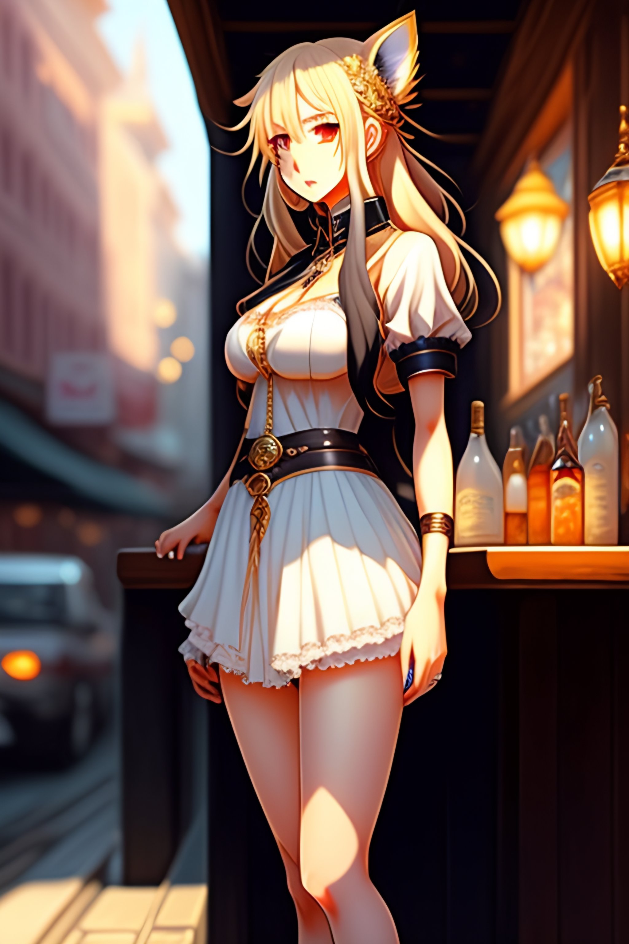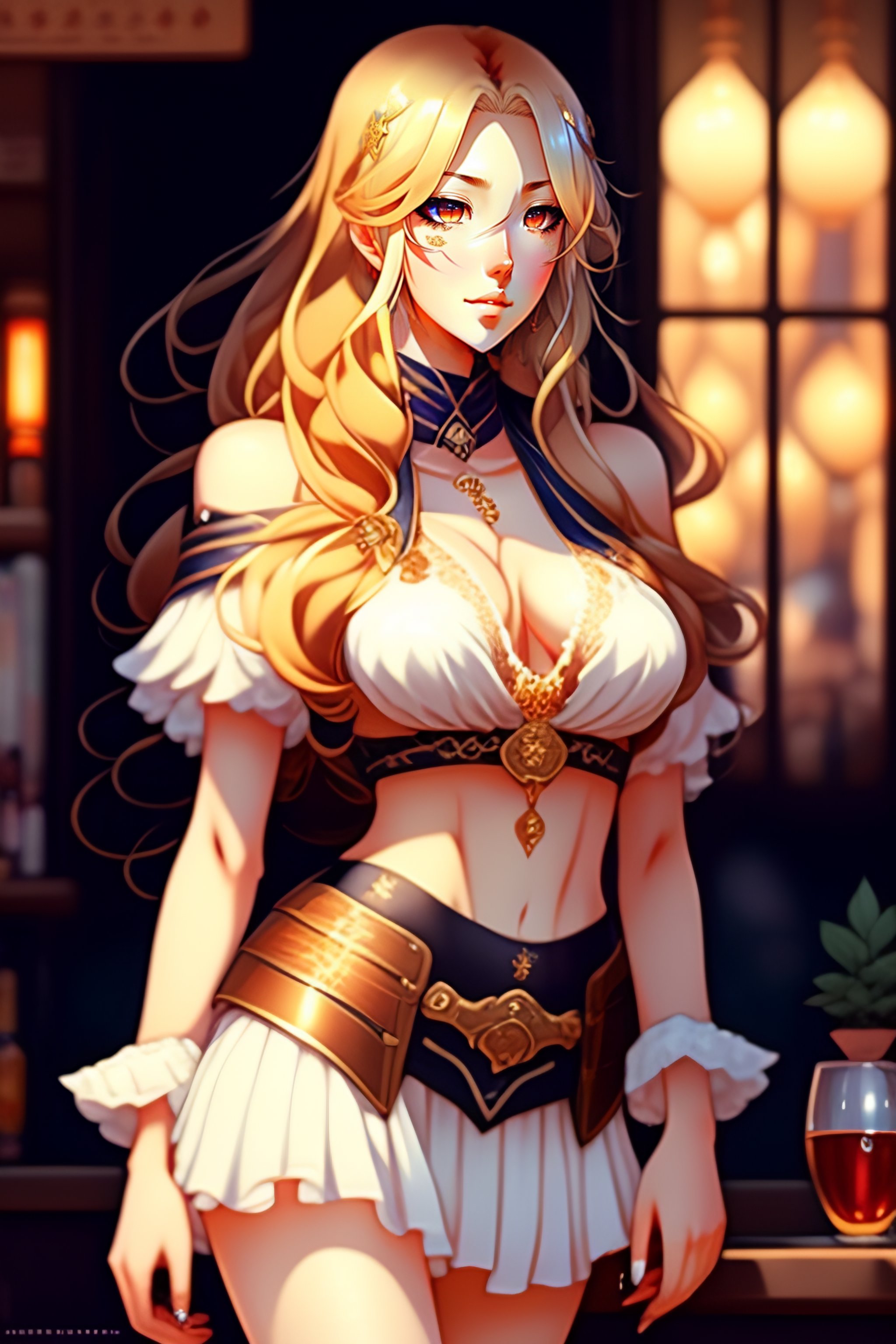 Beautiful anime girl, manga style, an attractive 25 years old woman, working at an old west saloon, intricate, elegant, mother, bast size e, blonde long hair, miniskirt with slit, foxy eyes, highly detailed, trending on pixiv fanbox, anime, art by artgerm, greg rutkowski, alphonse mucha
