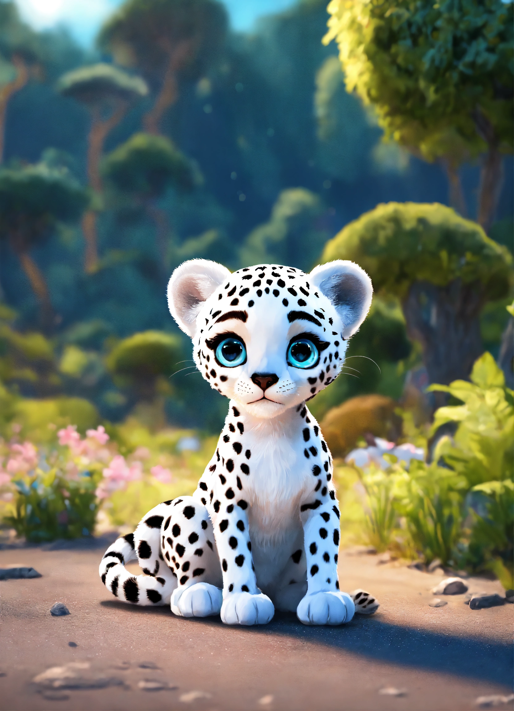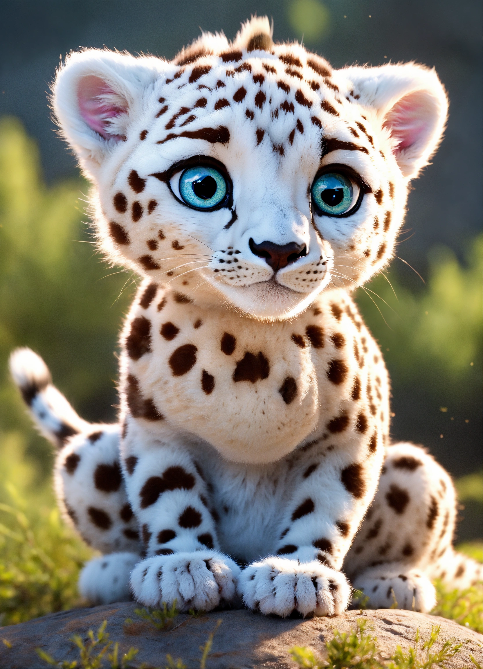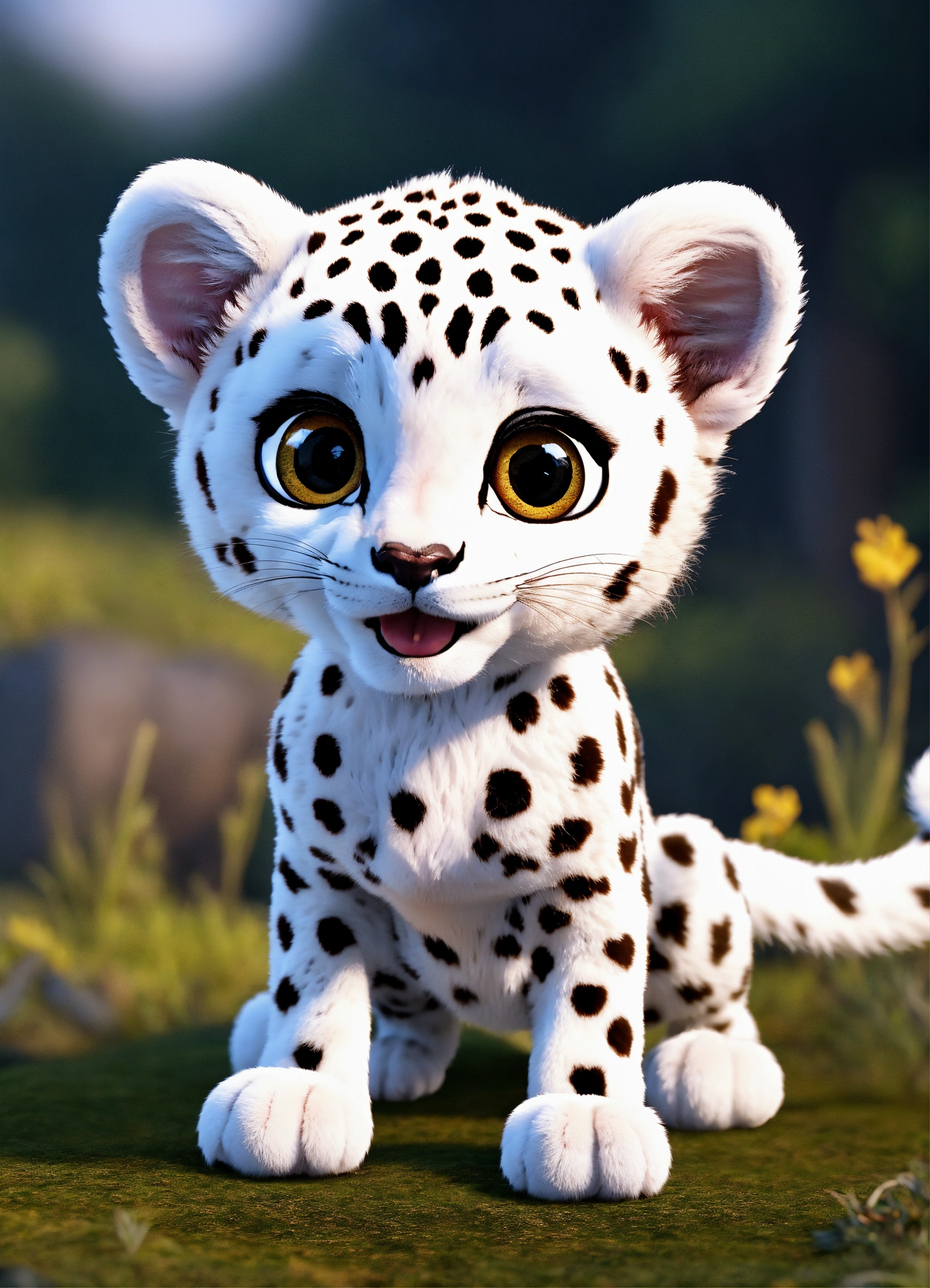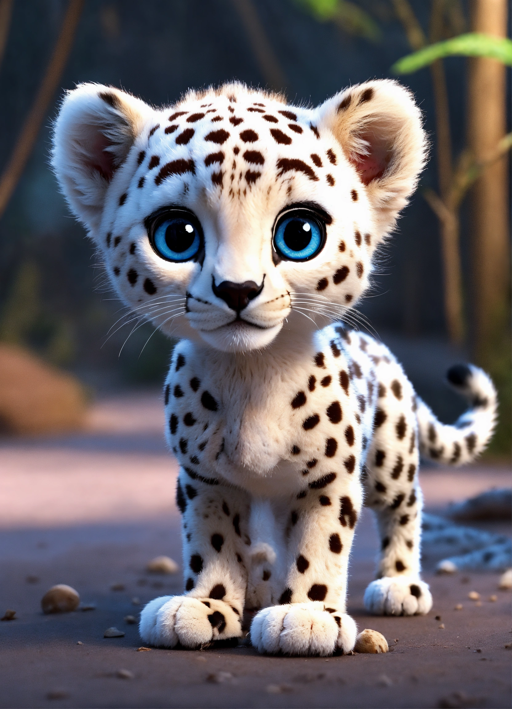 A cute baby all white cheetah with big eyes
