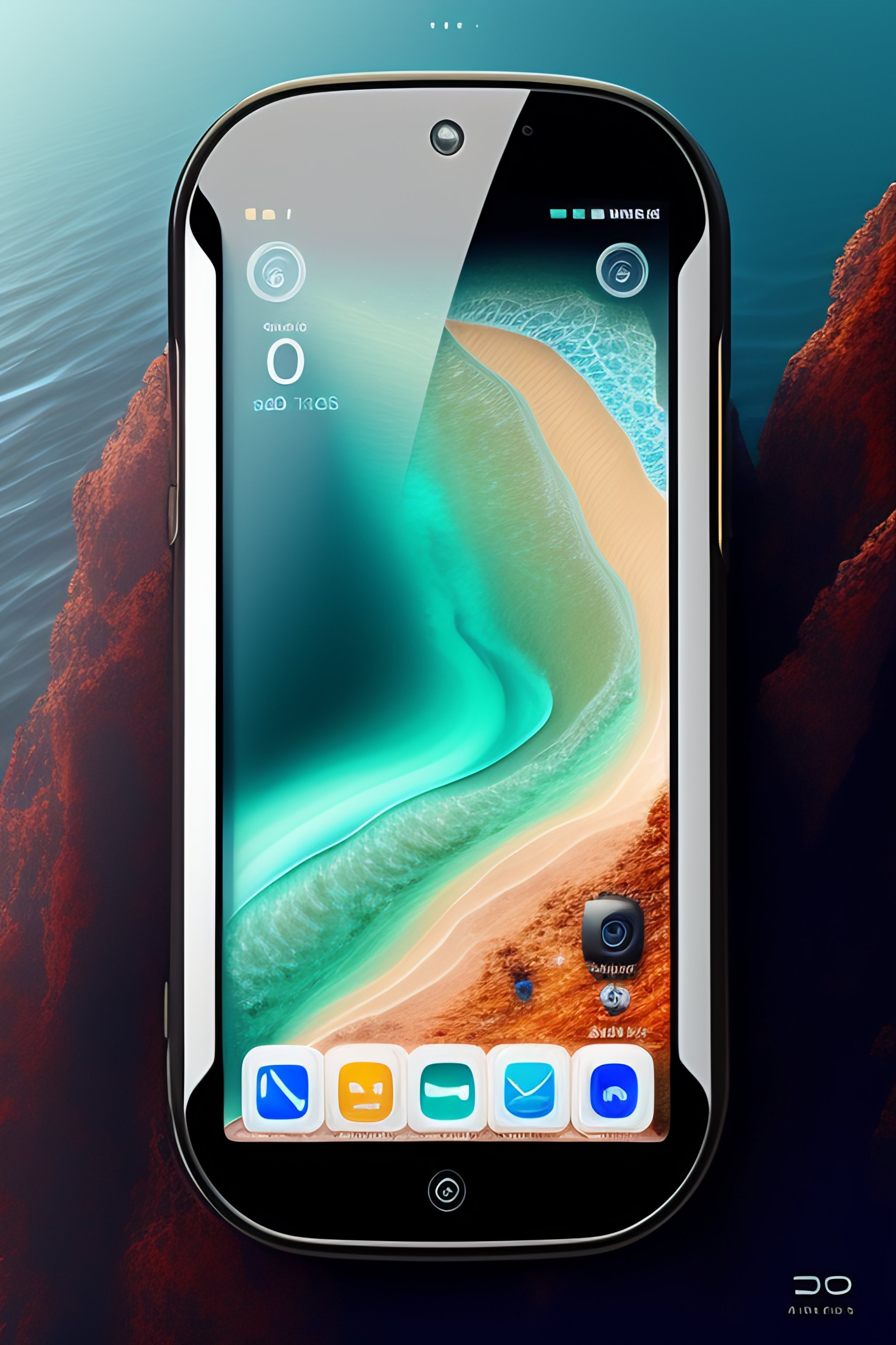 A futuristic cell phone inspired by the ocean floor with the parts map