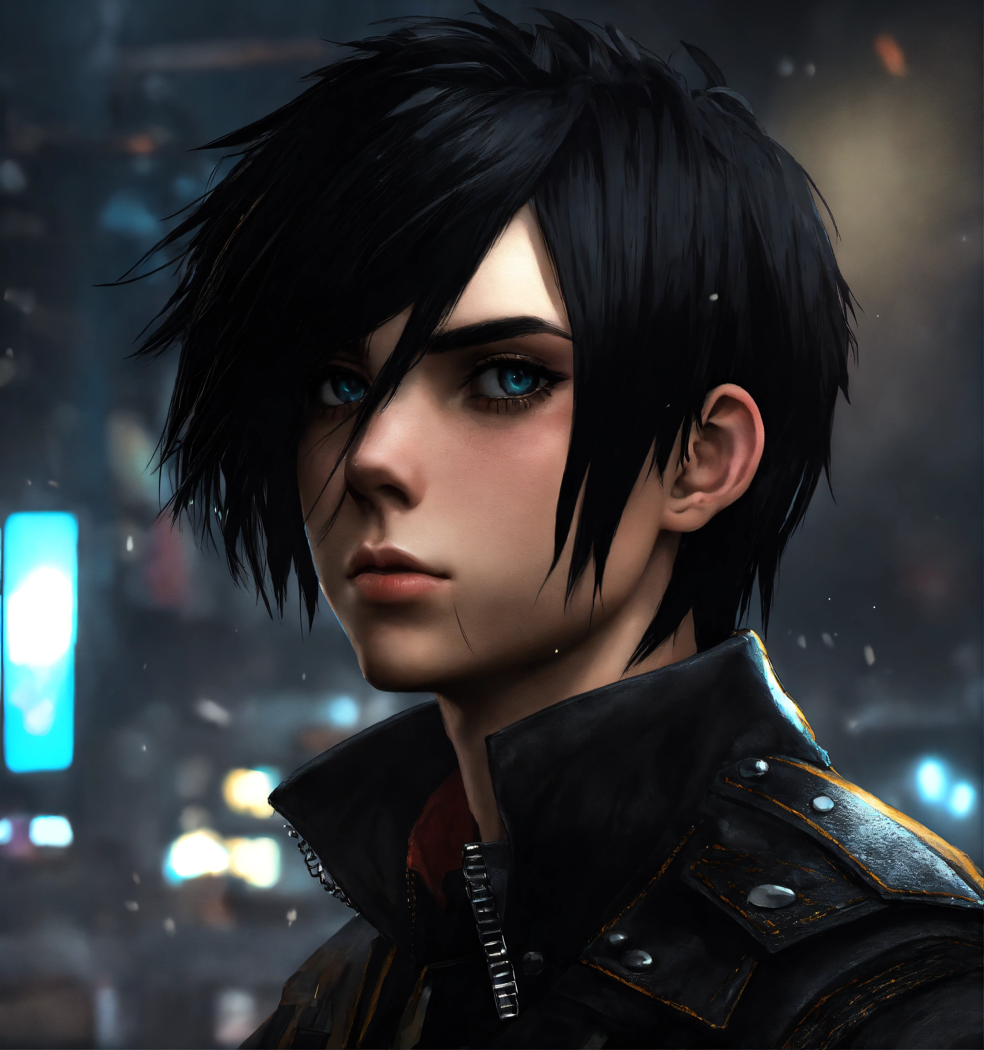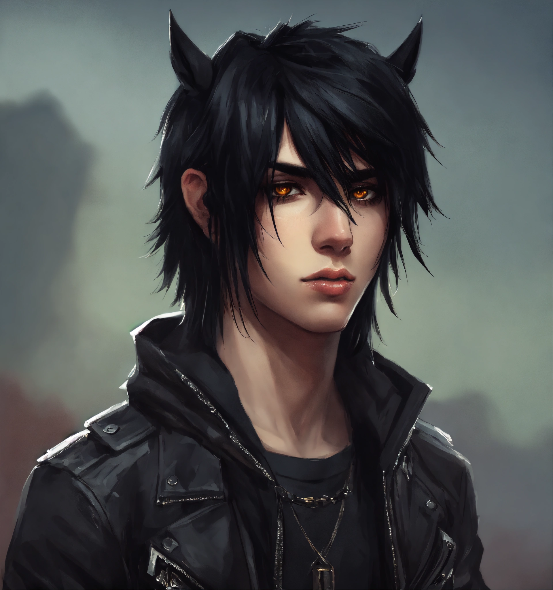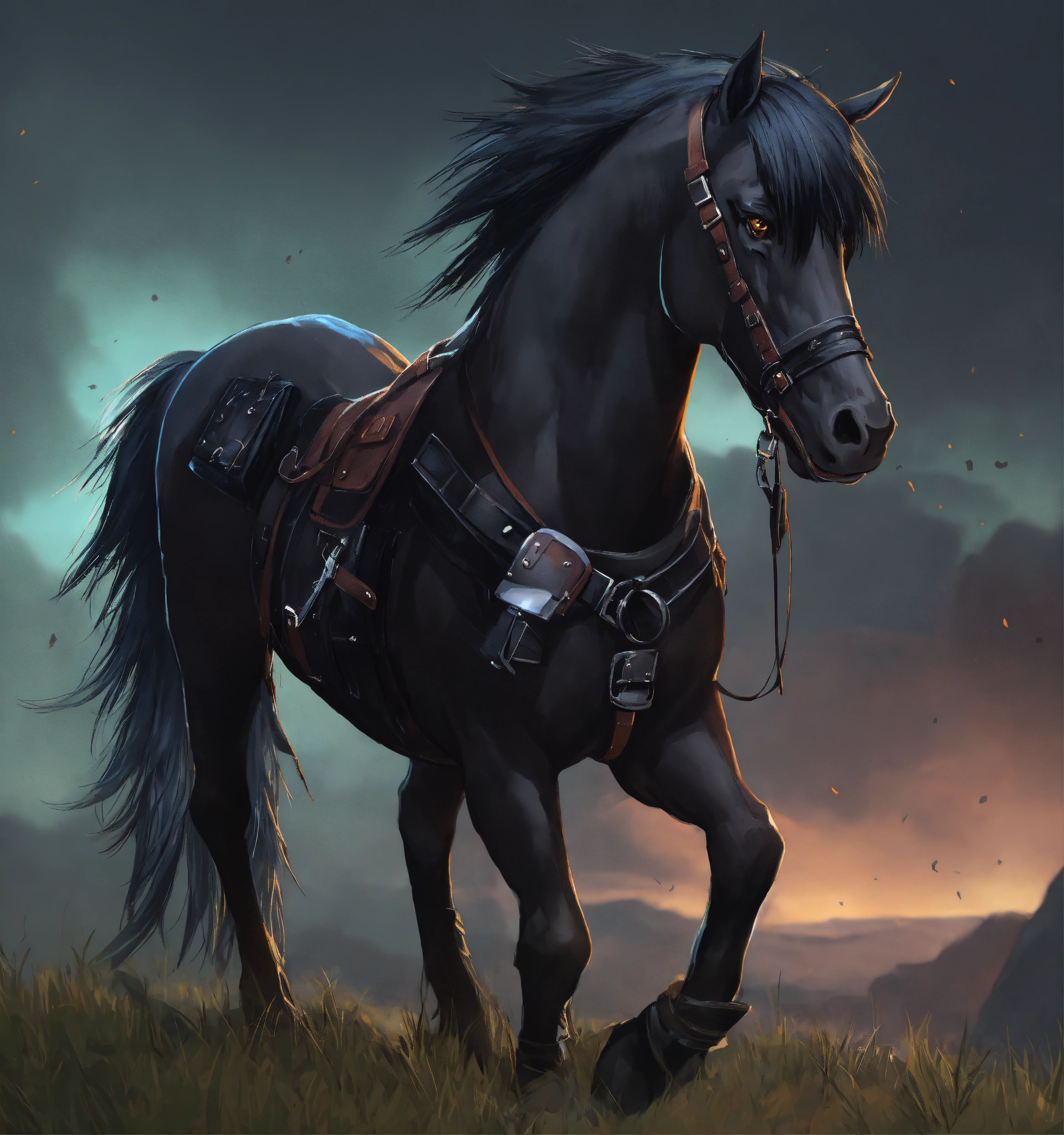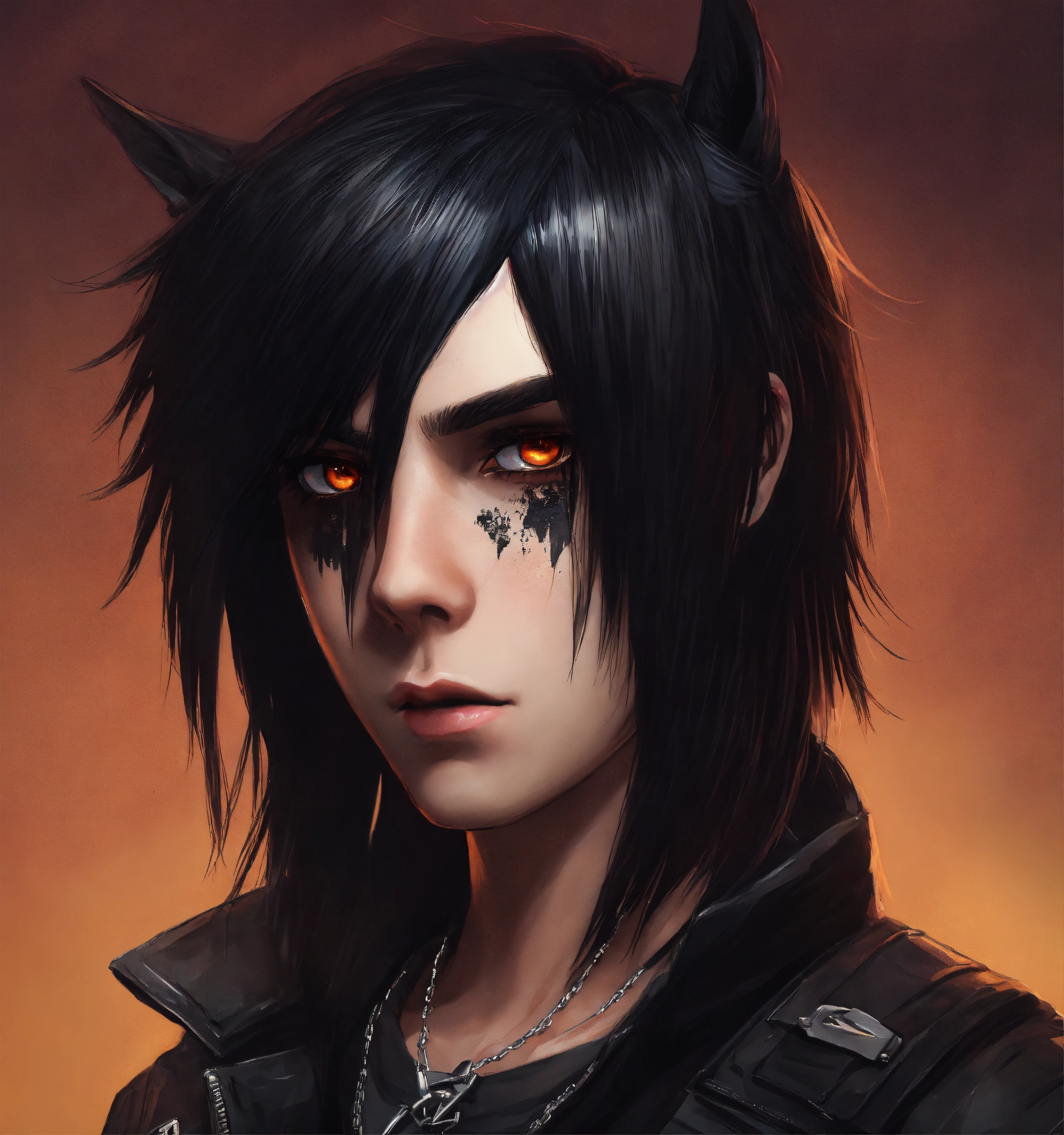 Game character cartoonish realistic emo rock quadrate head black hair evil emo horse