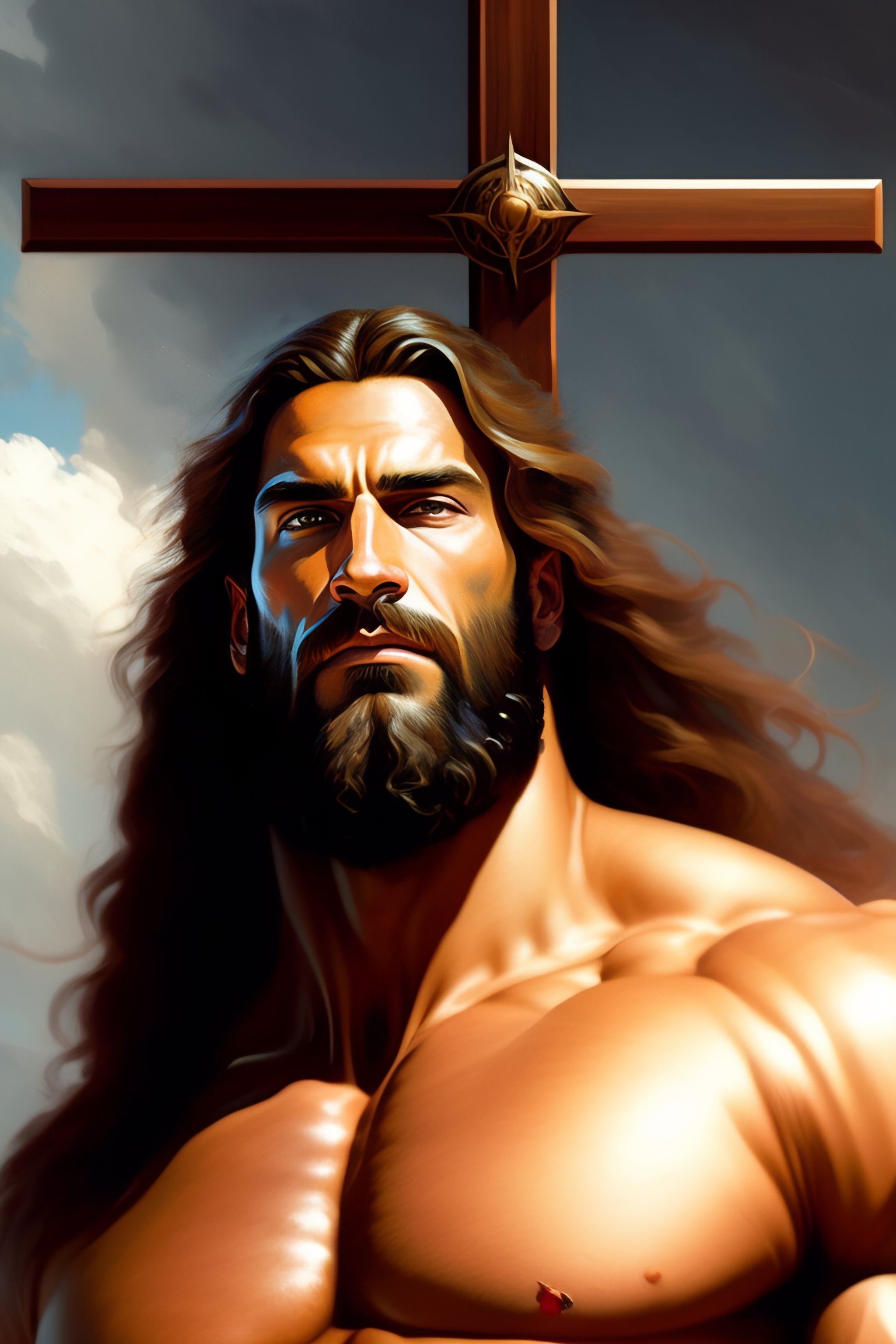 Portrait of jesus christ with a crown of thorns as world breaker hulk holding a giant wooden cross, epic, tragic, military art, fantasy, dieselpunk, hd shot, digital portrait, beautiful, artstation, comic style, by artgerm, guy denning, jakub rozalski, magali villeneuve and charlie bowater