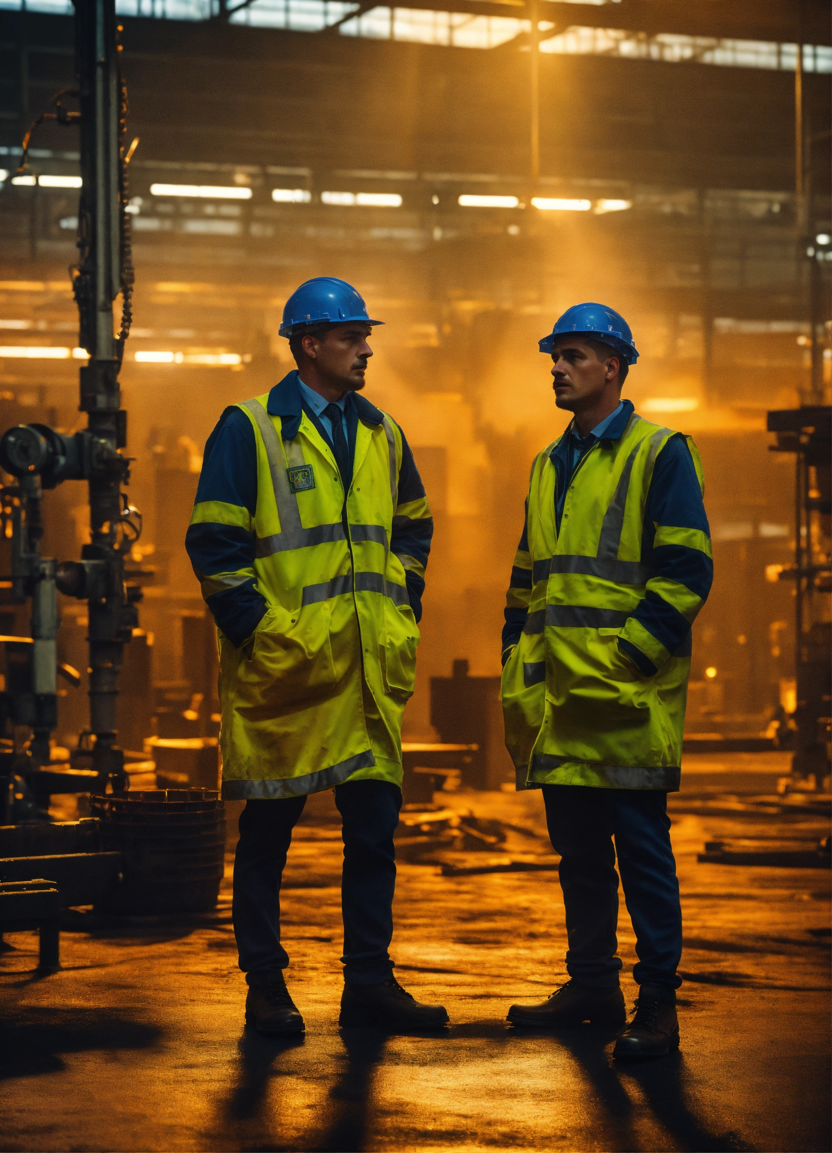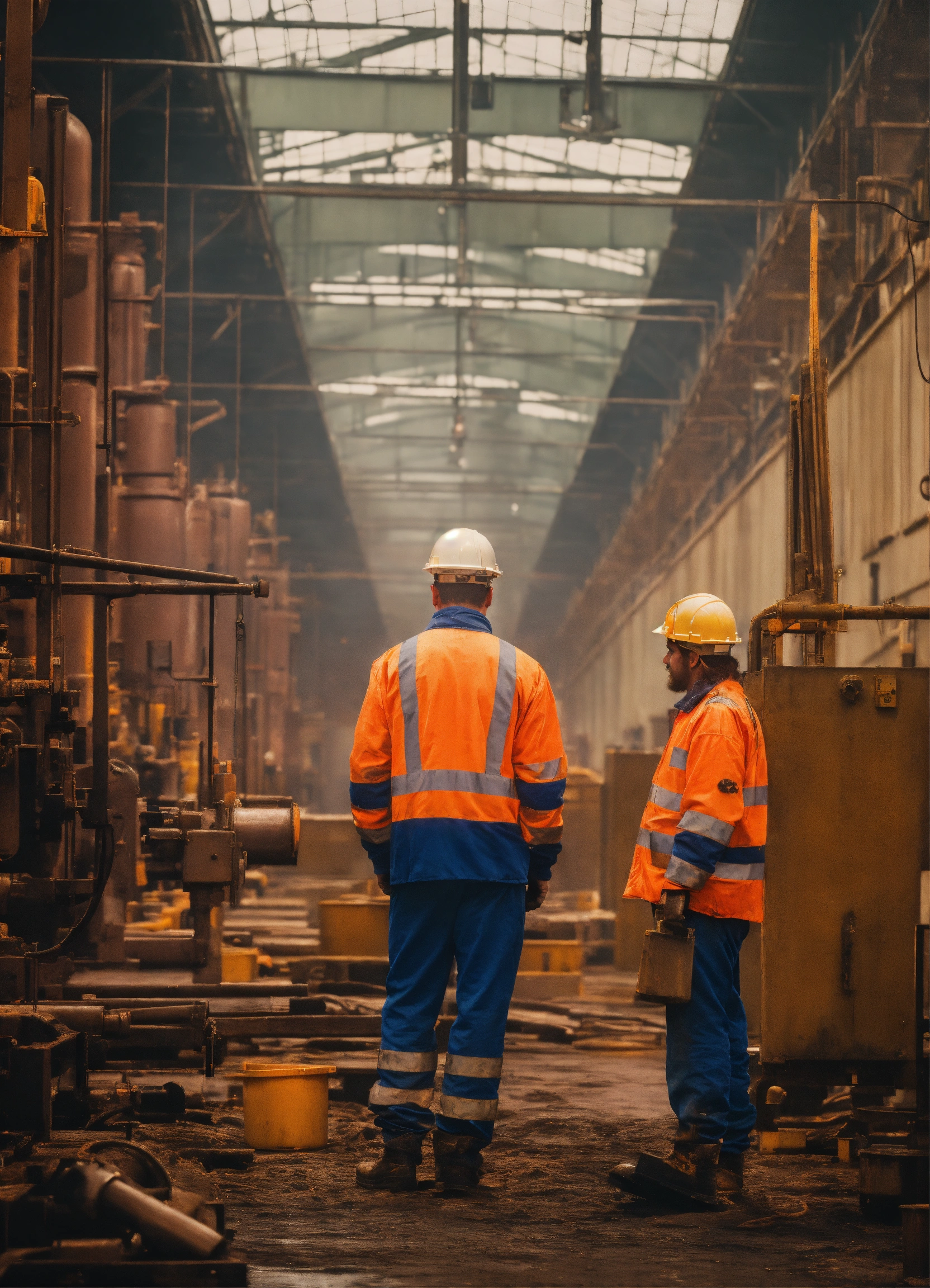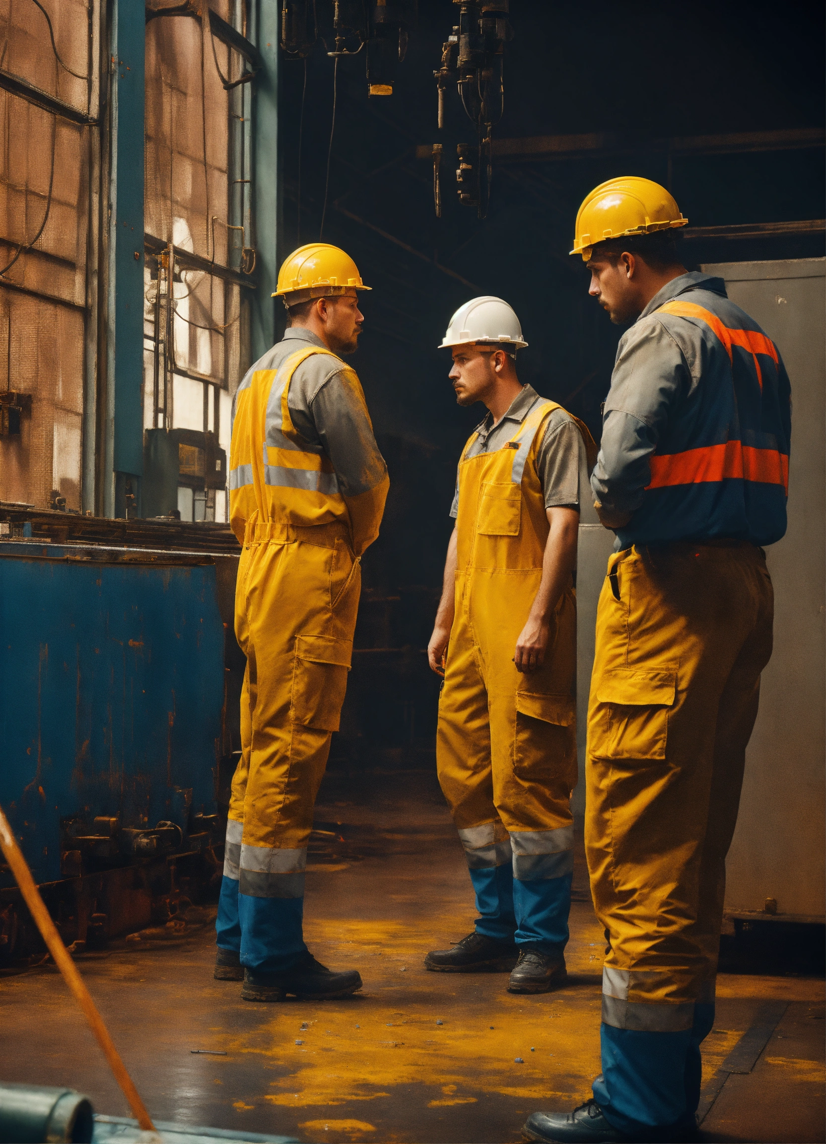 Portrait of depressed workers in a factory in ibrox stadium
