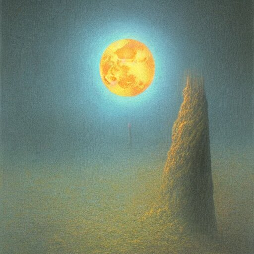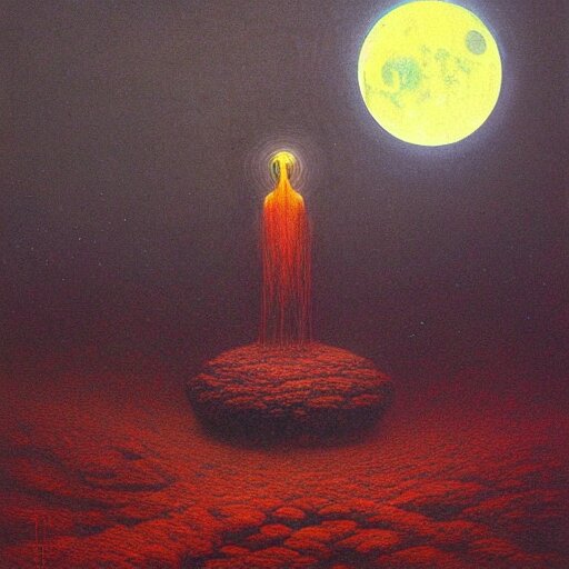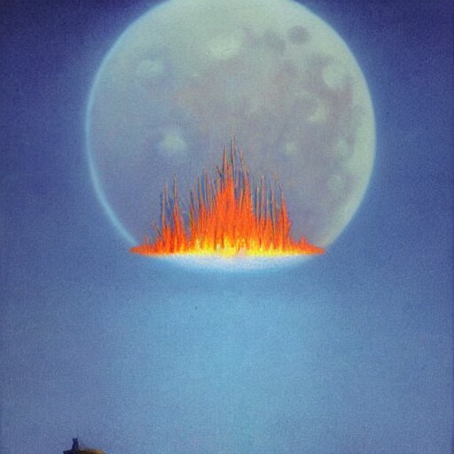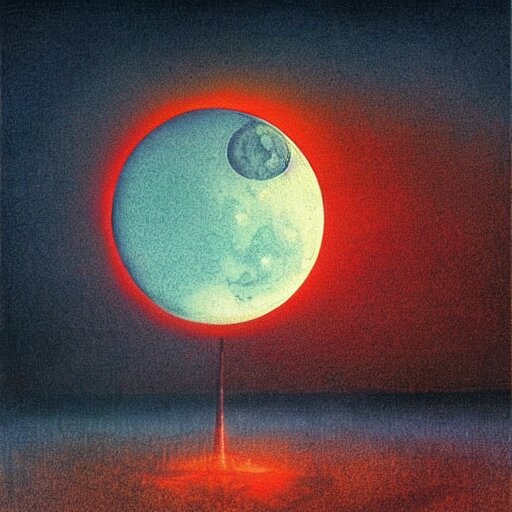 The moon on fire by lisa frank inspired by zdzislaw beksinski