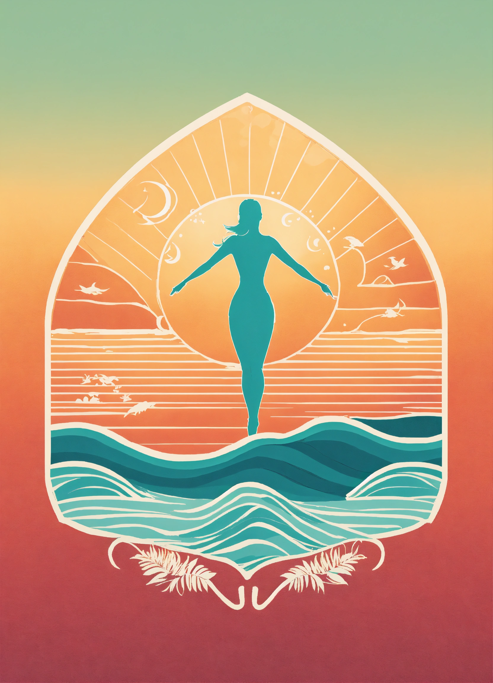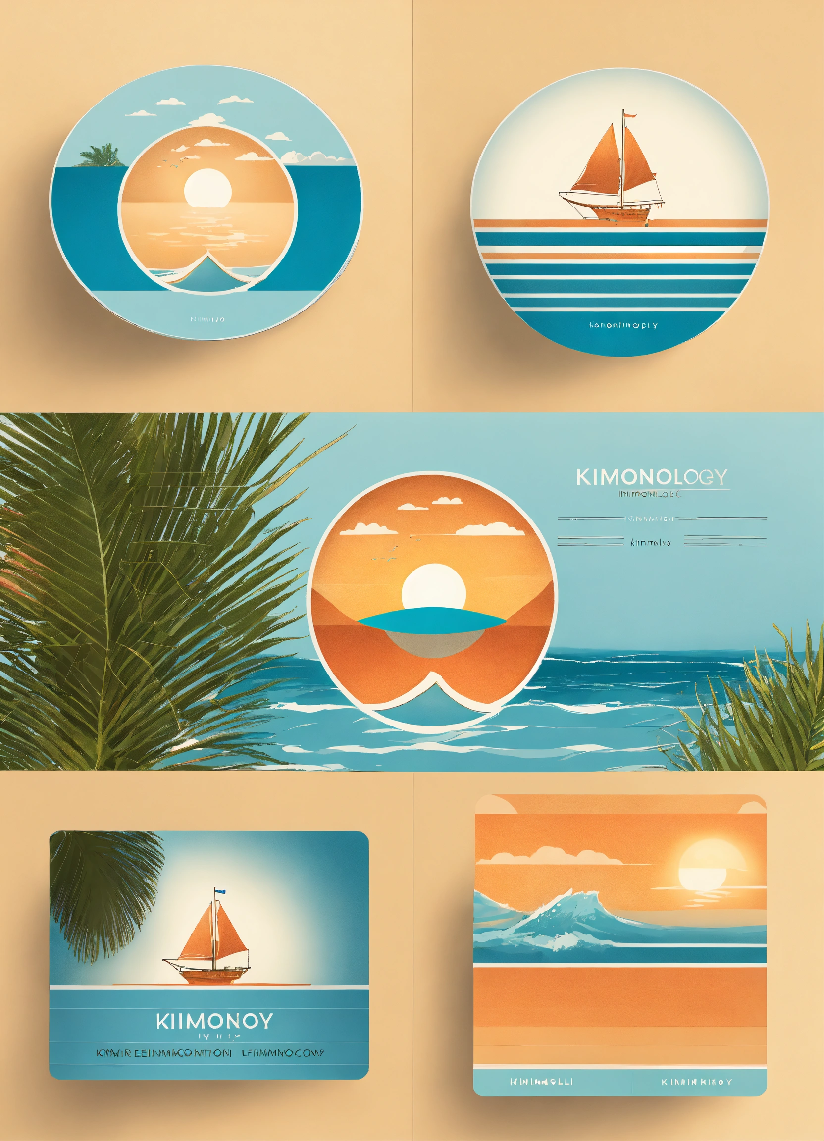 High resolution icon of a extremely simple 2d, elegant, clean and modern geometric logo, business identity, business card, letterhead for beach inspired women's clothing company "kimonology" conveying "peace", "freedom", "ocean", "tropical"