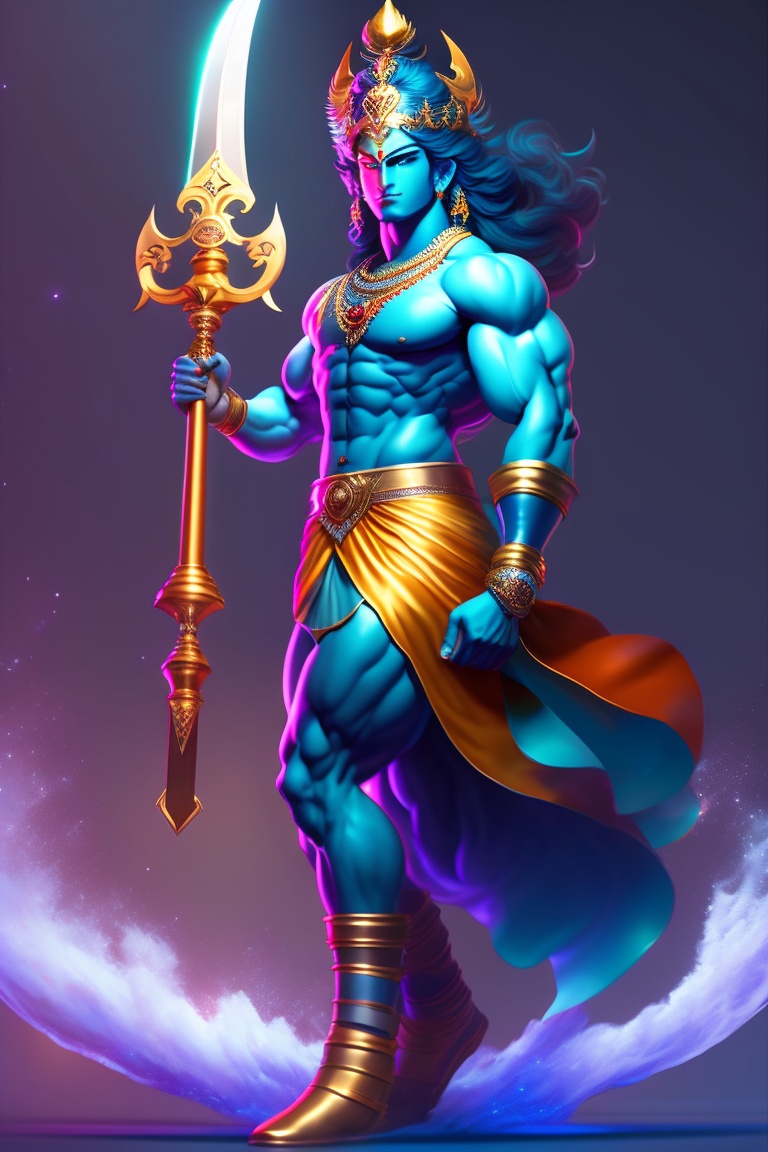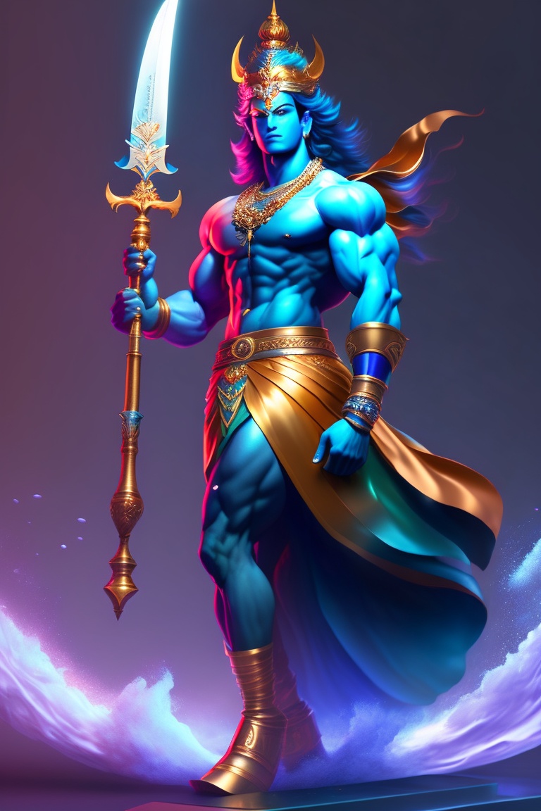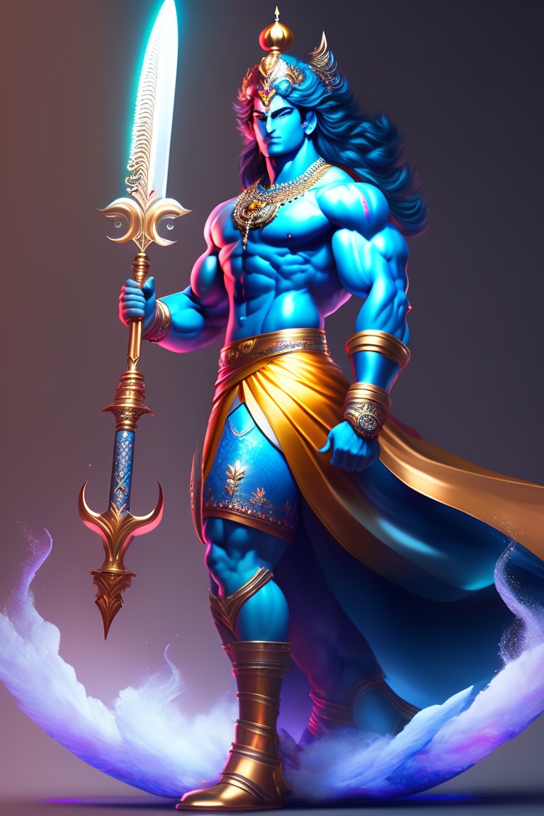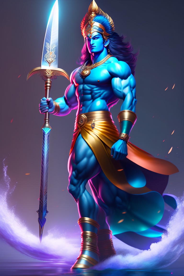 Ultra hd, full body illustration of lord krishna, mahabharat, anime, god, professional full body figure illustration of water, warrior with clear and great sword, demon slayer, rengoku by artgerm and moebius, beautiful, hyperrealism, highly detailed, 8k, medium shot, dynamic dark moody lighting and shadows, artstation, concept art, octane render, 8k fantcy