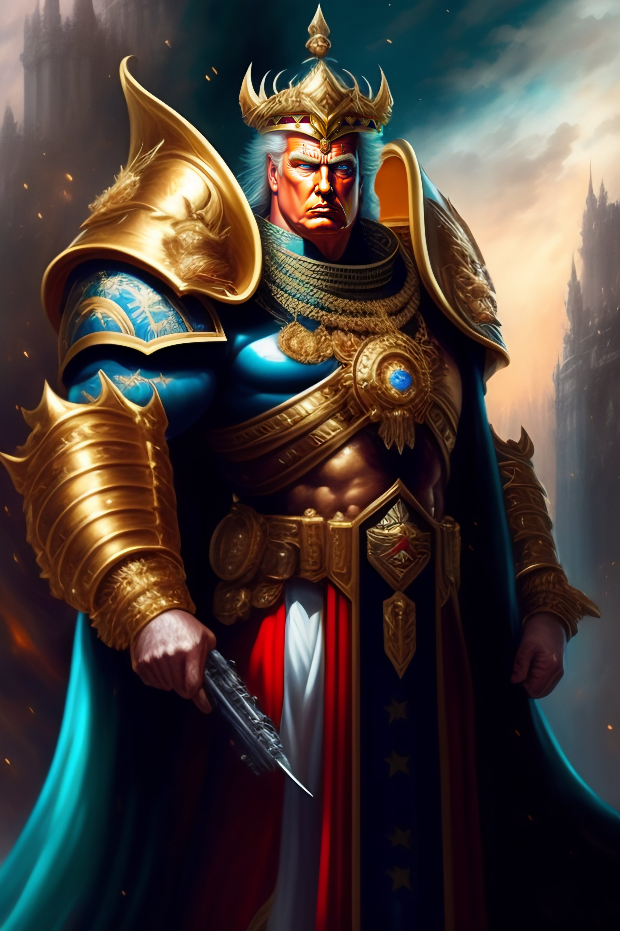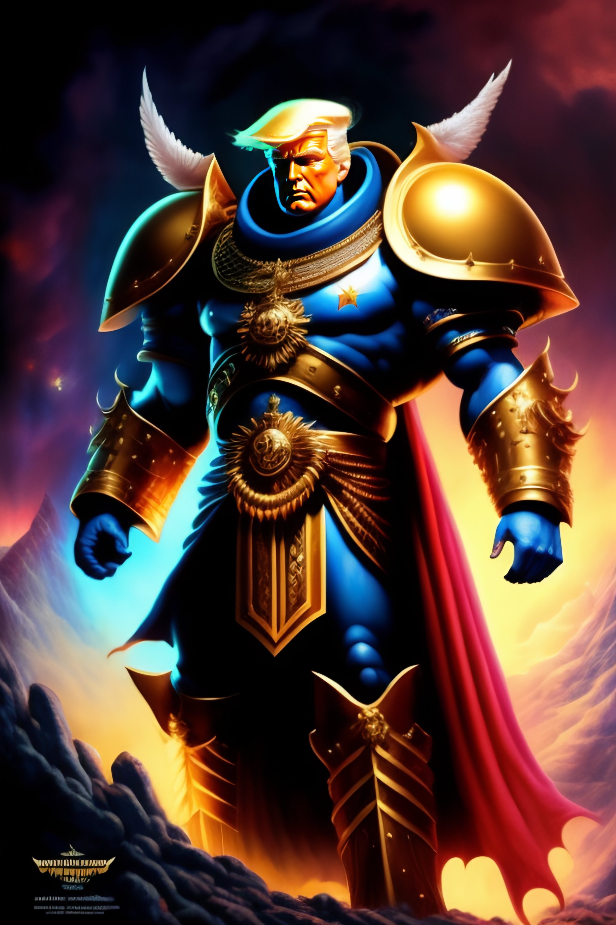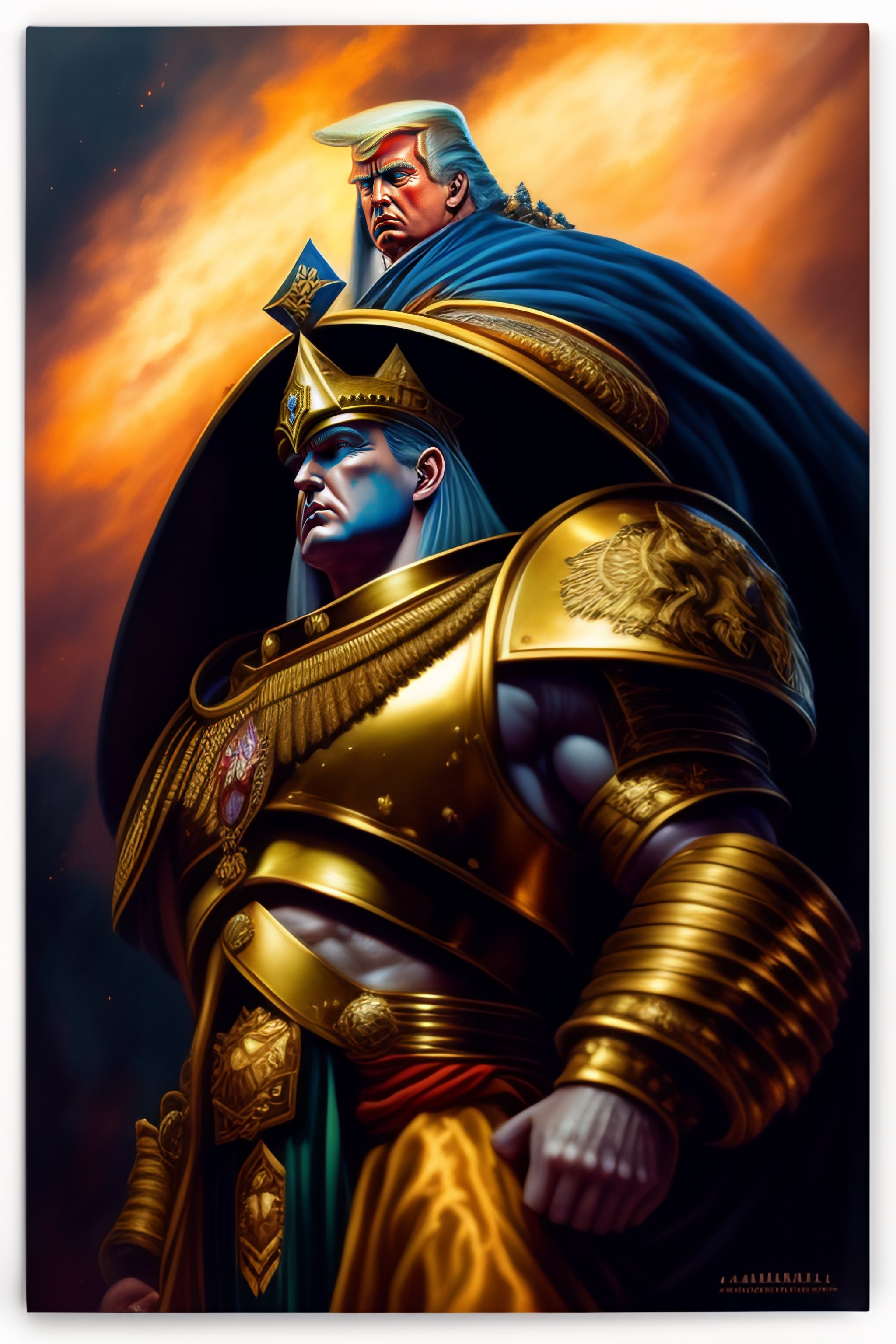 Donald trump as the god emperor of mankind, warhammer 4 0 k universe, immense detail, by john blanche