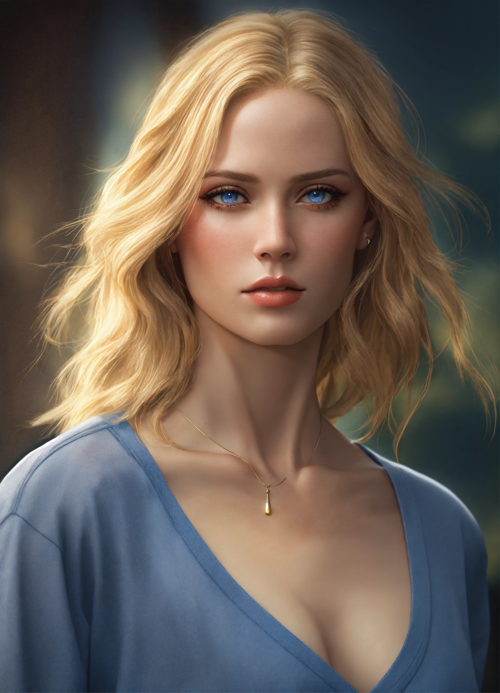 Full body potrait of thin beautiful faced tall woman with high cheekbones, pale skin, blonde hair, blue eyes, heavy chest, thin muscular midriff in pain, illustration, hyper realistic, highly detailed, digital photography, side glamor pose, 4k, hdr, smooth, sharp focus, high resolution, aspiring photographer, 8k, 3d, elizabeth turner