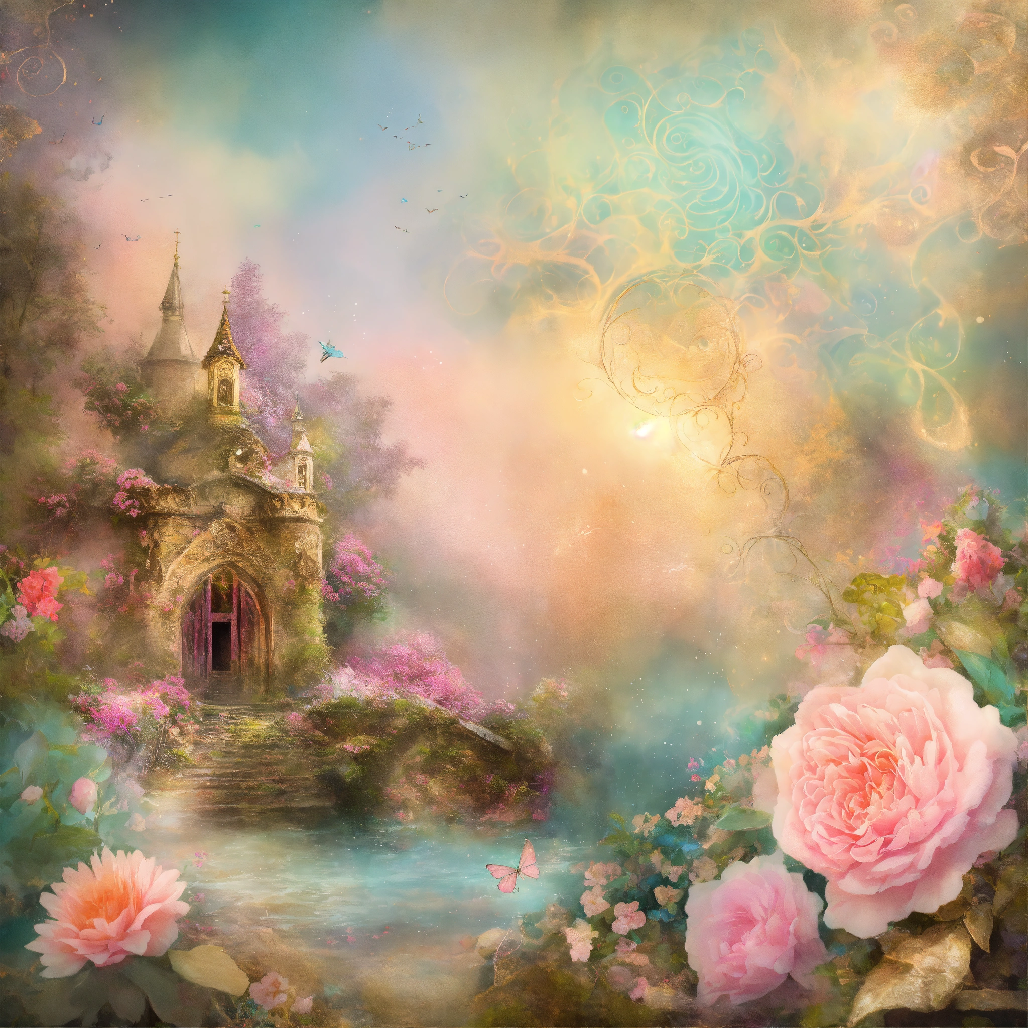 Shabby chic dreamy mist pastel junk journals extreme divine swirling magical fairytale abstract art style