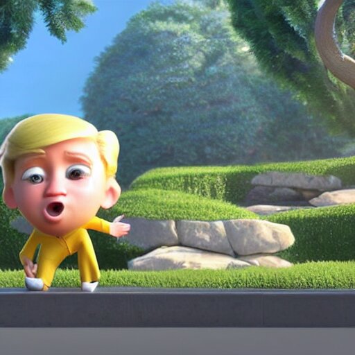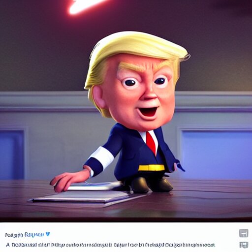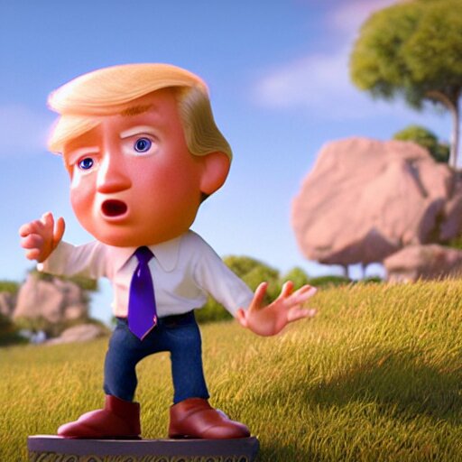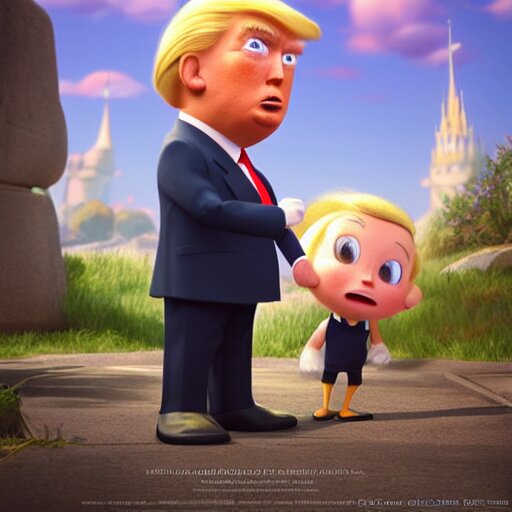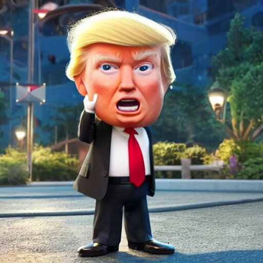 A wholesome animation key shot of chibi donald trump, pixar and disney animation, sharp, very detailed, high resolution, rendered in unreal engine 5, key art by greg rutkowski, bloom, dramatic lighting