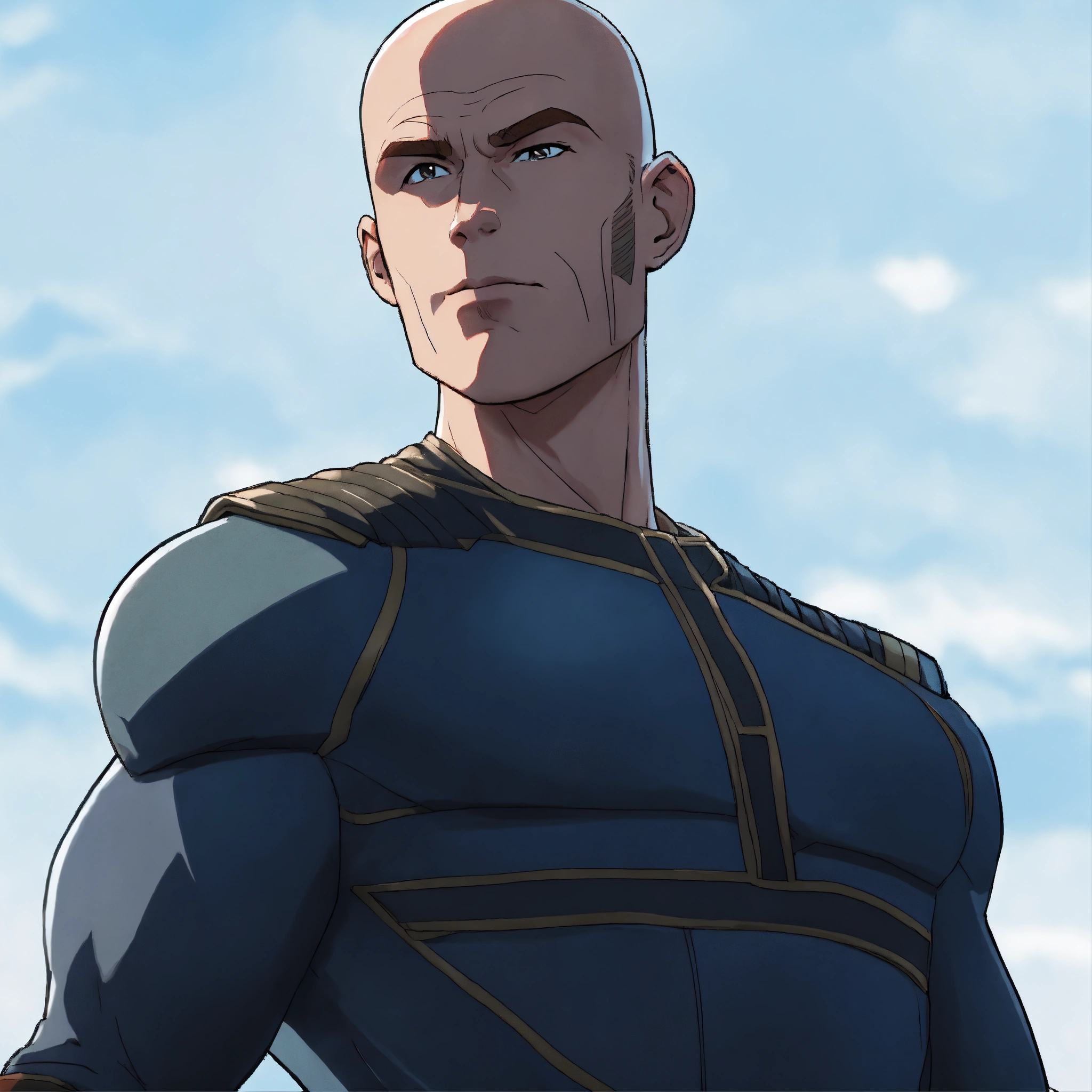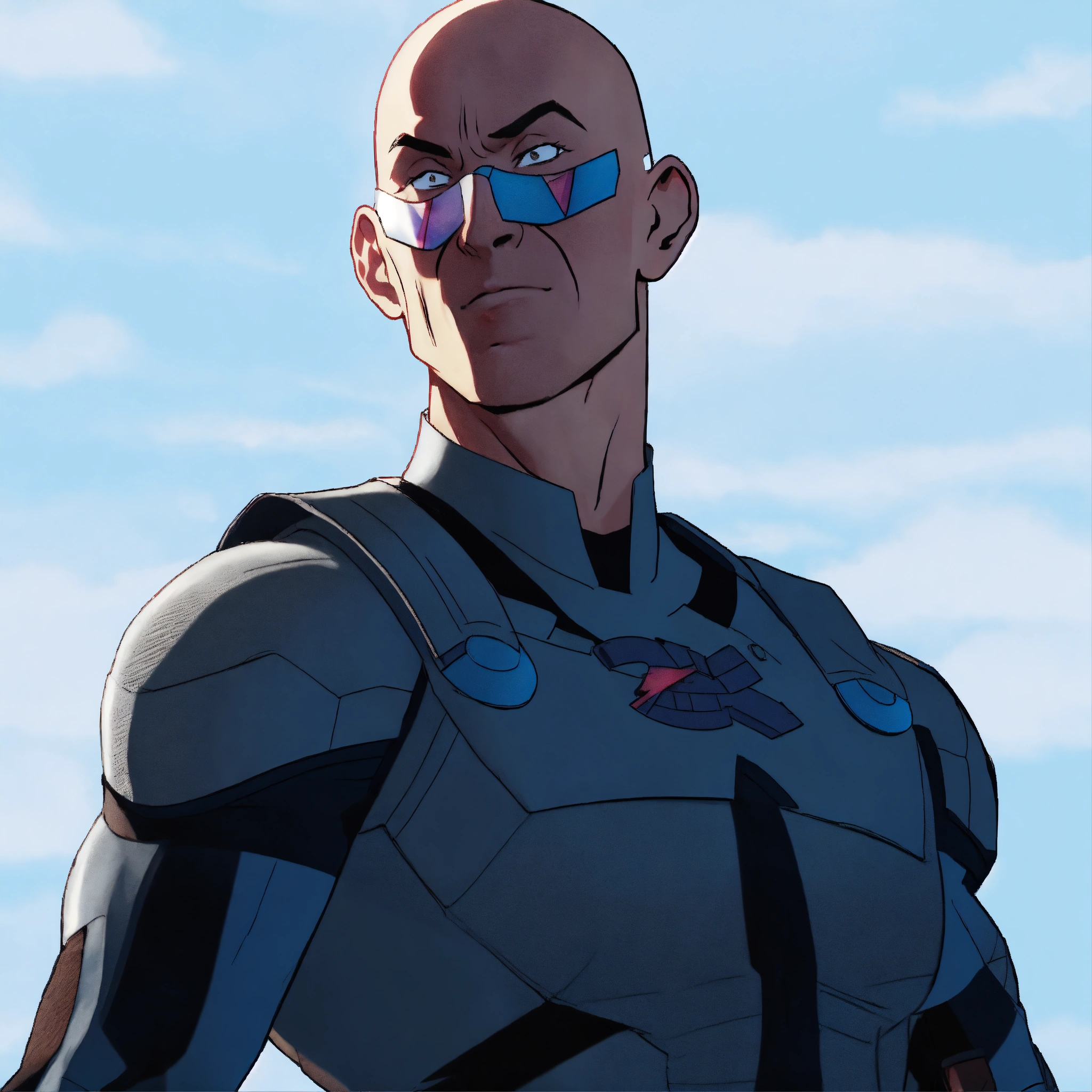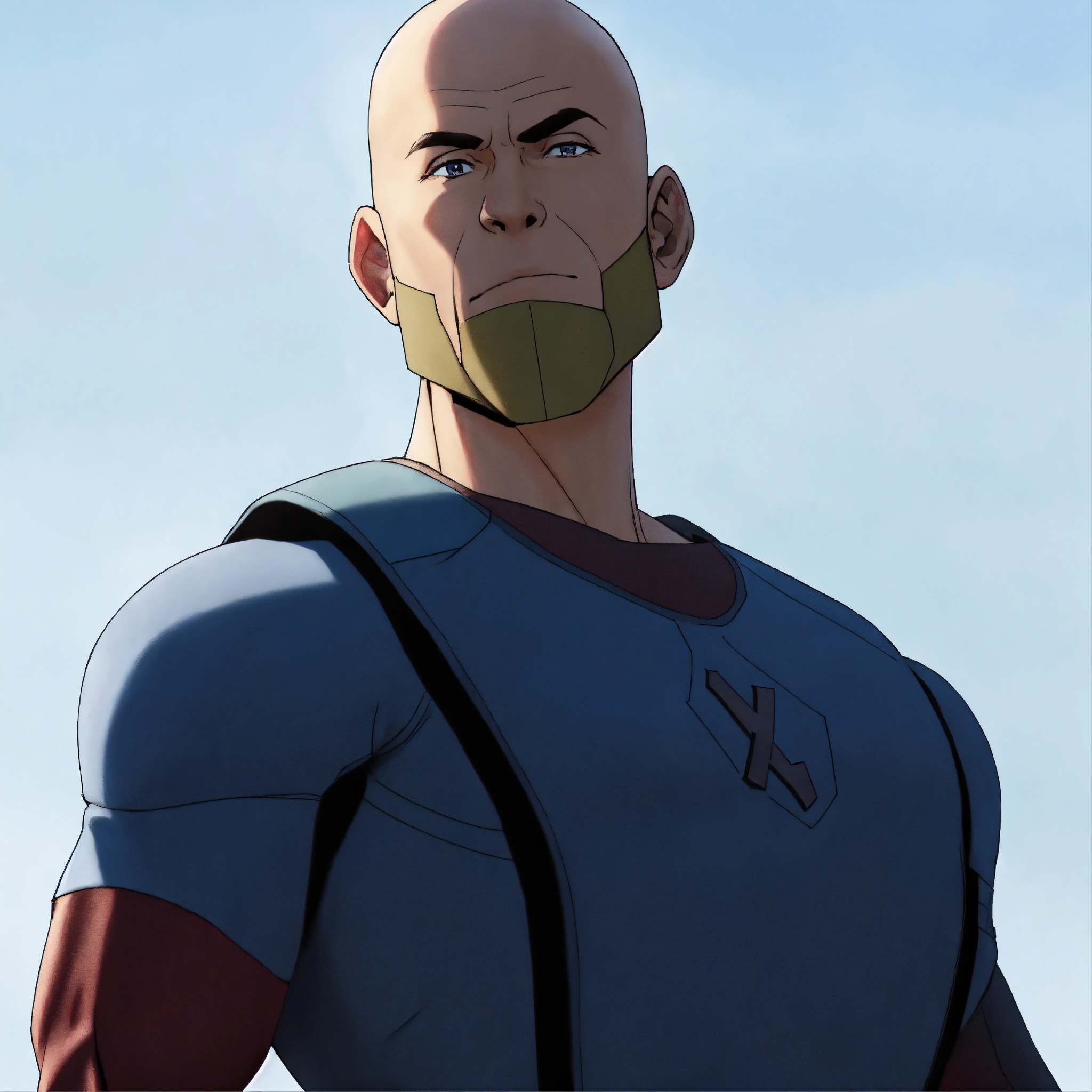 Marvel animated bald no hair ajax francis in action zoomed out without words or logos