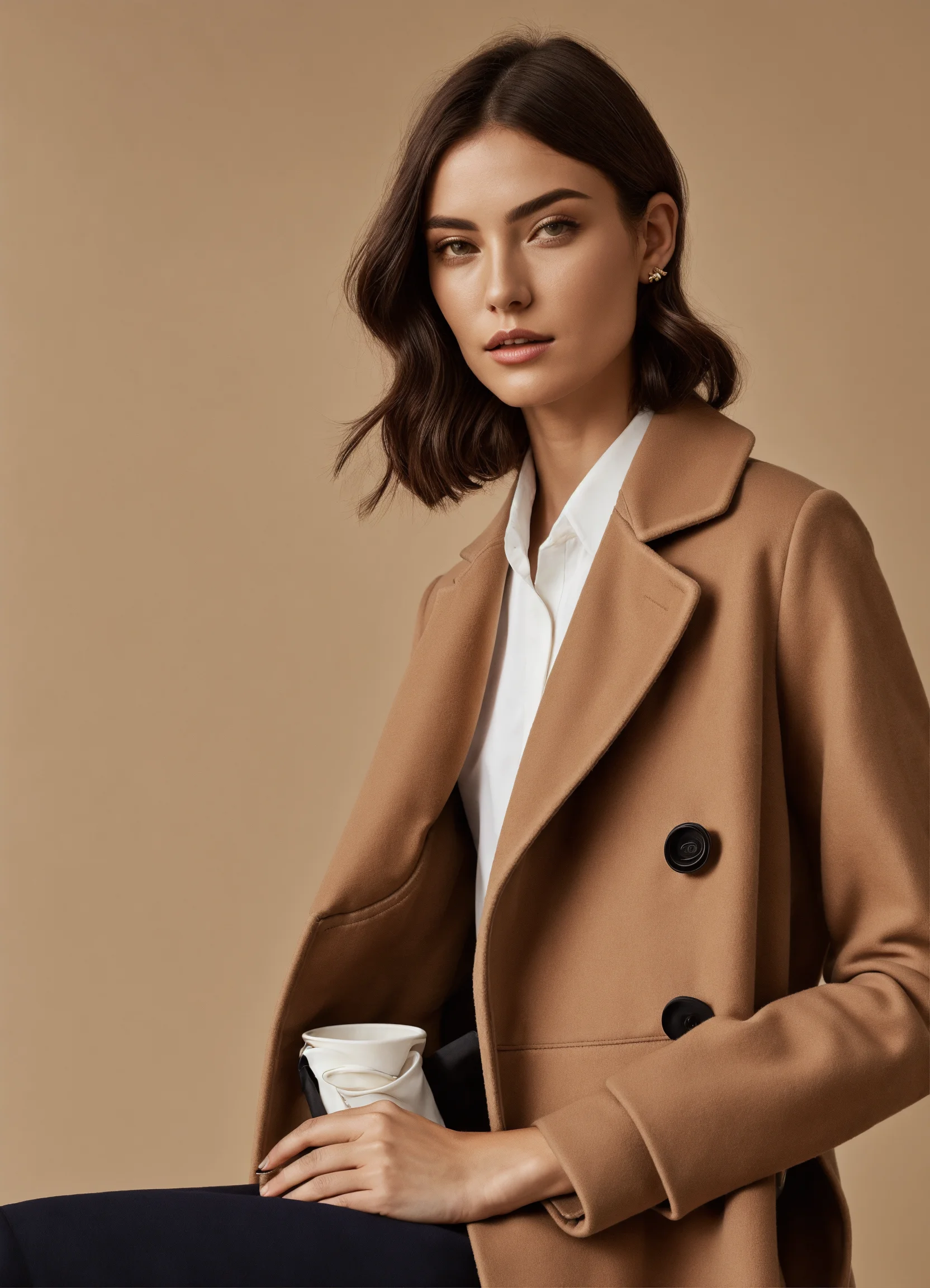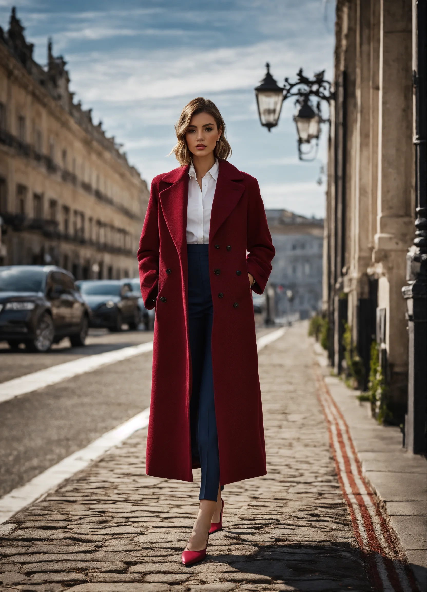 Design a timeless women's mafia coat infusing italian sophistication. craft a tailored silhouette with modern cuts, using deep, rich tones and luxurious fabrics inspired by italian aesthetics. add discreet details like symbolic embroidery, and create a unique lining with italian art motifs. ensure versatility for day-to-night wear, capturing the essence of italian style. feature the coat in diverse settings from milan streets to serene landscapes. emphasize modernity and timeless elegance, paying homage to italian fashion heritage. collaborate with influencers, showcase on social media, and integrate sustainable practices. this design reflects our brand's commitment to class, timelessness, and cultural sophistication.
