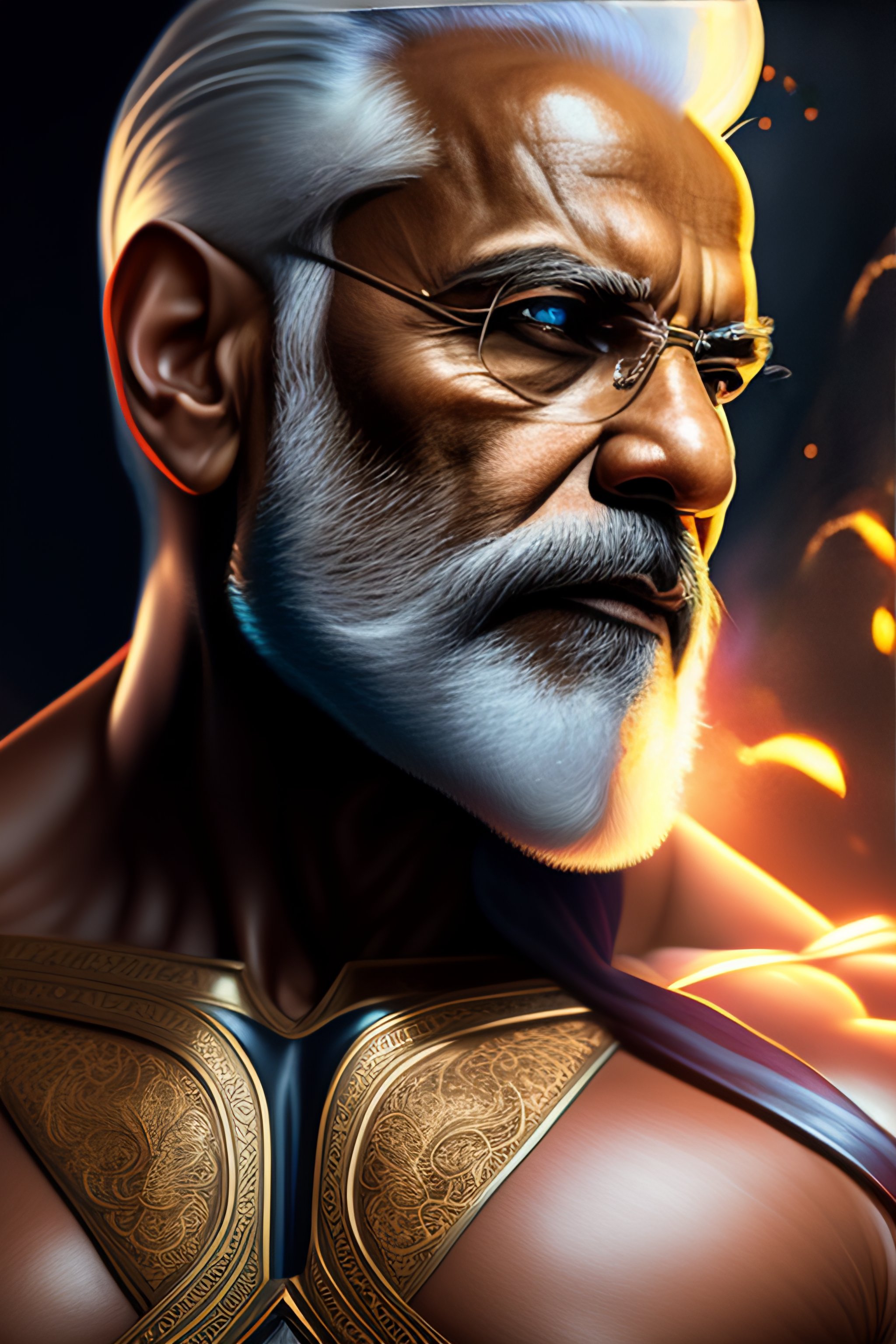 Full body potrait of super muscular narendra modi, highly intricate detailed, light and shadow effects, intricate, highly detailed, digital painting, art station, concept art, smooth, sharp focus, illustration, advanced digital anime art, atmospheric lighting, detailed face, 8 k, hq, artstation, by stanley artgerm lau, wlop, rossdraws