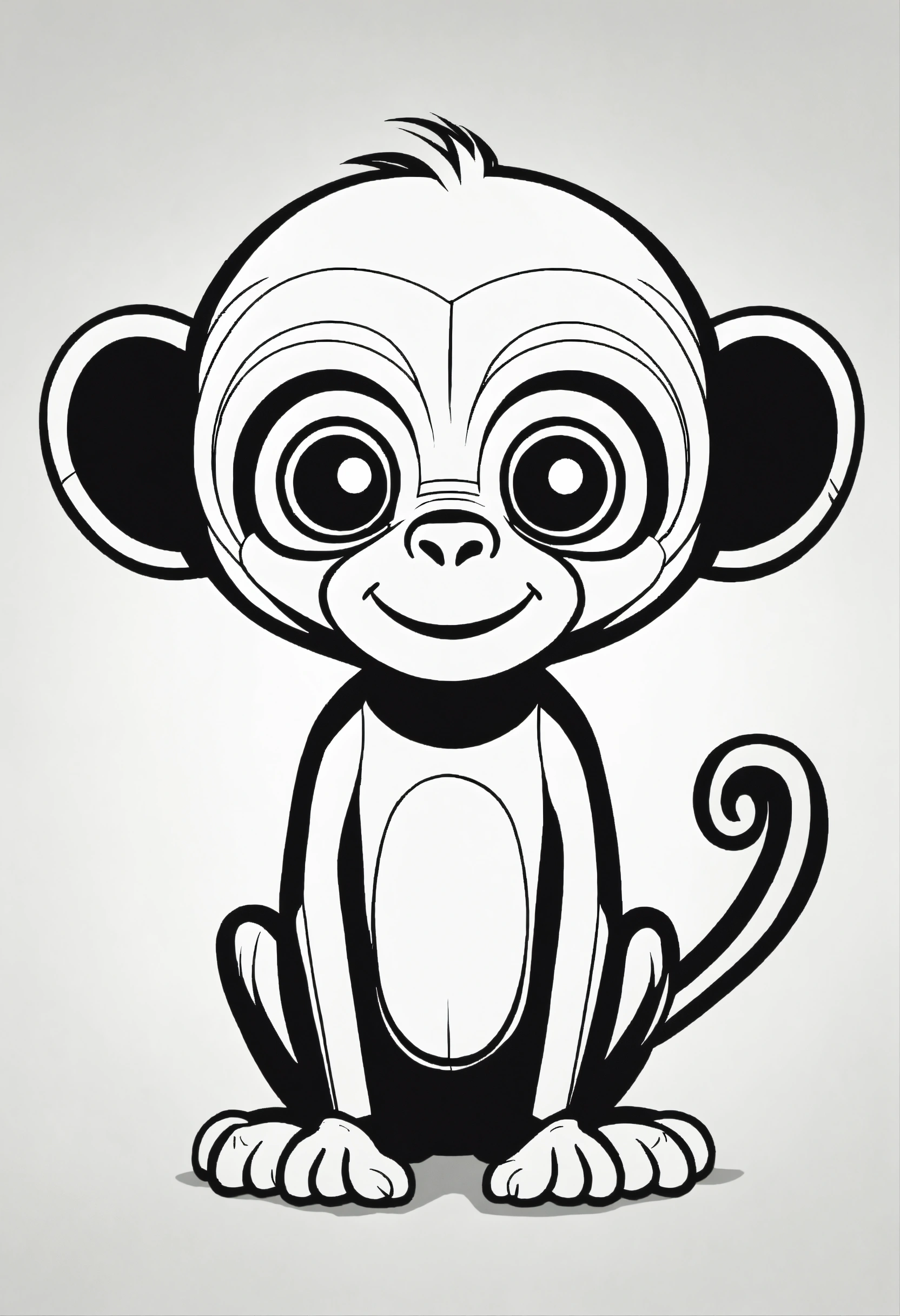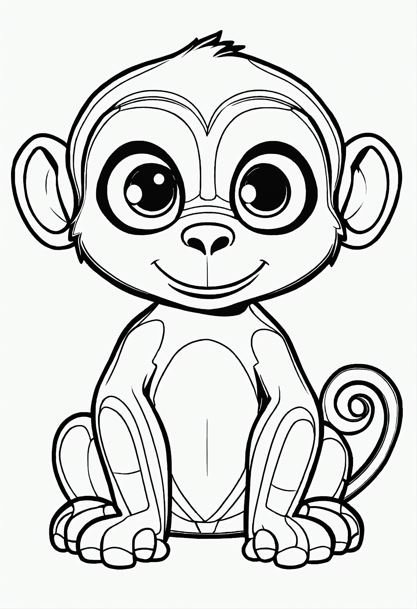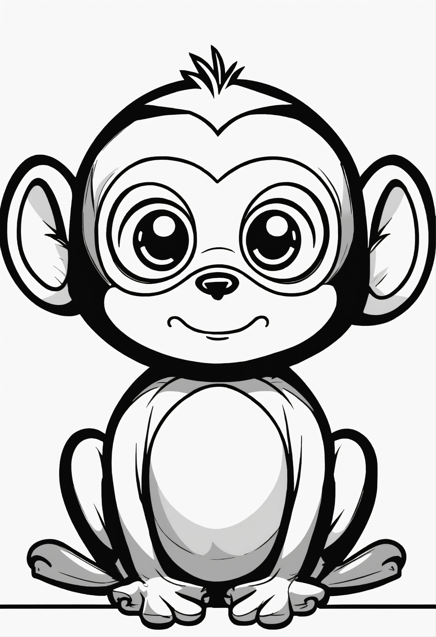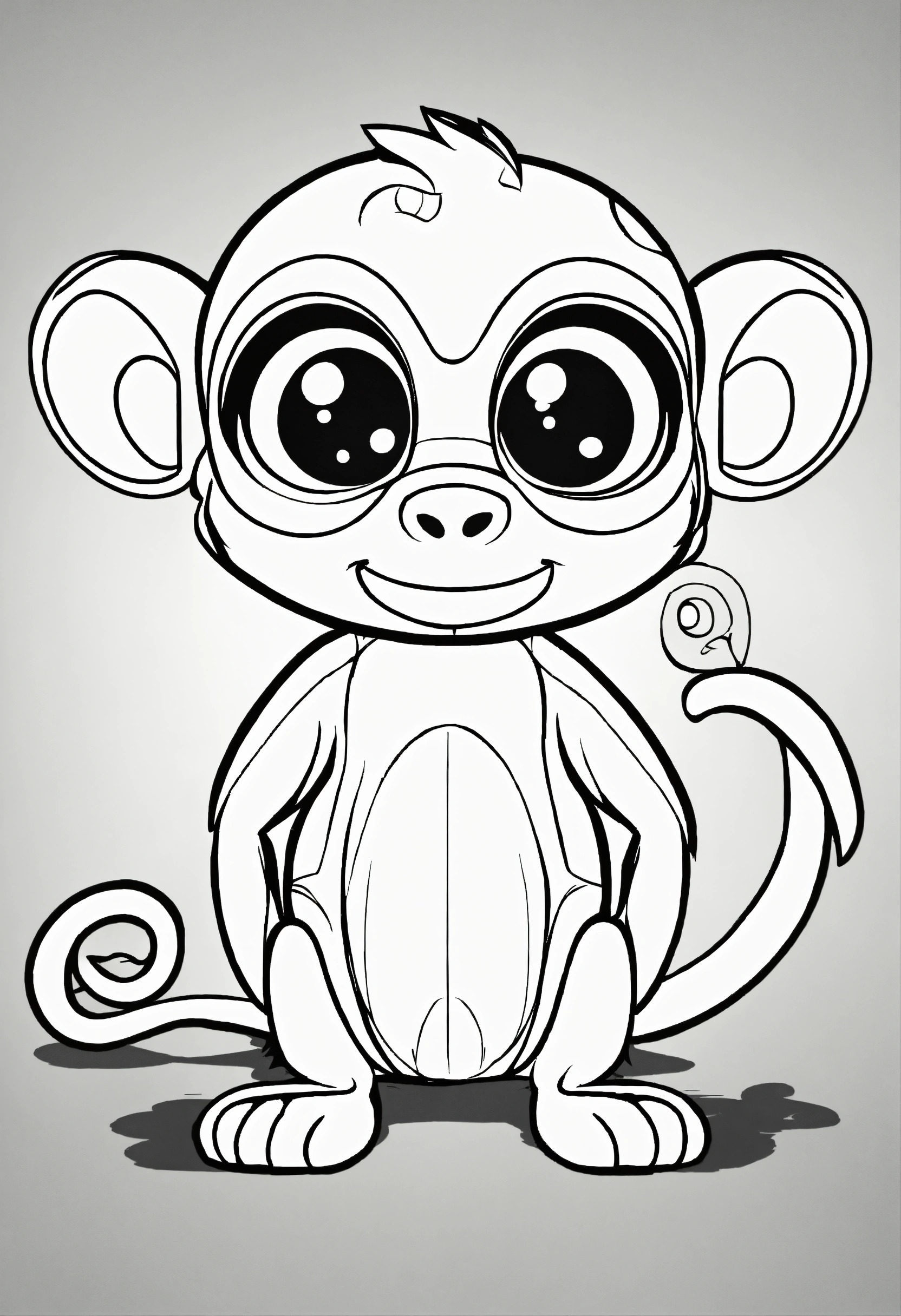 Cute monkey, big cute eyes, pixar style, simple outline and shapes, coloring page black and white comic book flat vector, white background