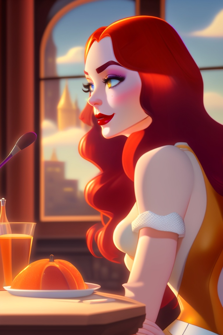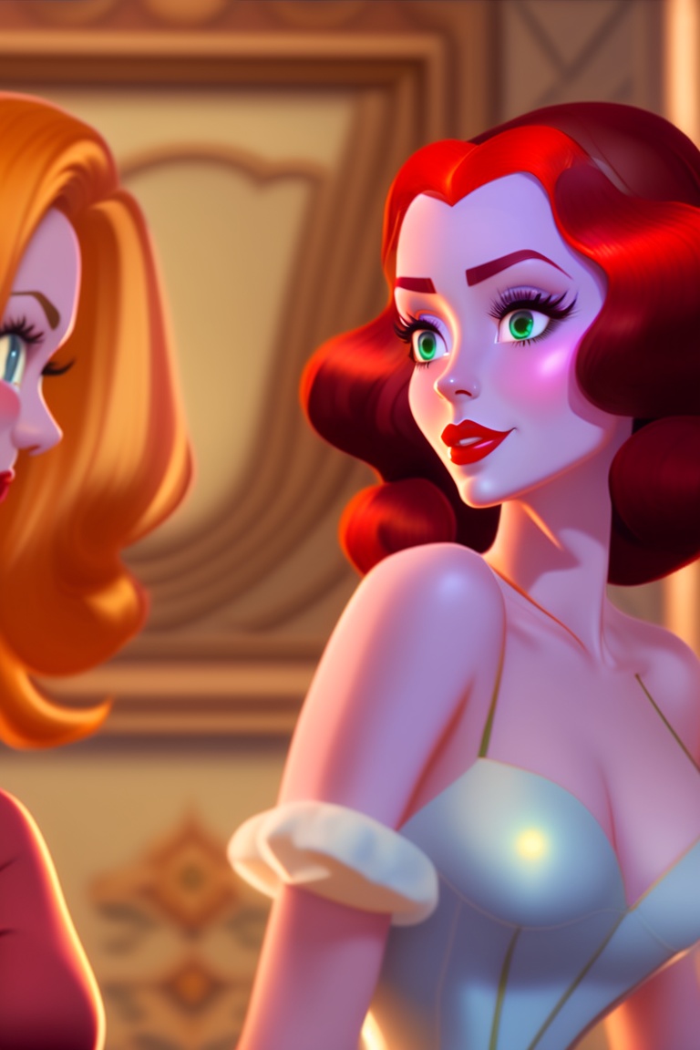 Sketch of a billie eilish, braid hair, christina hendricks as jessica rabbit from a screencap of a scene in the animated film "who framed roger rabbit?". cartoon, animation, cel-shaded comic high 8k