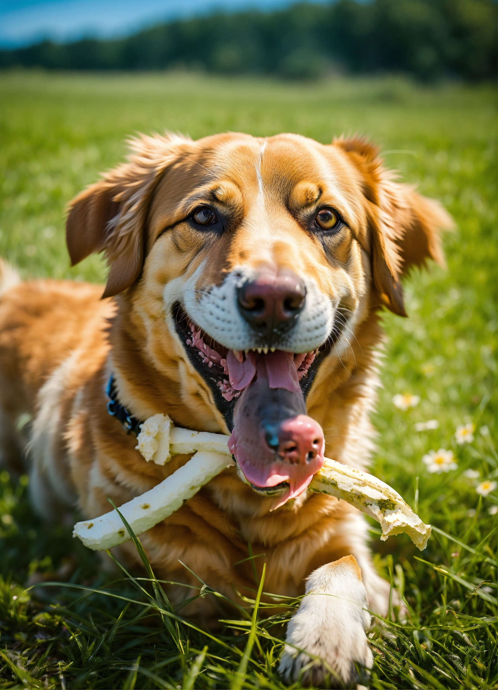 Hakita dog biting a bone