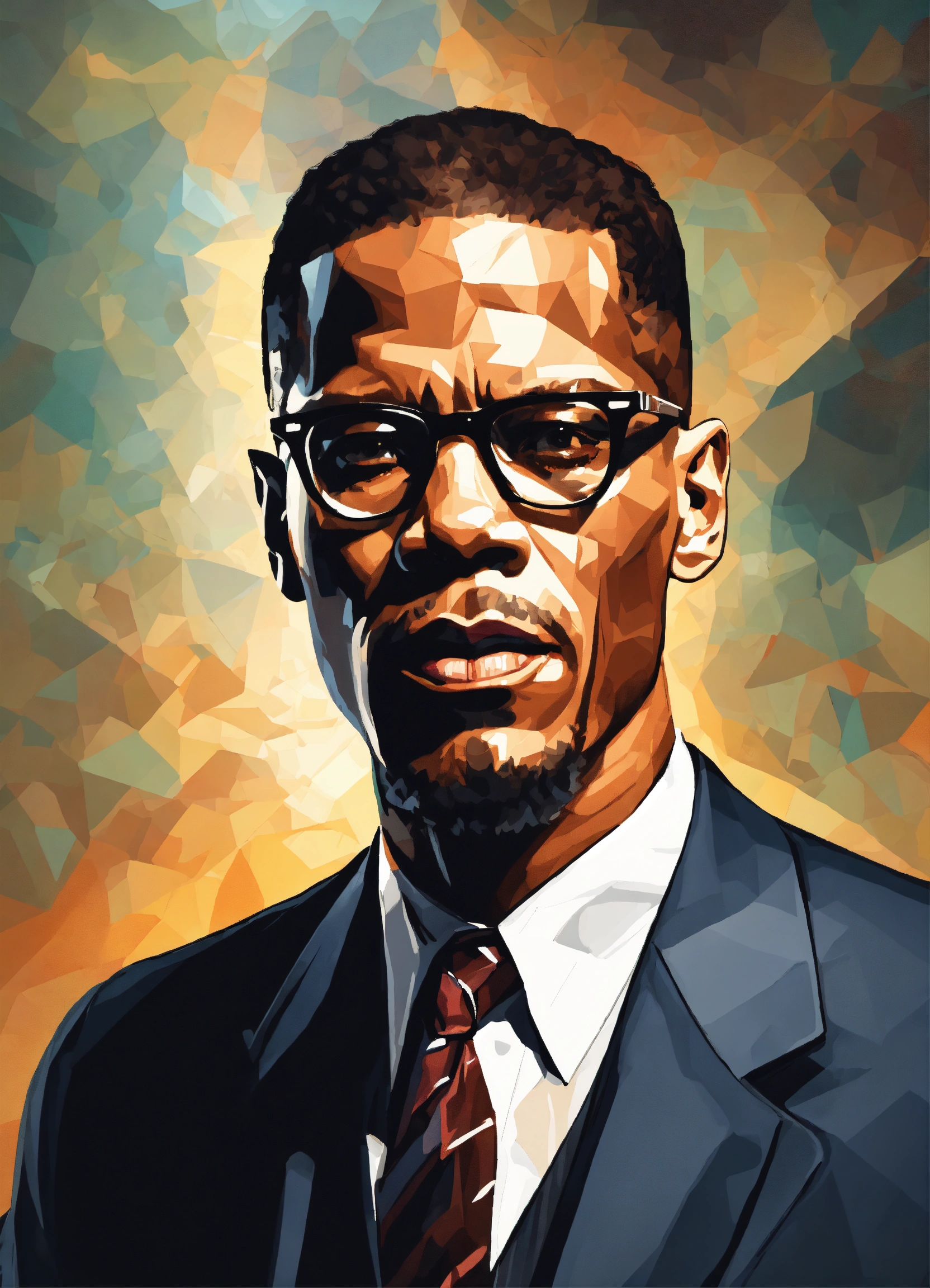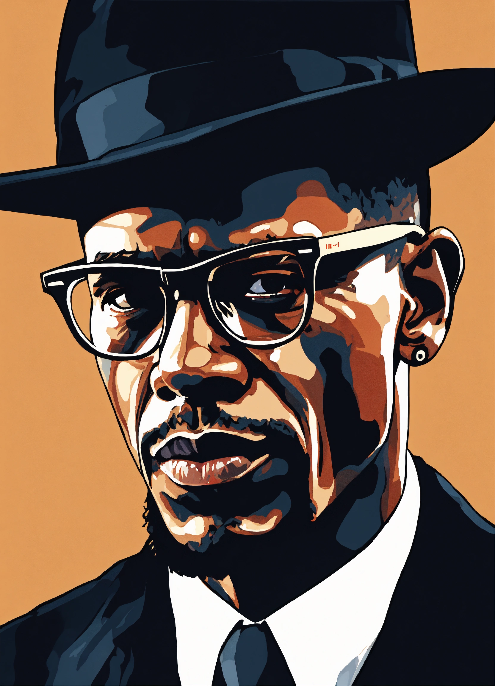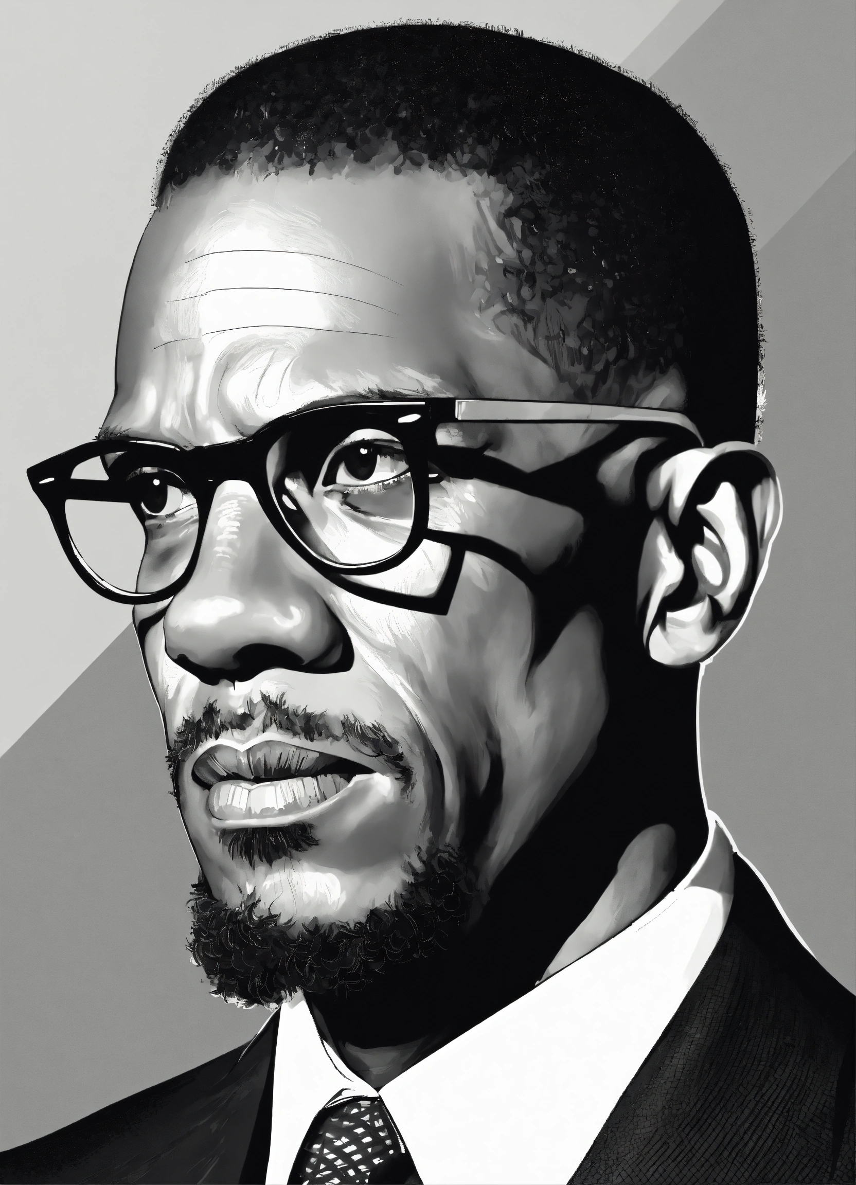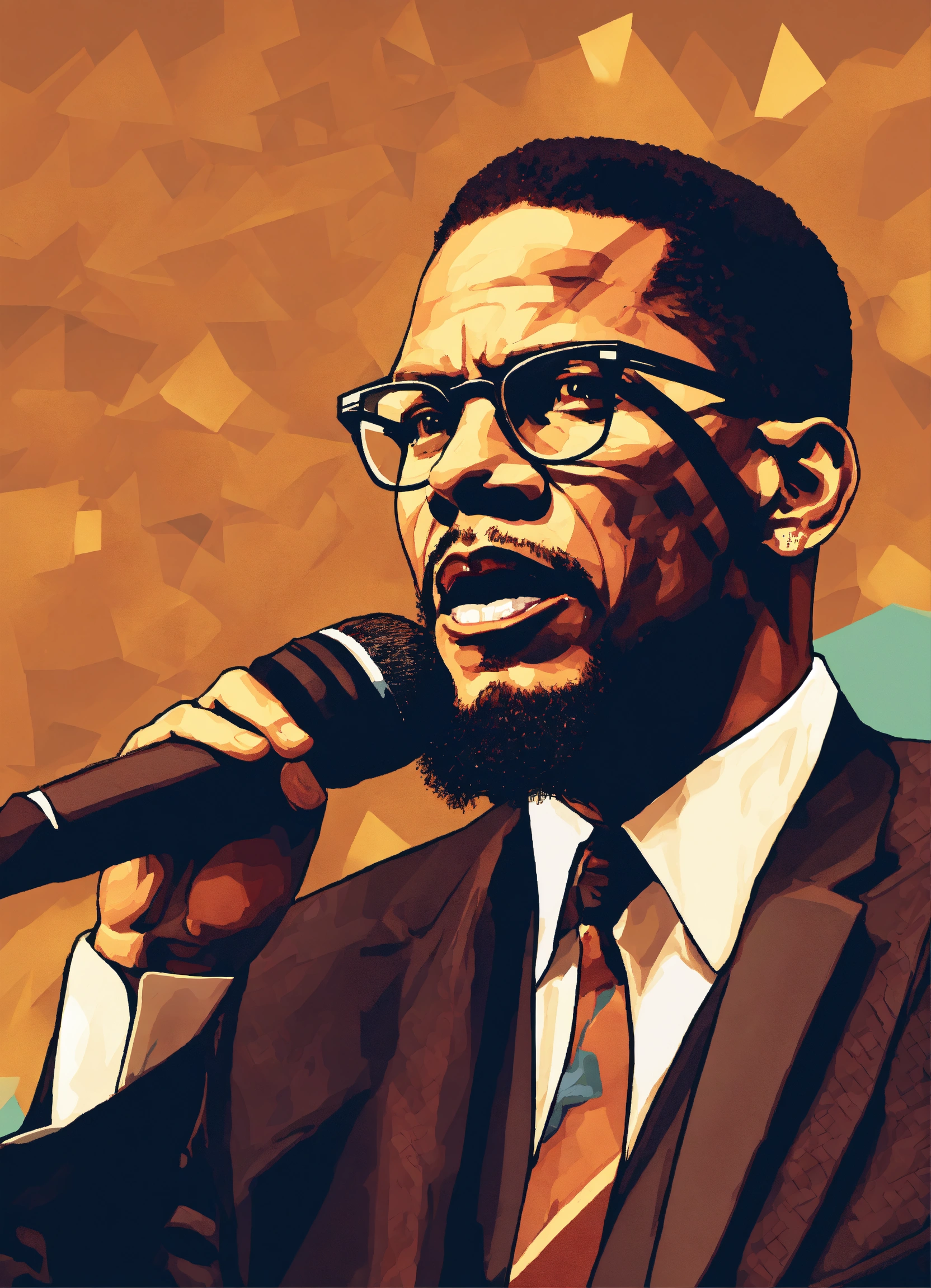 Malcolm x speaking, hyper detailed, ultra-sharp, 8 k, illustration, highly detailed, smooth and clean vector, no jagged lines, vector art, smooth