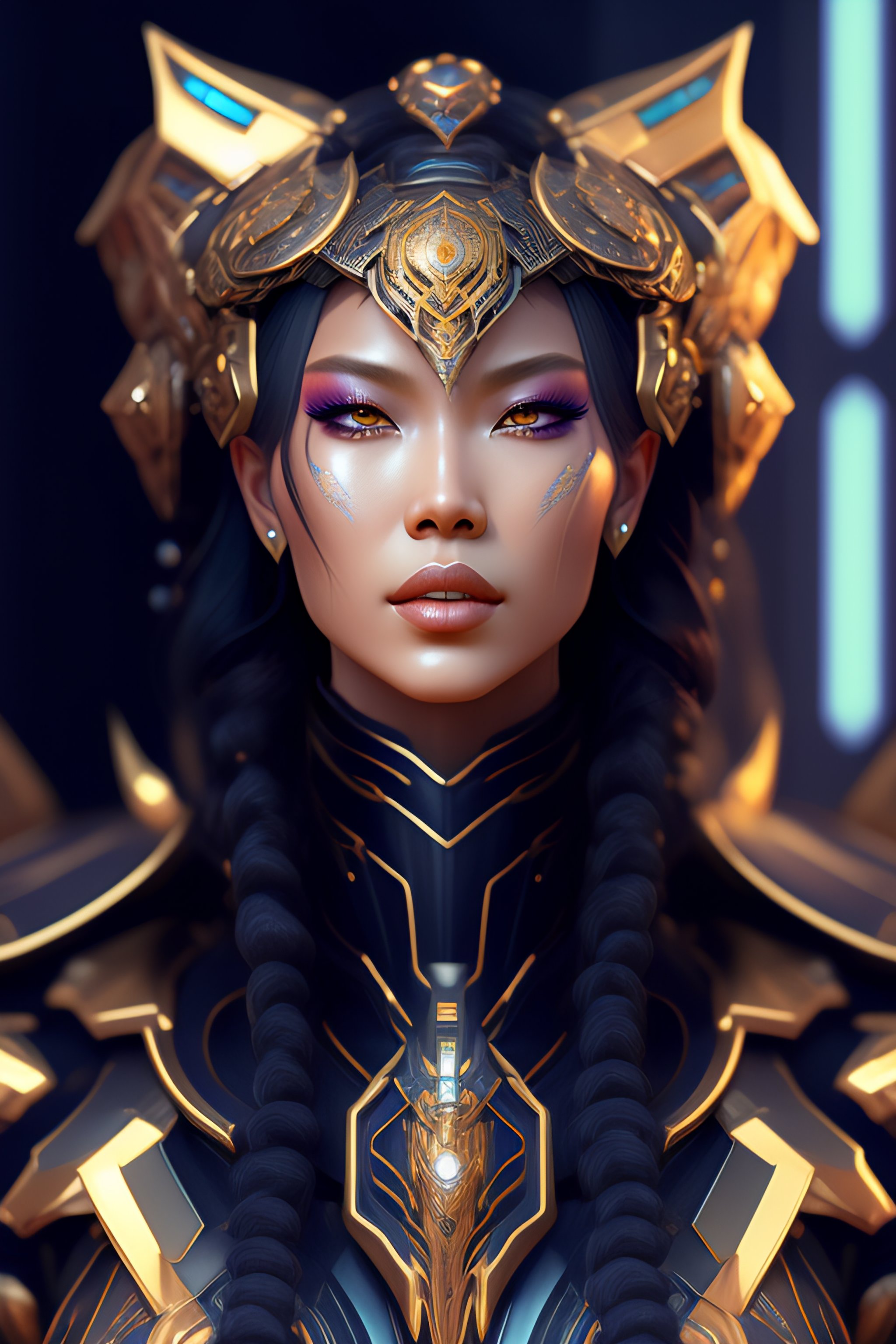 Symmetry!! portrait of cyberpunk alien empress goddess mecha in the style of horizon zero dawn, machine face, intricate, elegant, highly detailed, digital painting, artstation, concept art, smooth, sharp focus, illustration, art by artgerm and greg rutkowski and alphonse mucha, 8 k
