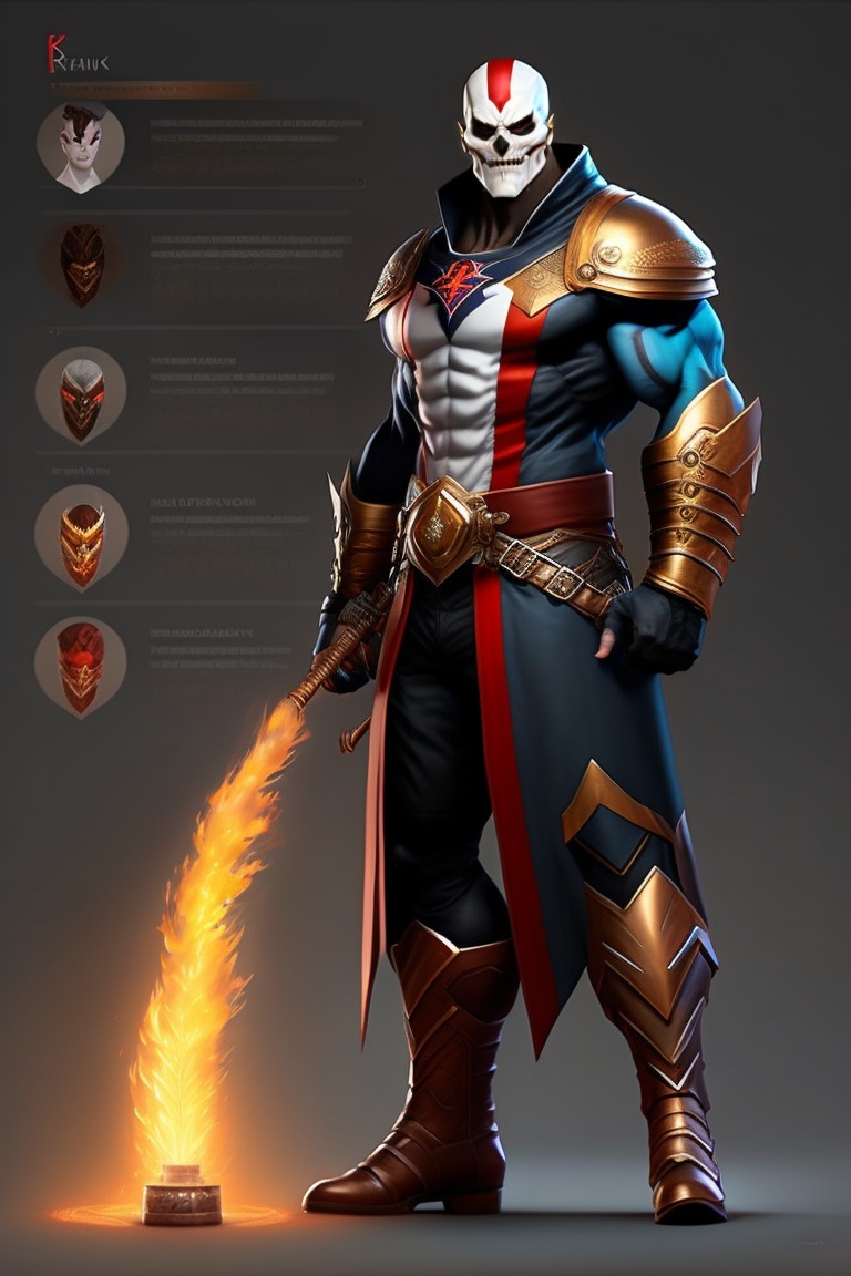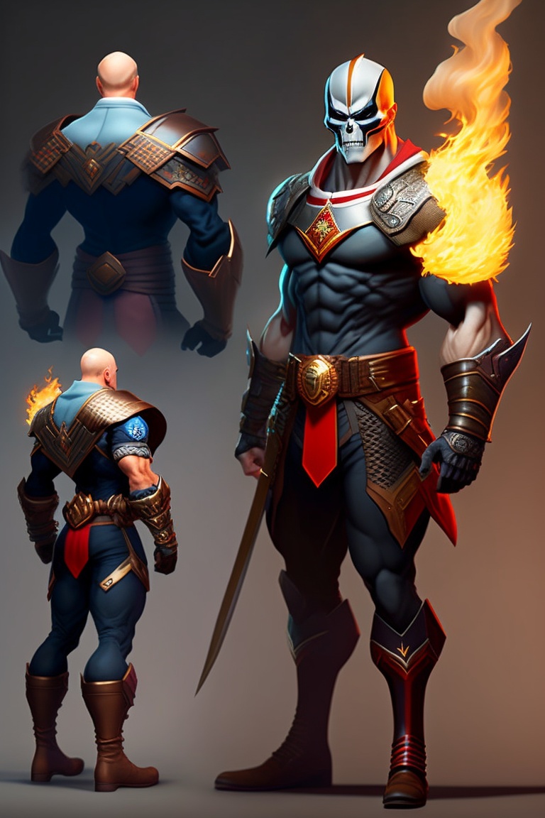 Full body of an ghost rider mixed with kratos