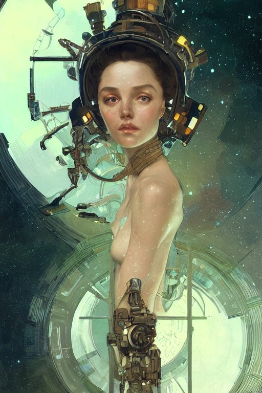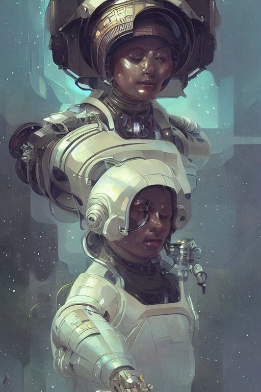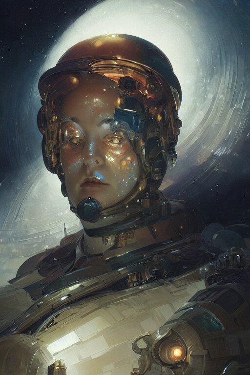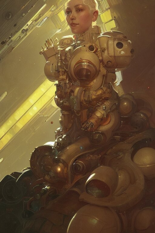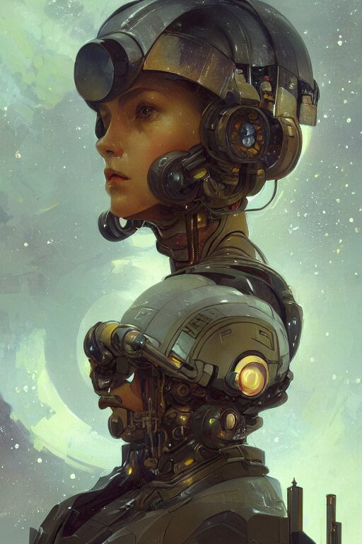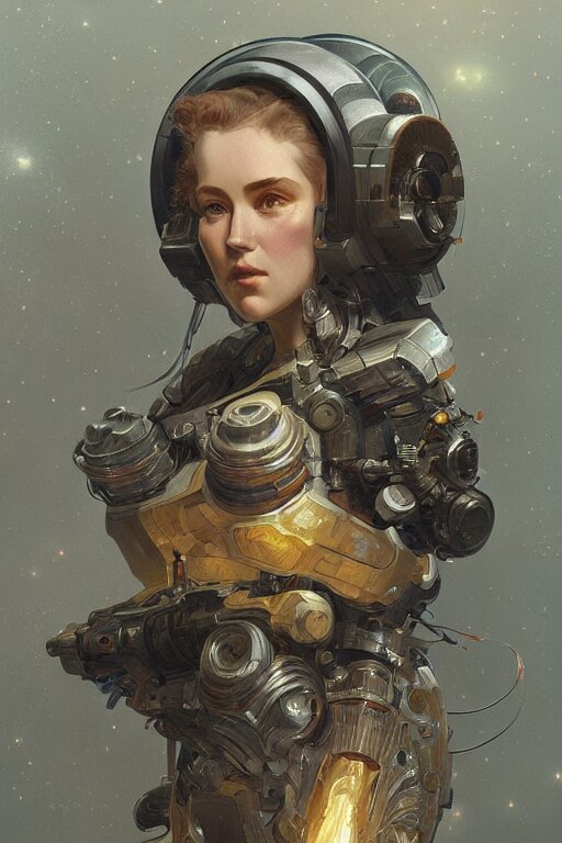 A full portrait of a scifi heavy deep space miner, intricate, elegant, highly detailed, digital painting, artstation, concept art, smooth, sharp focus, illustration, art by krenz cushart and artem demura and alphonse mucha
