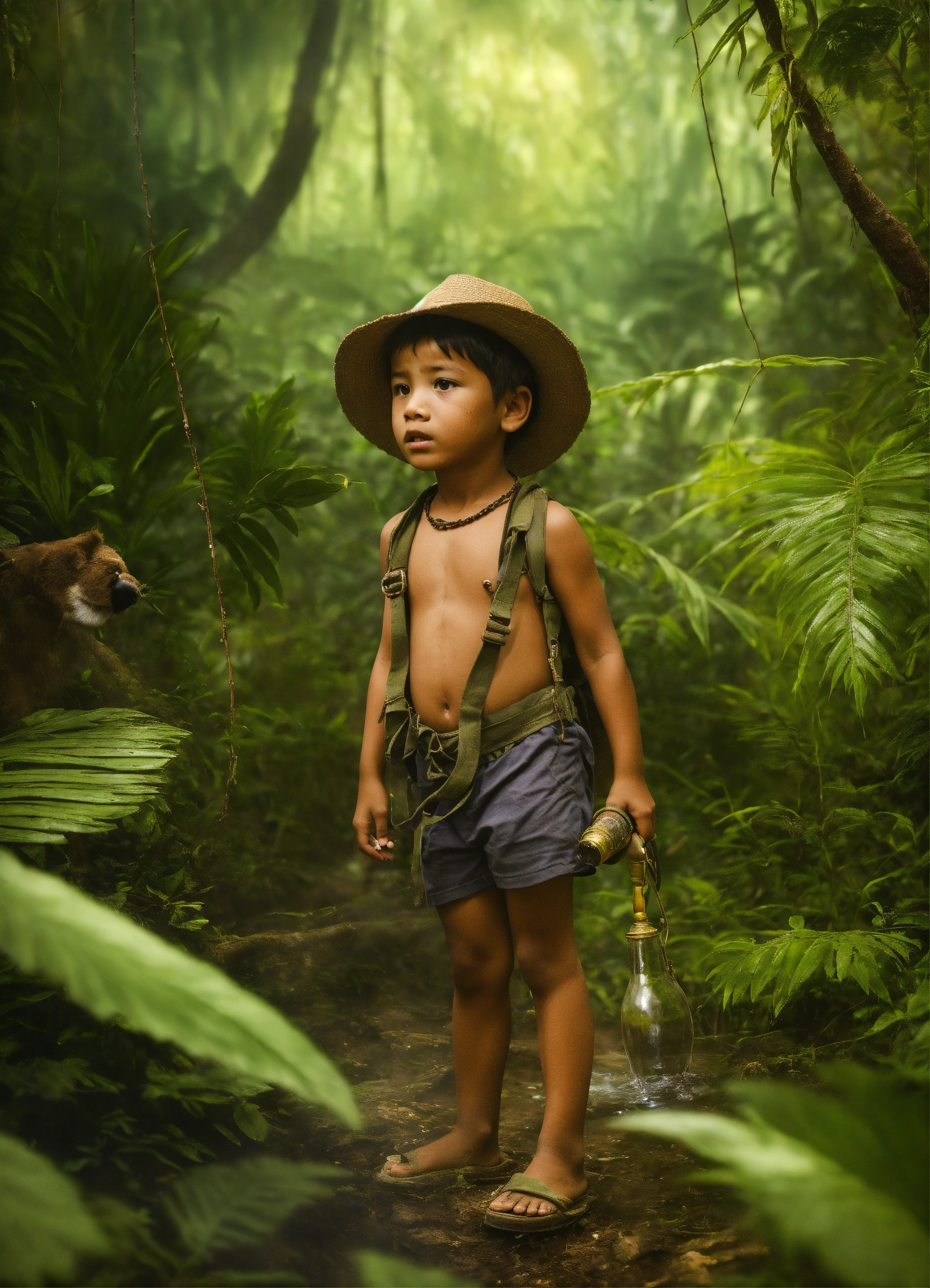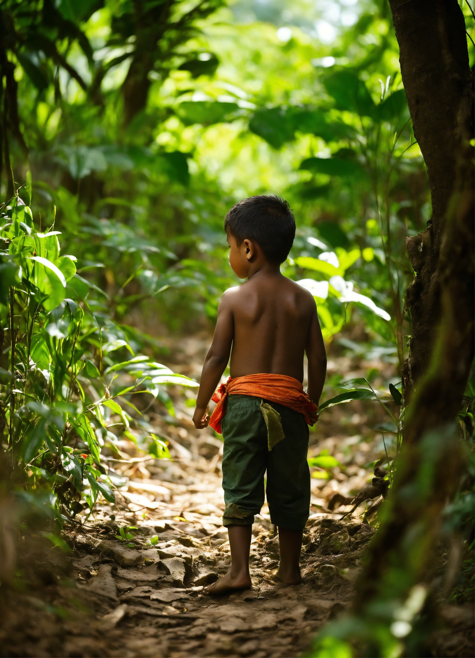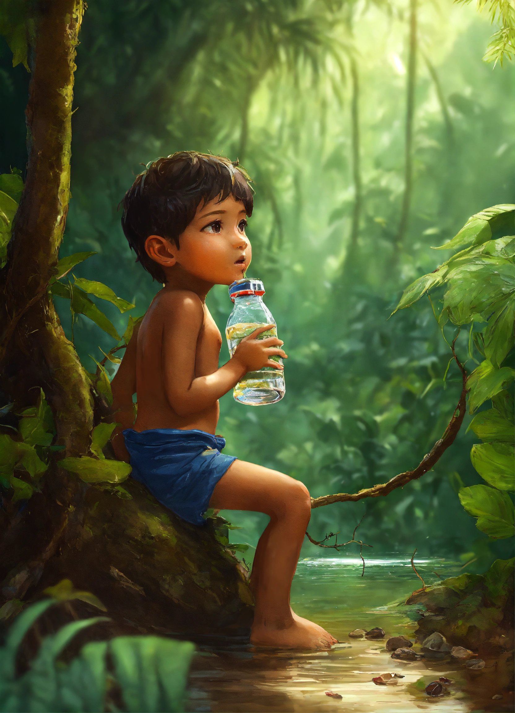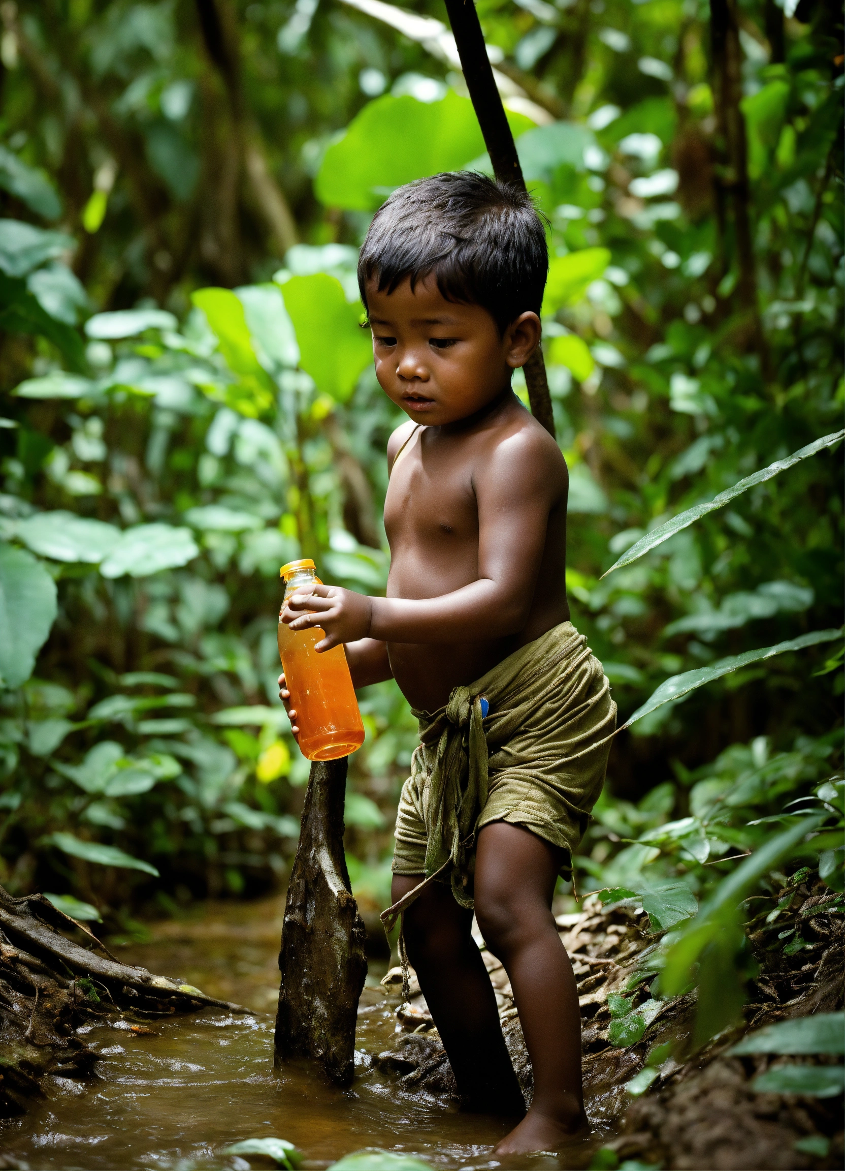 Child was searching in jungle as he was very thirsty