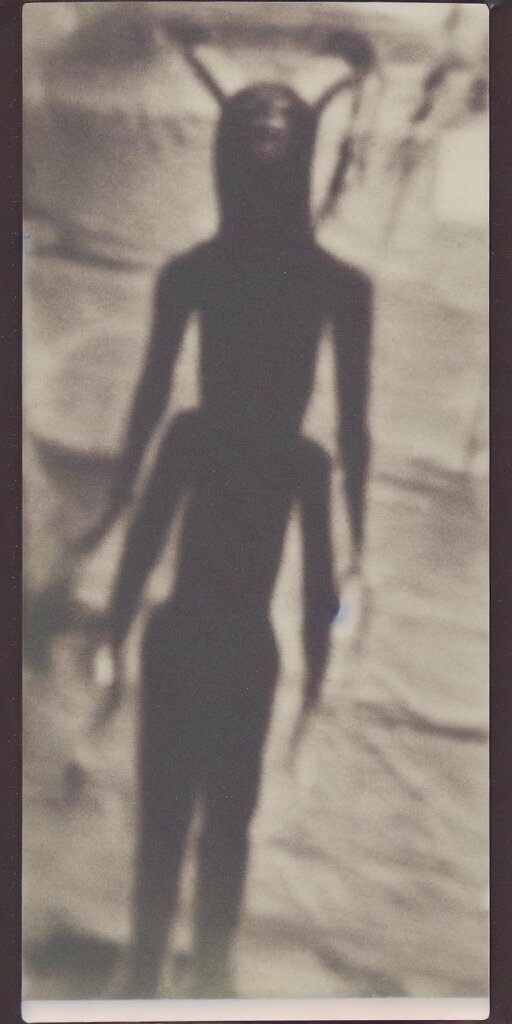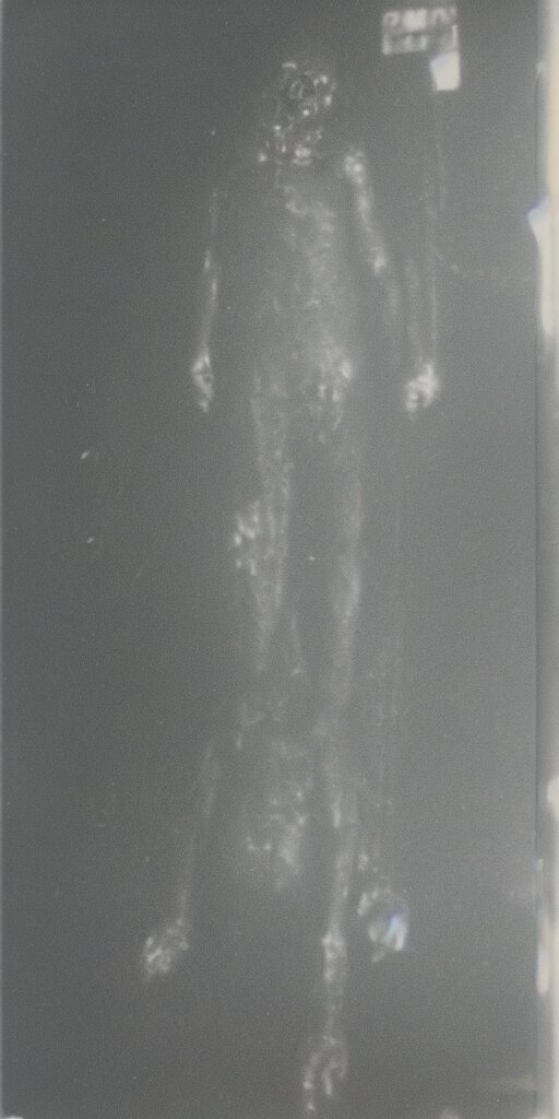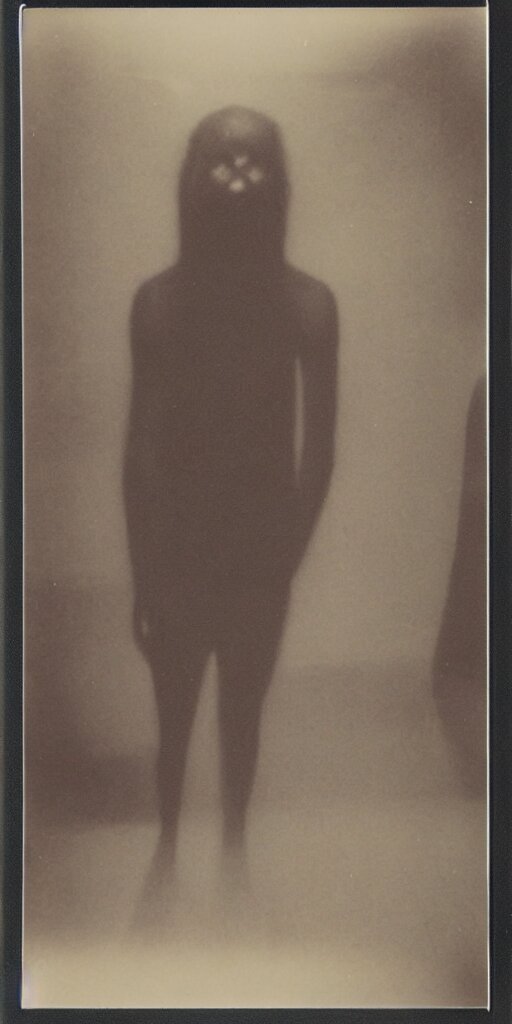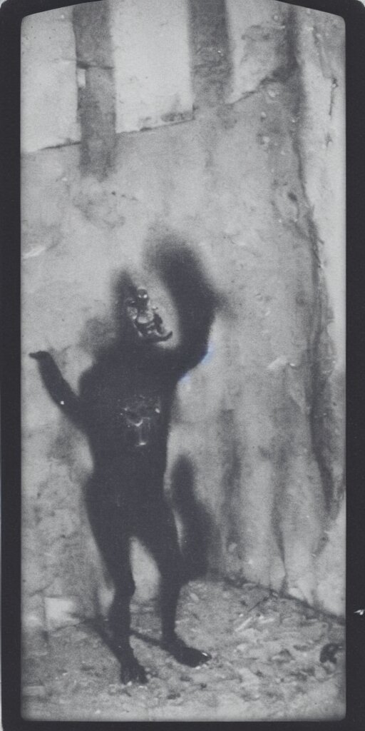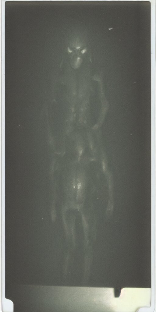 Found polaroid photo of a horrifying humanlike cryptid in a dark moist basement