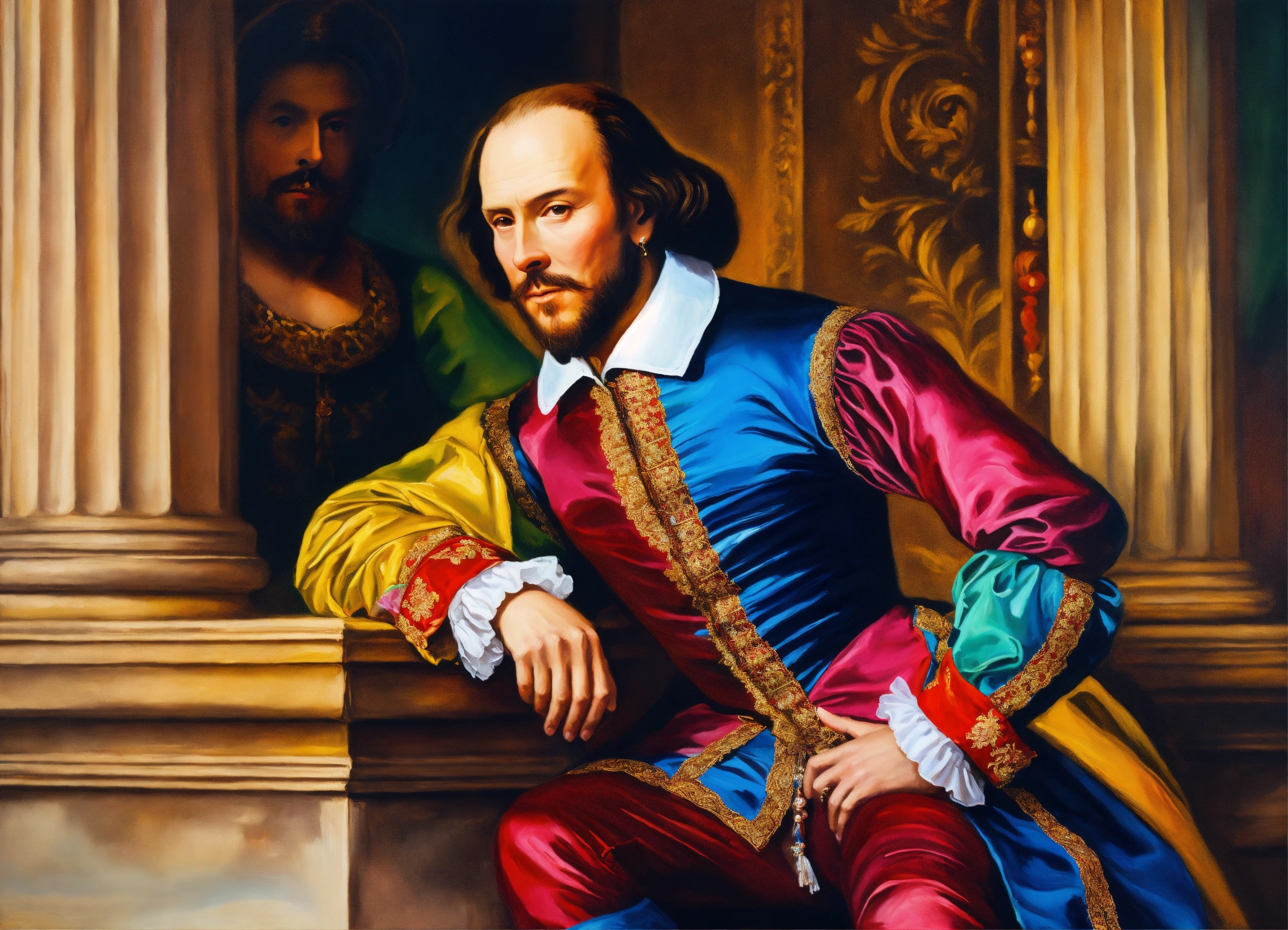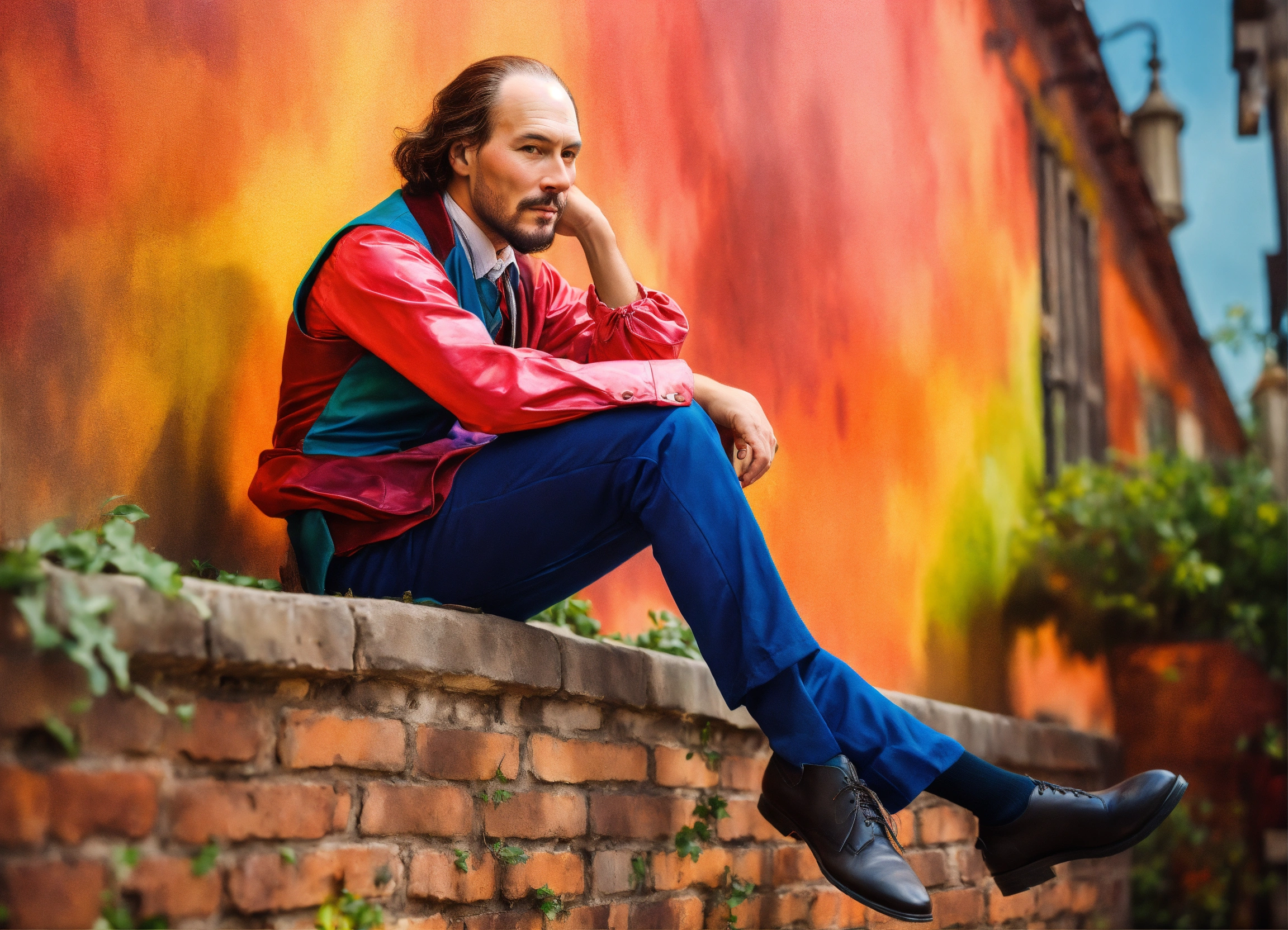 William shakespeare sitting on a wall in colourful
