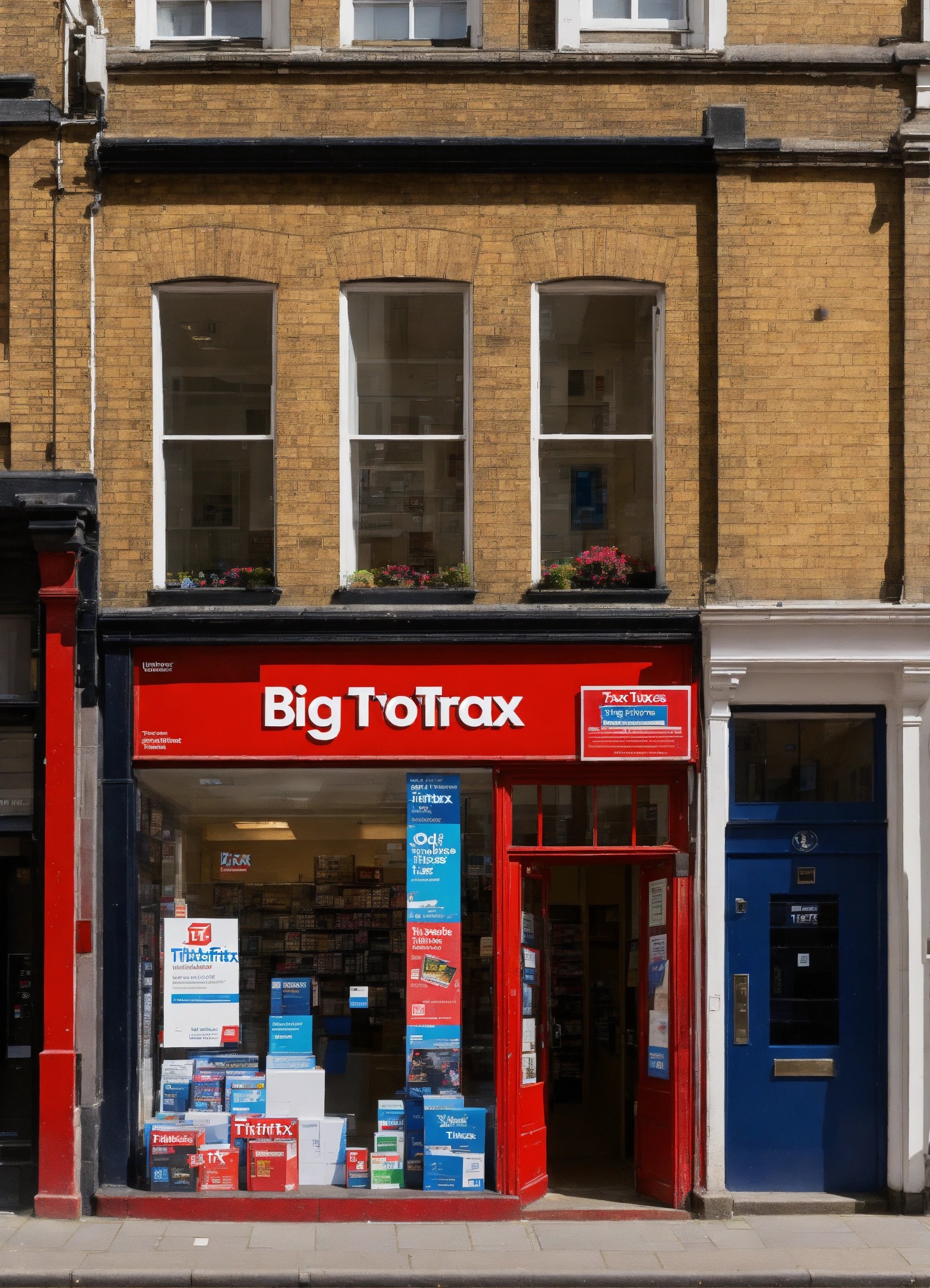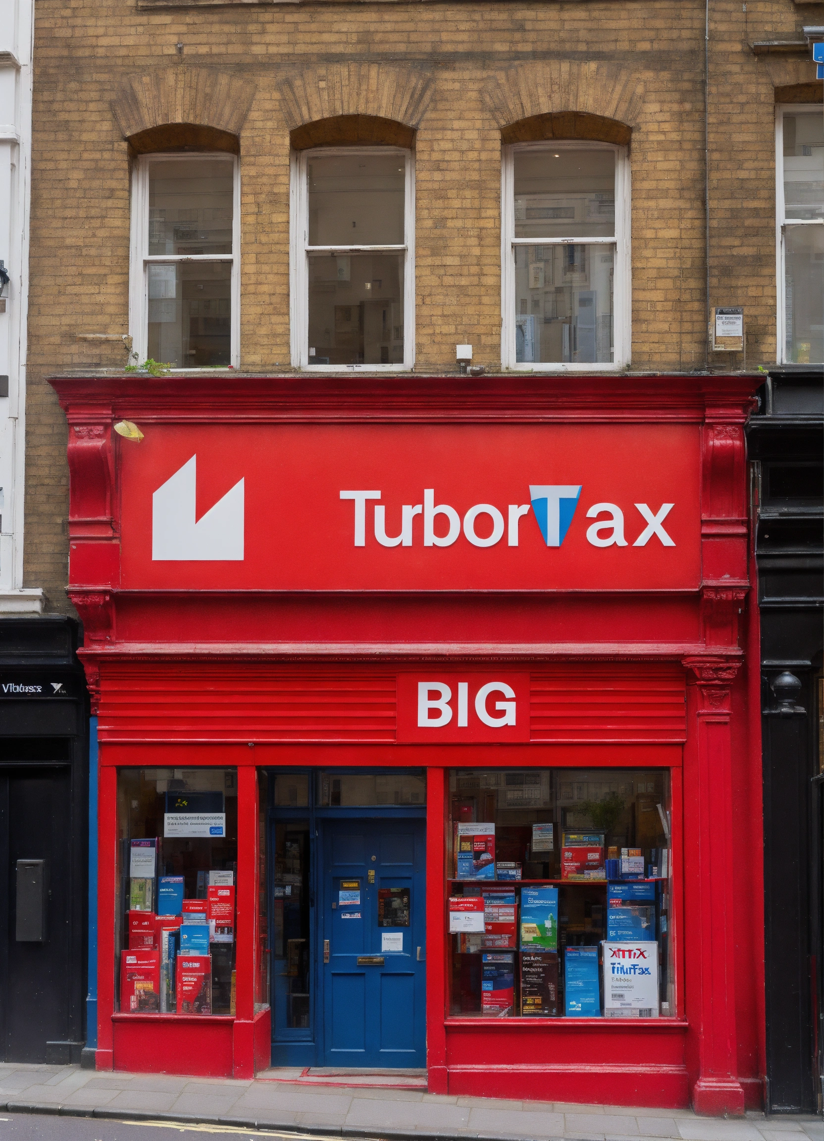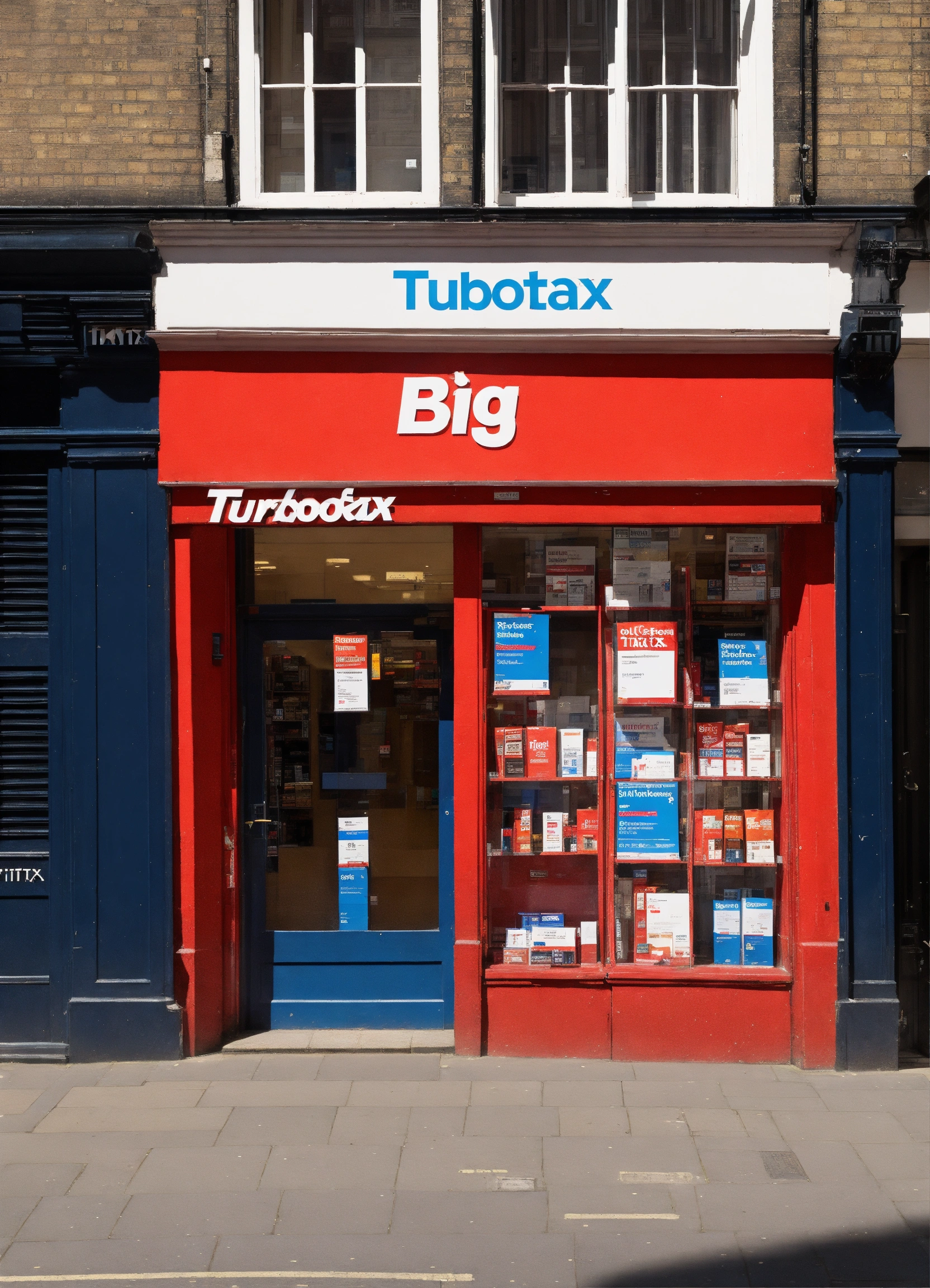 Software store, address 27 old gloucester st, london wc1n 3ax, united kingdom. outside the store there is a sign called "big home tax" inside, turbotax products are sold on shelves.