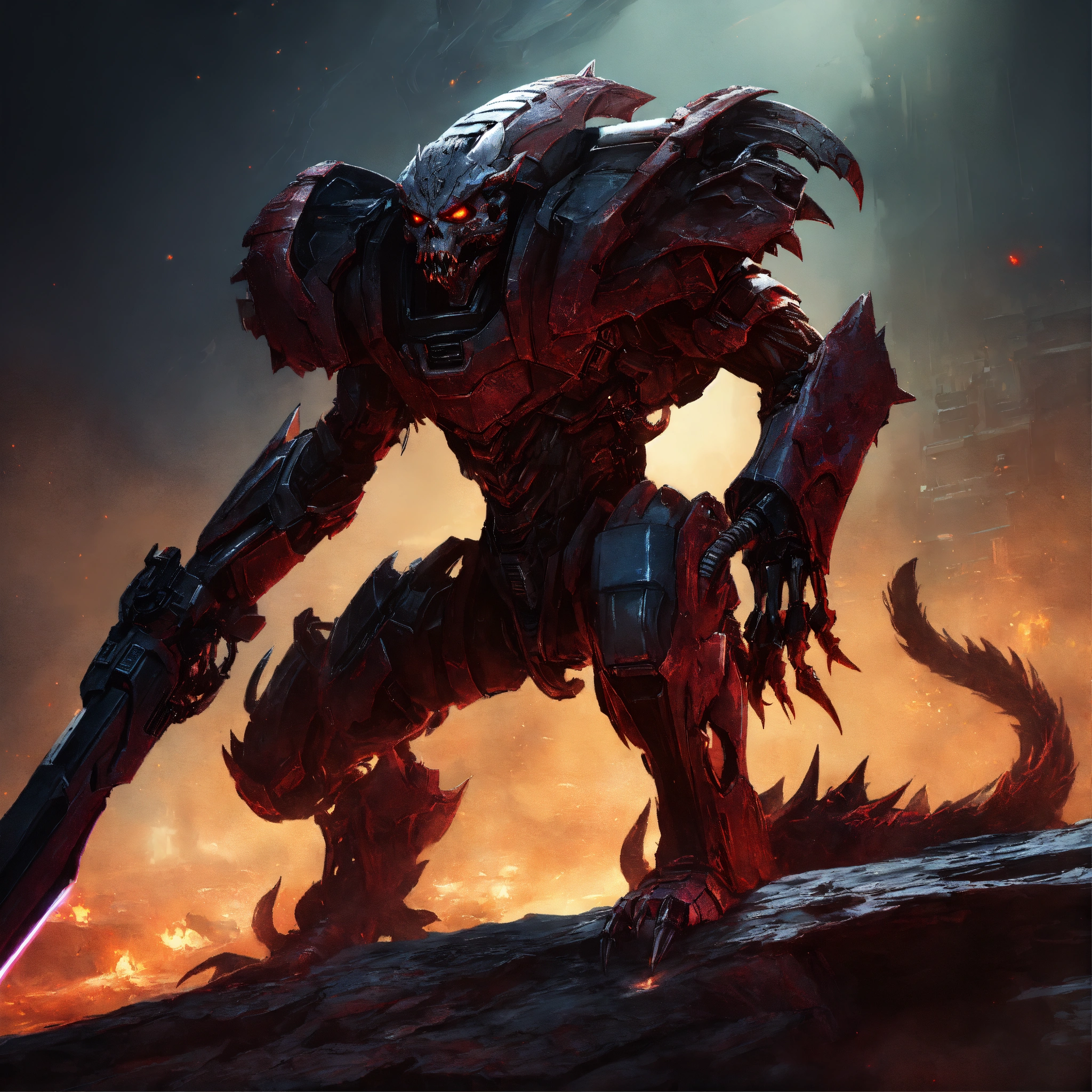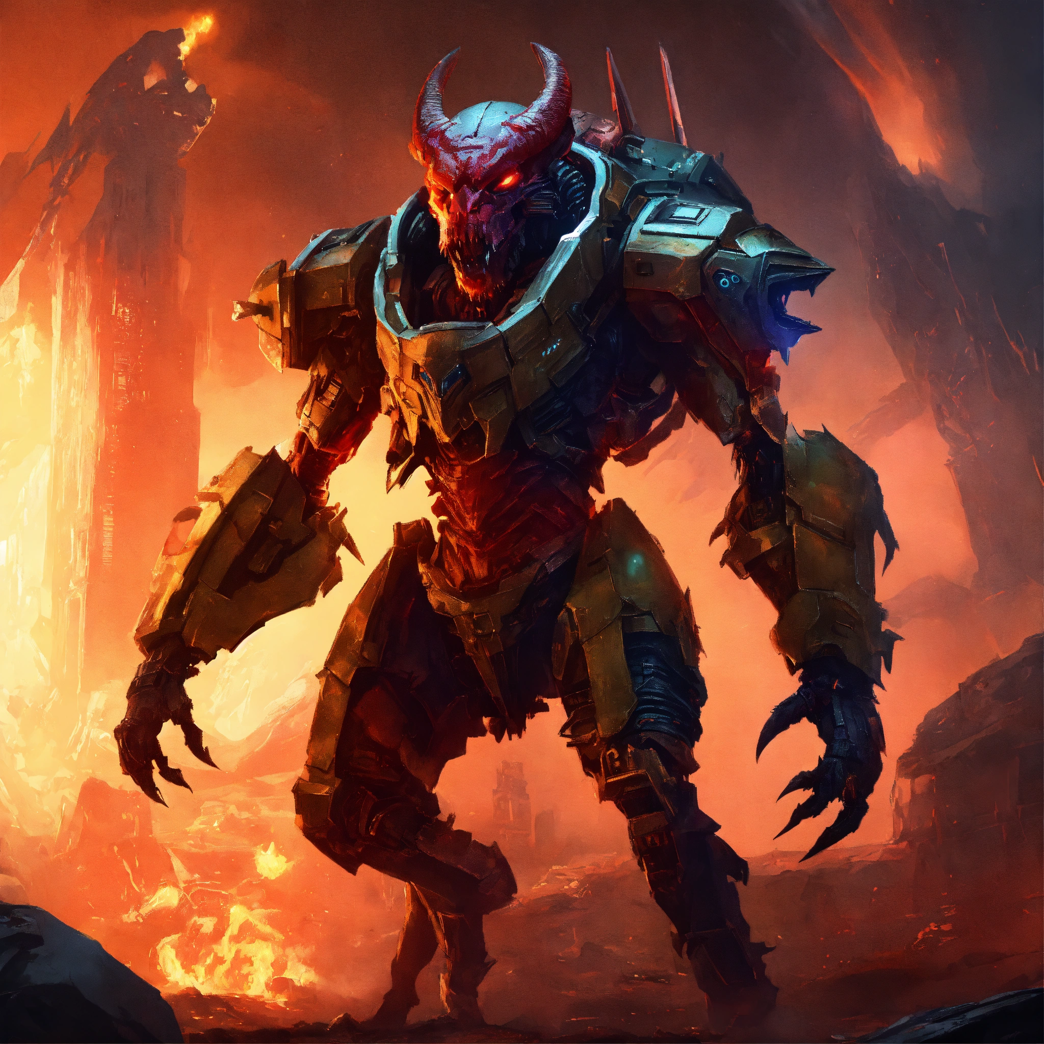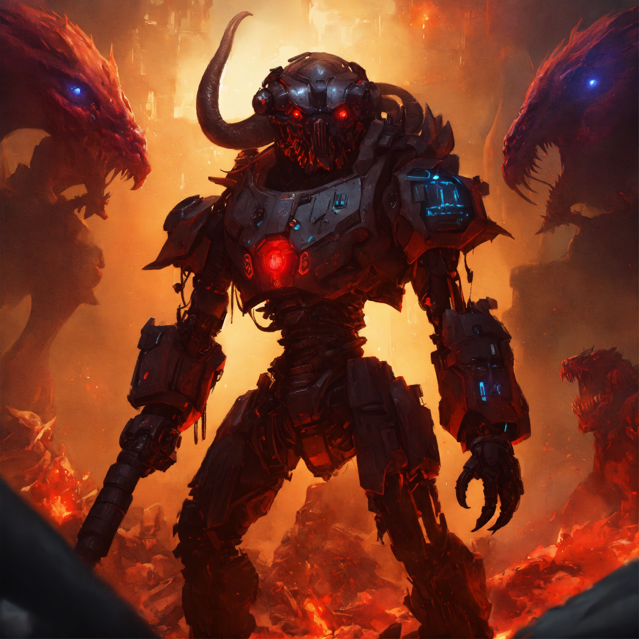 Monstrous, demonic, space pirate, monster, art station, sci-fi, mass effect, science fiction, space opera, demon, evil, undead, sith, warlord, cyborg, robotic, doom eternal, bones, skeletal, claws, monster, demon, demonic, power metal, death metal, animal, guard animal, wolfenstein, four-legged, quadrupedal