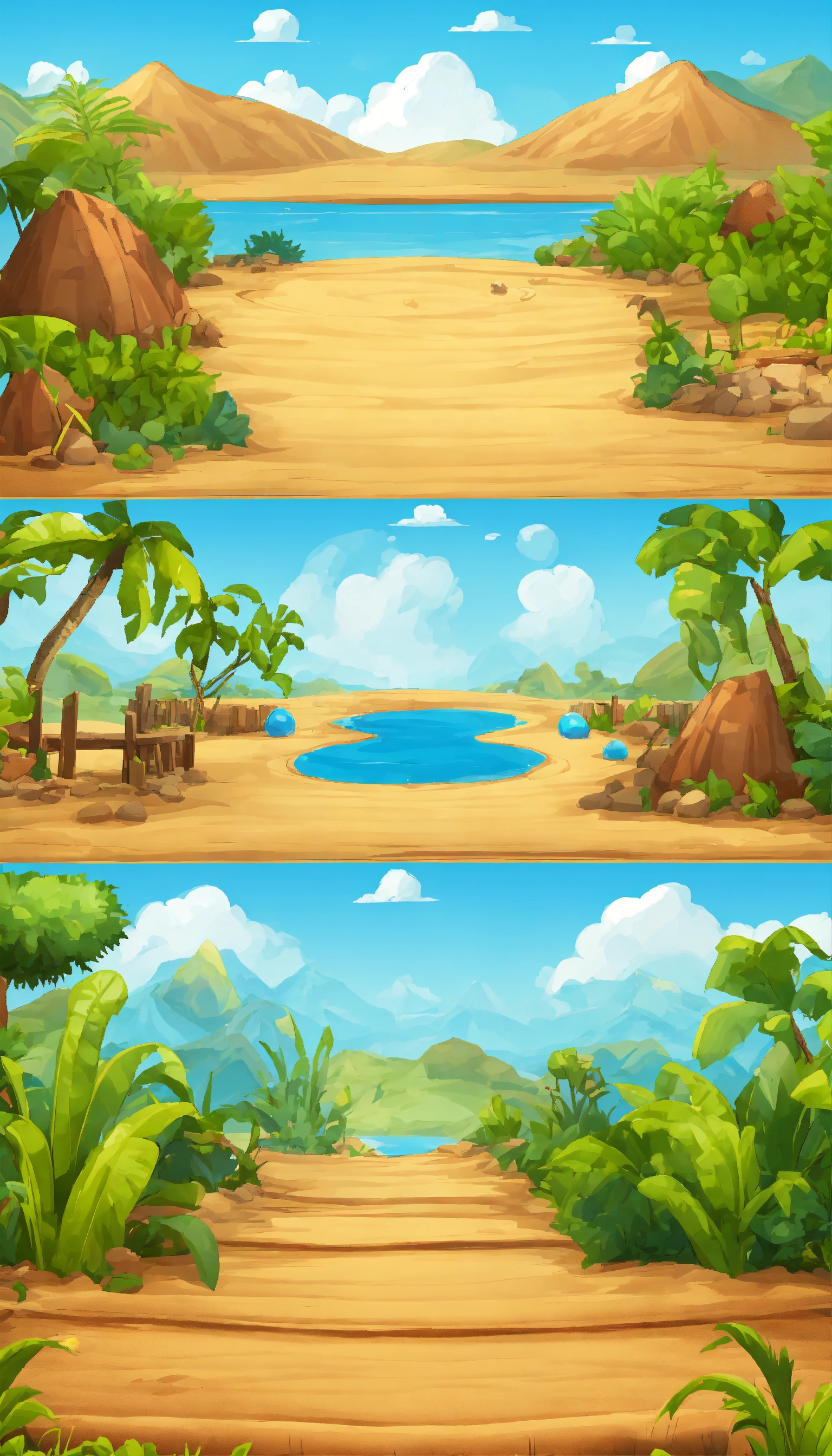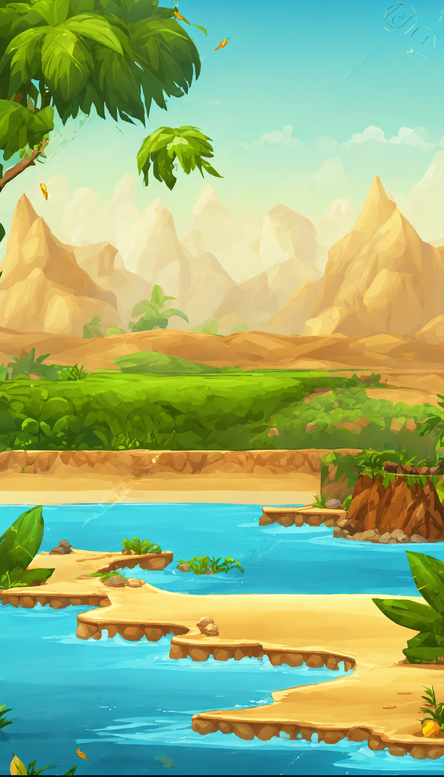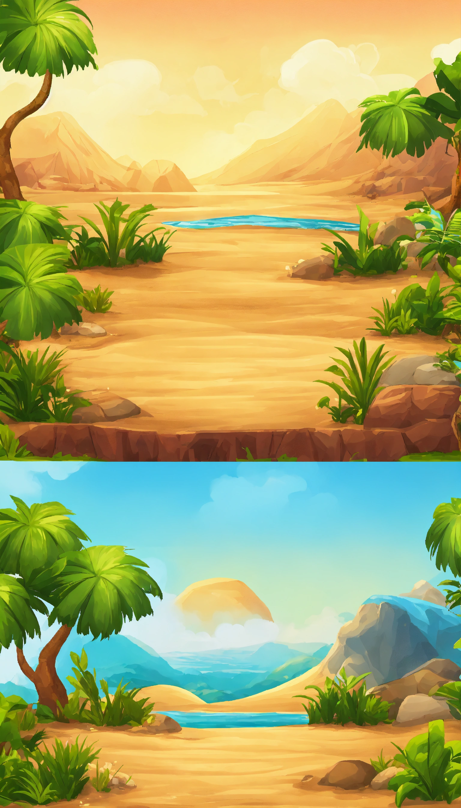 2d mobile platform game background with different terrains