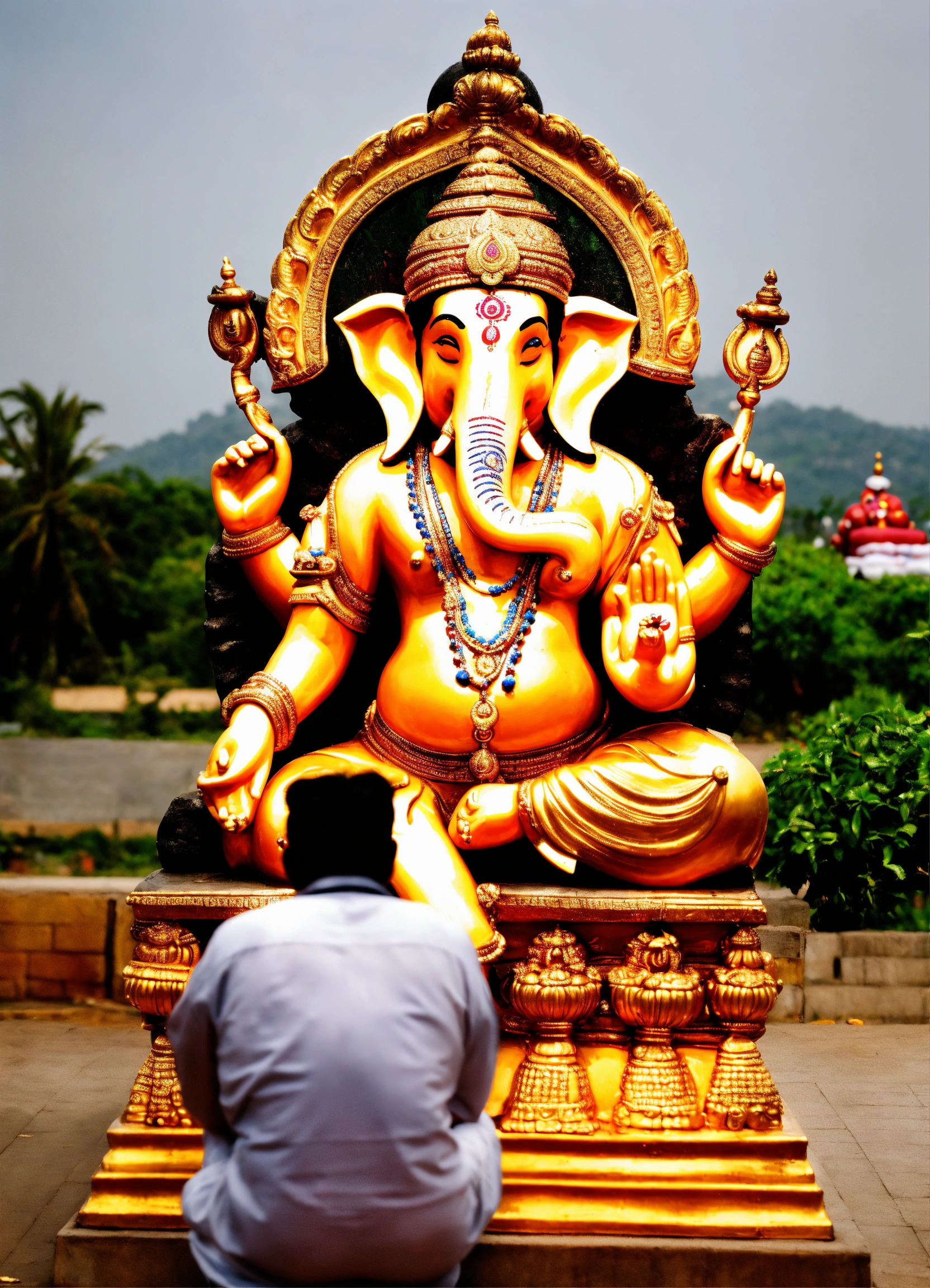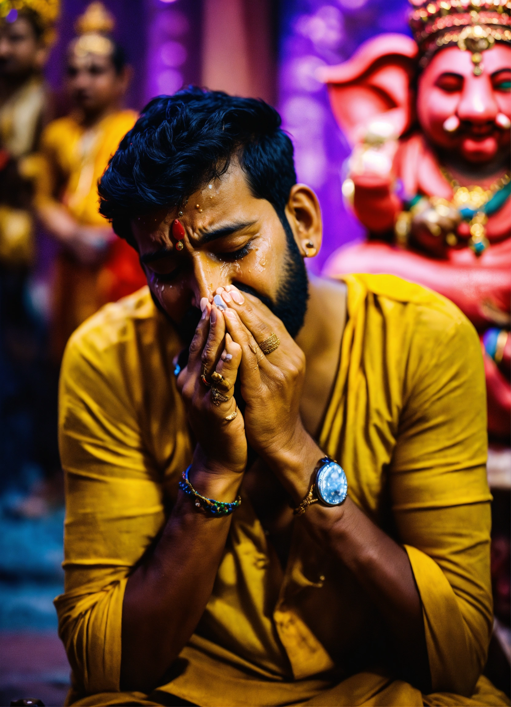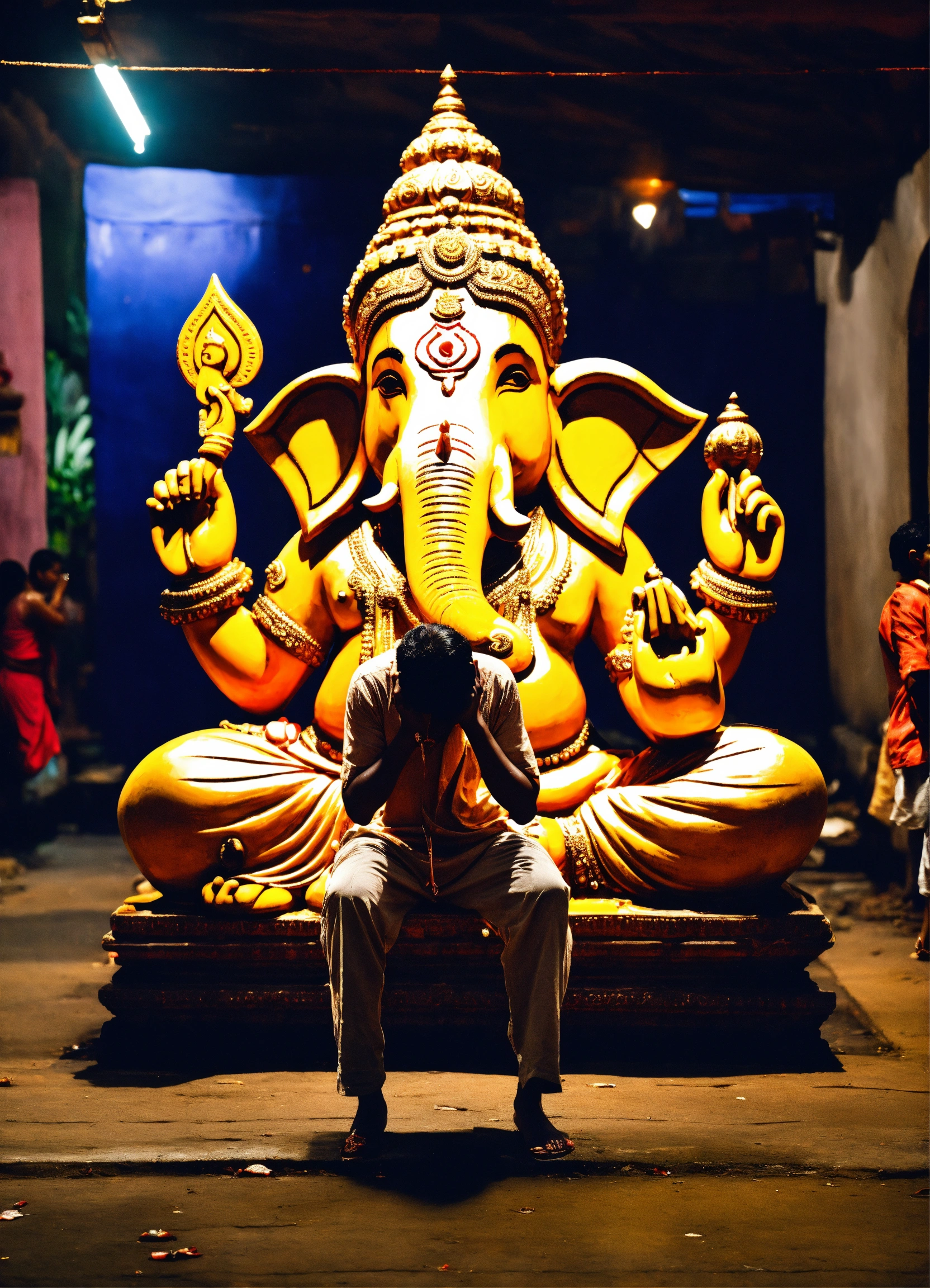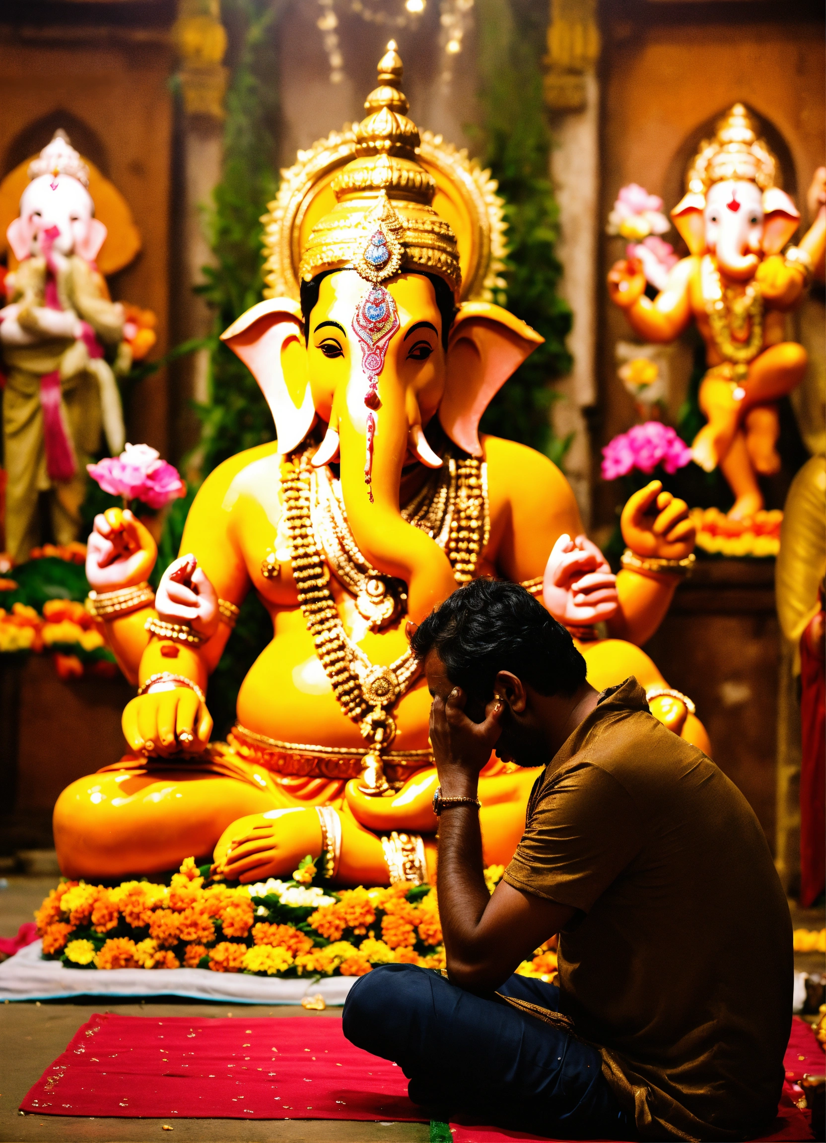 Crying man in front of ganpati idol