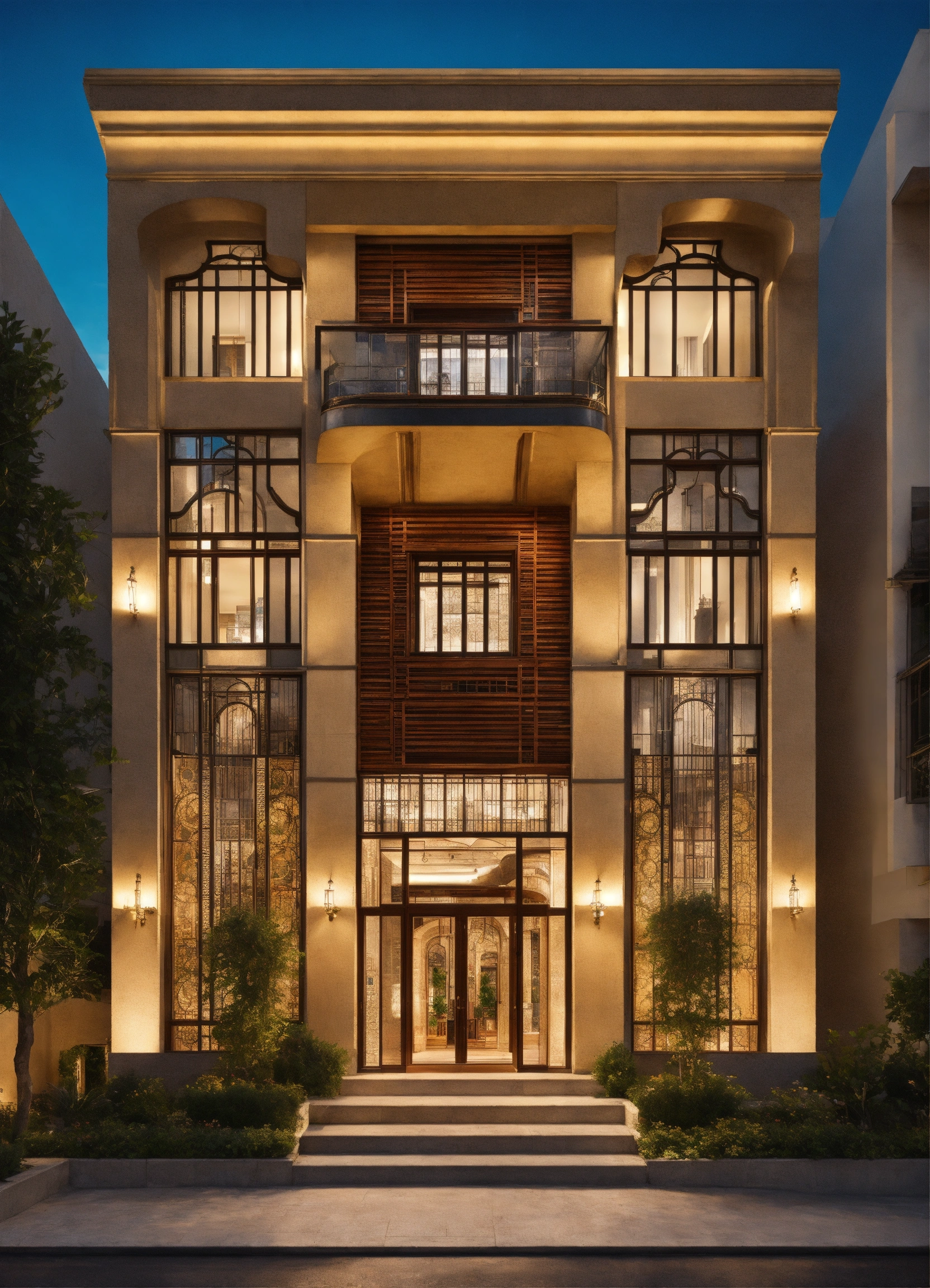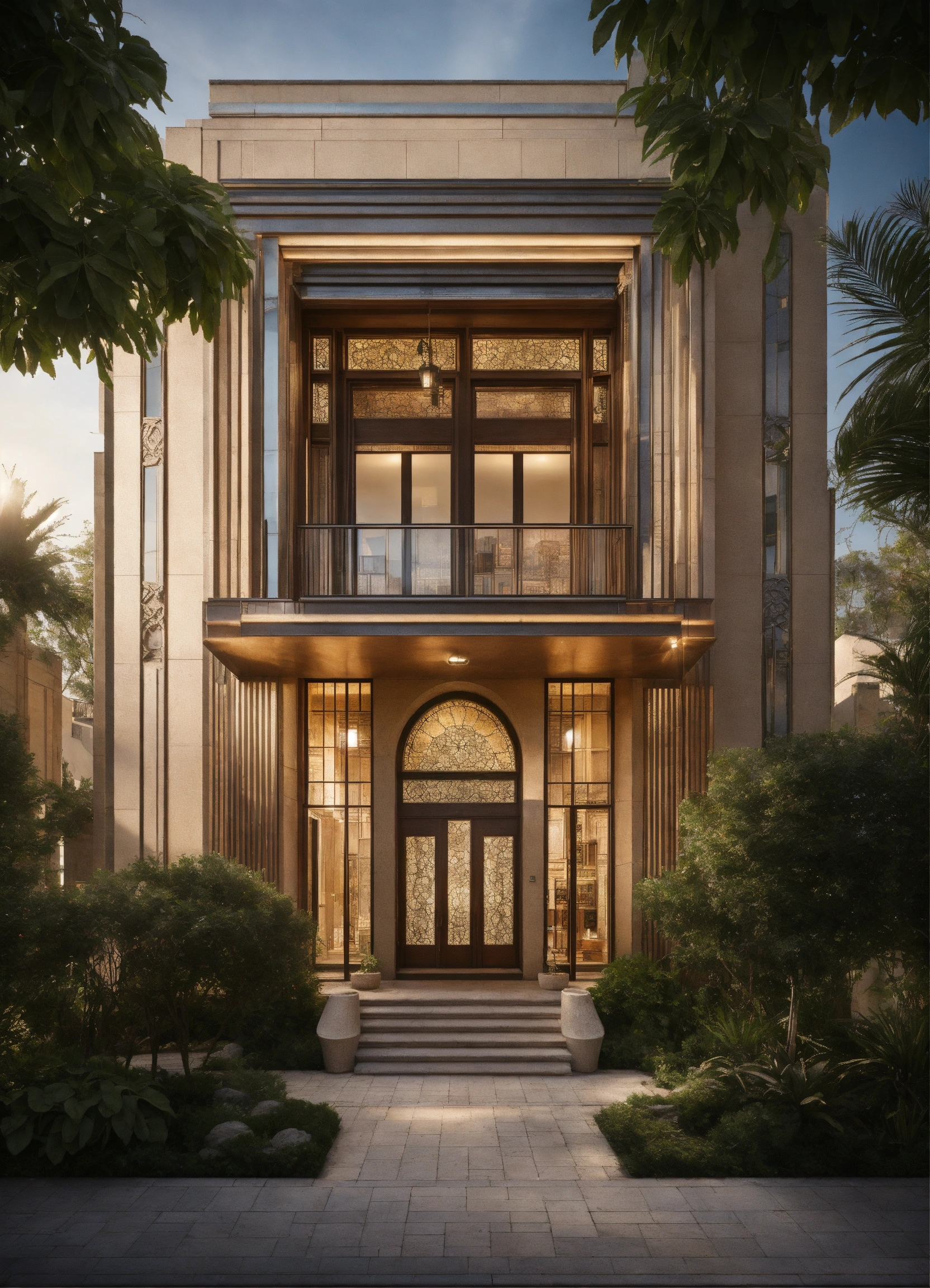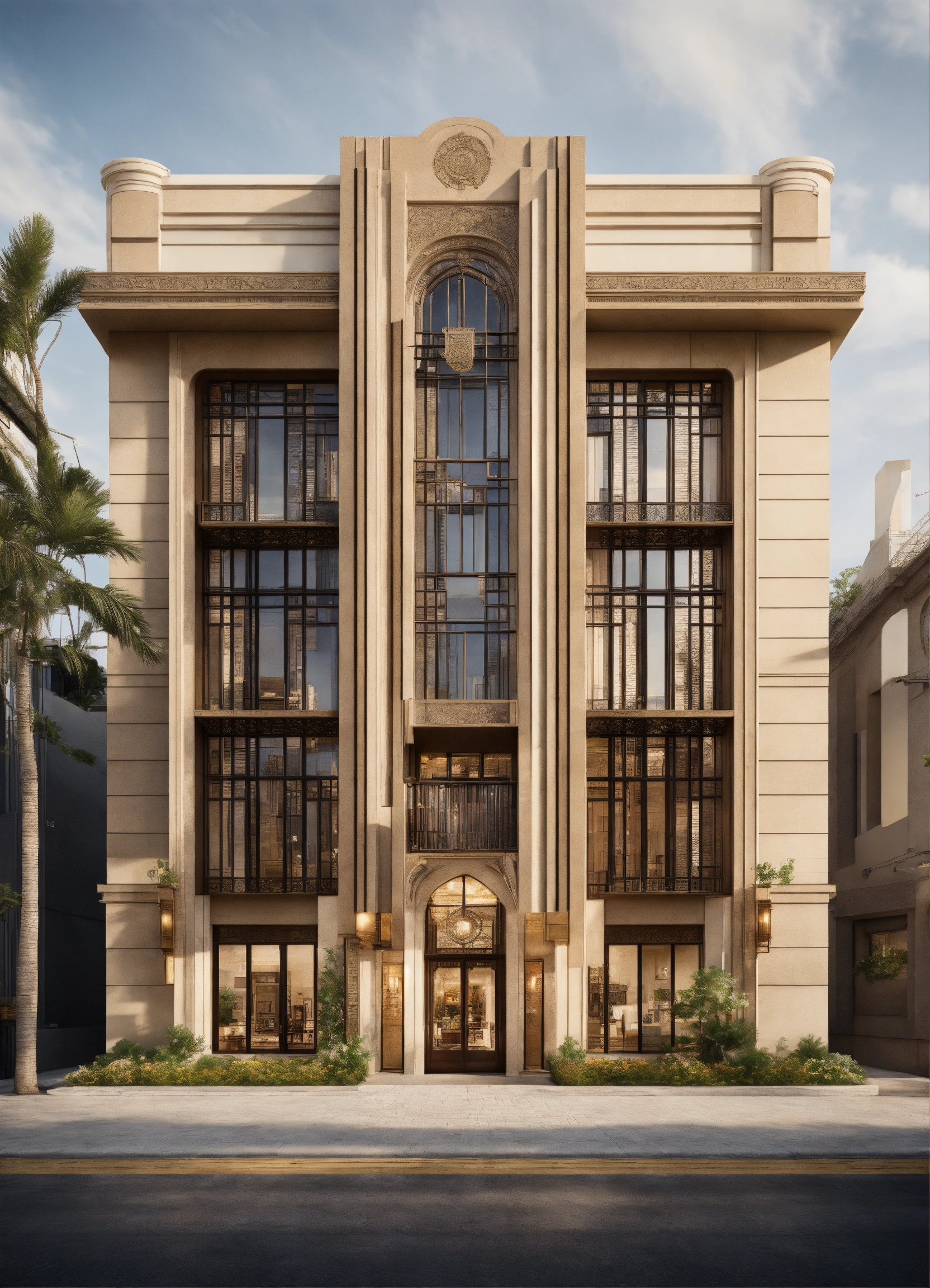 Drawing inspiration from art deco style, this three-level floor commercial building showcases a fusion of traditional organic elegance and mediterranean influence. with a beautiful facade, arch windows and a touch of vintage harmony, it offers a captivating front view.
