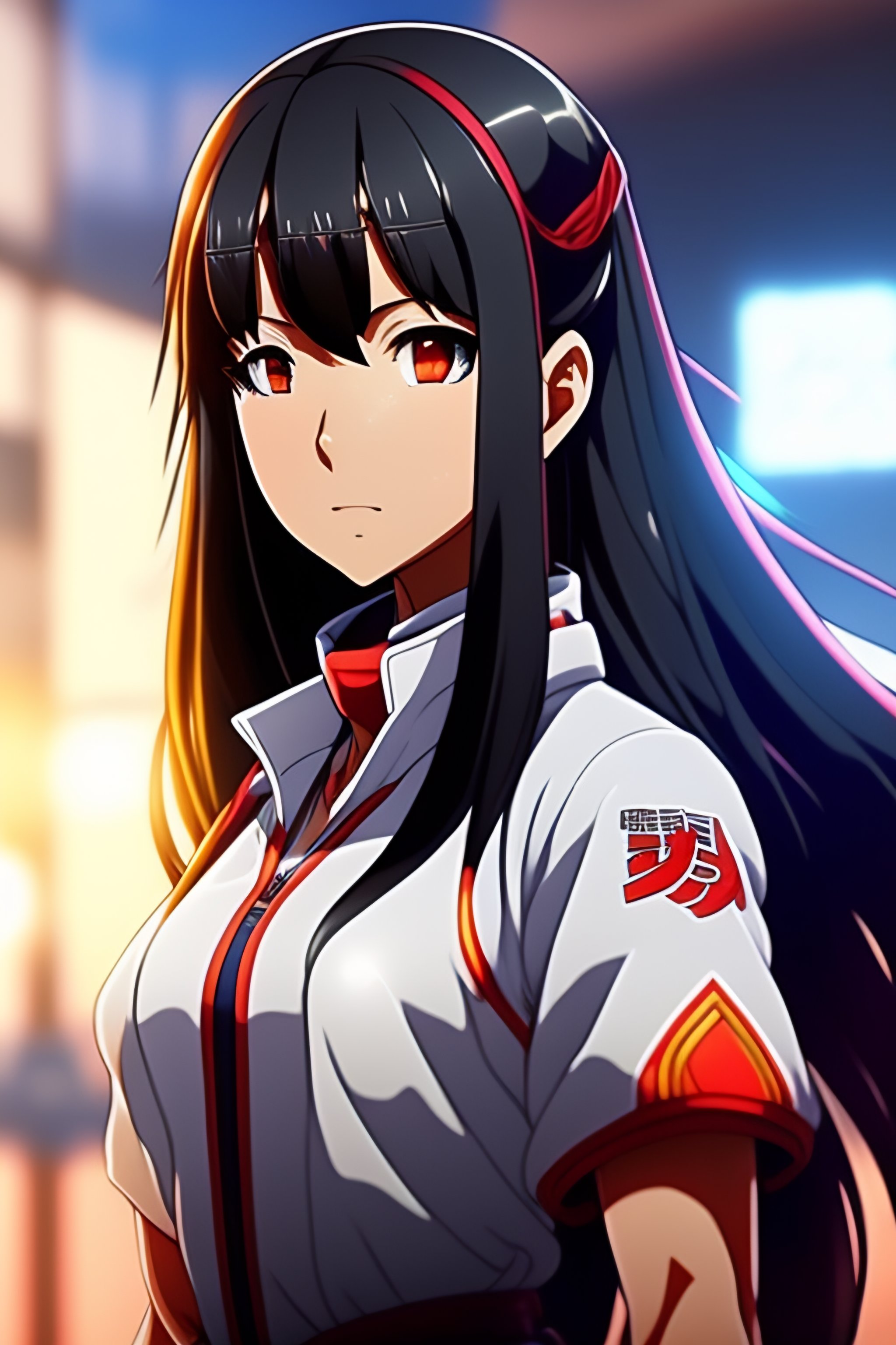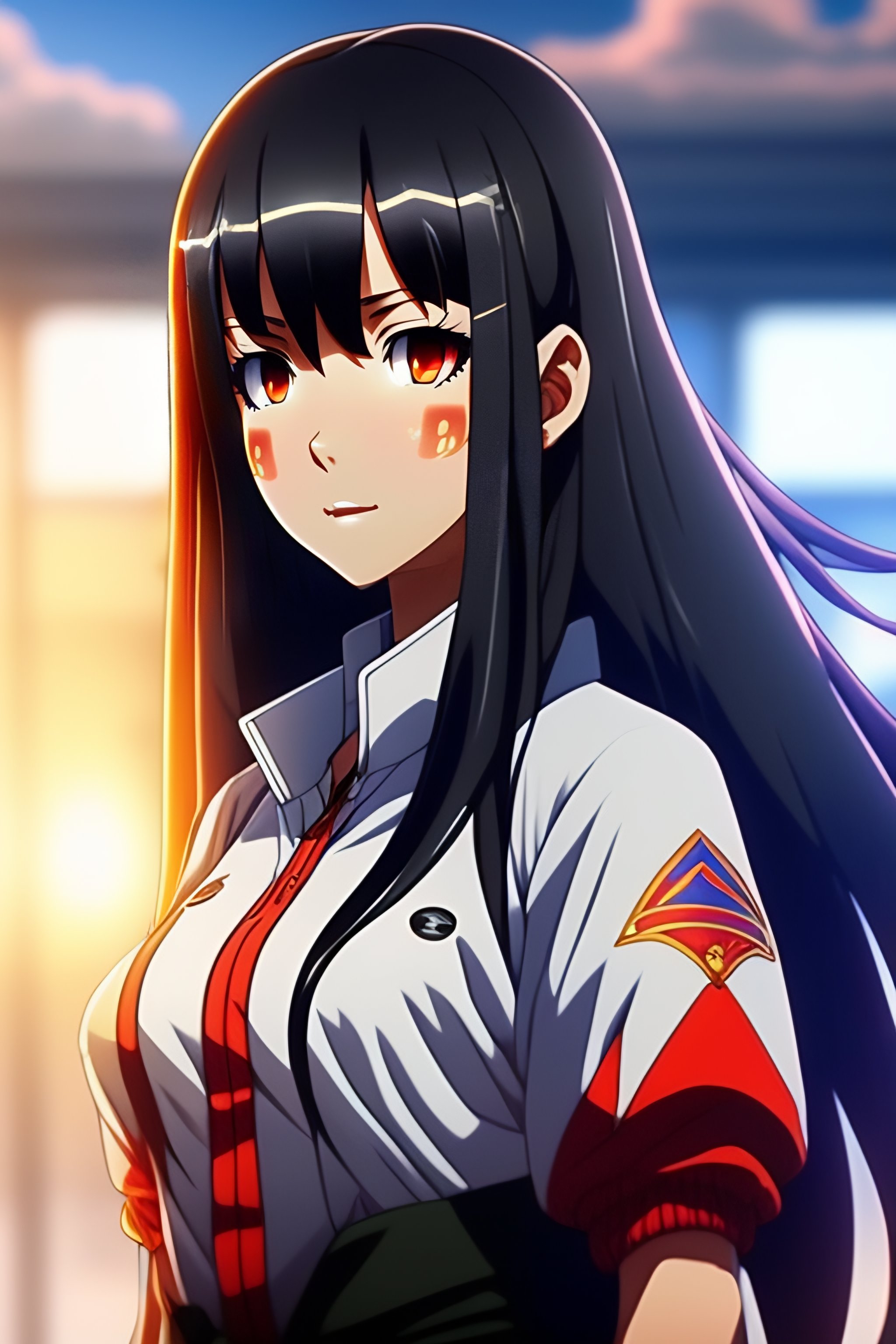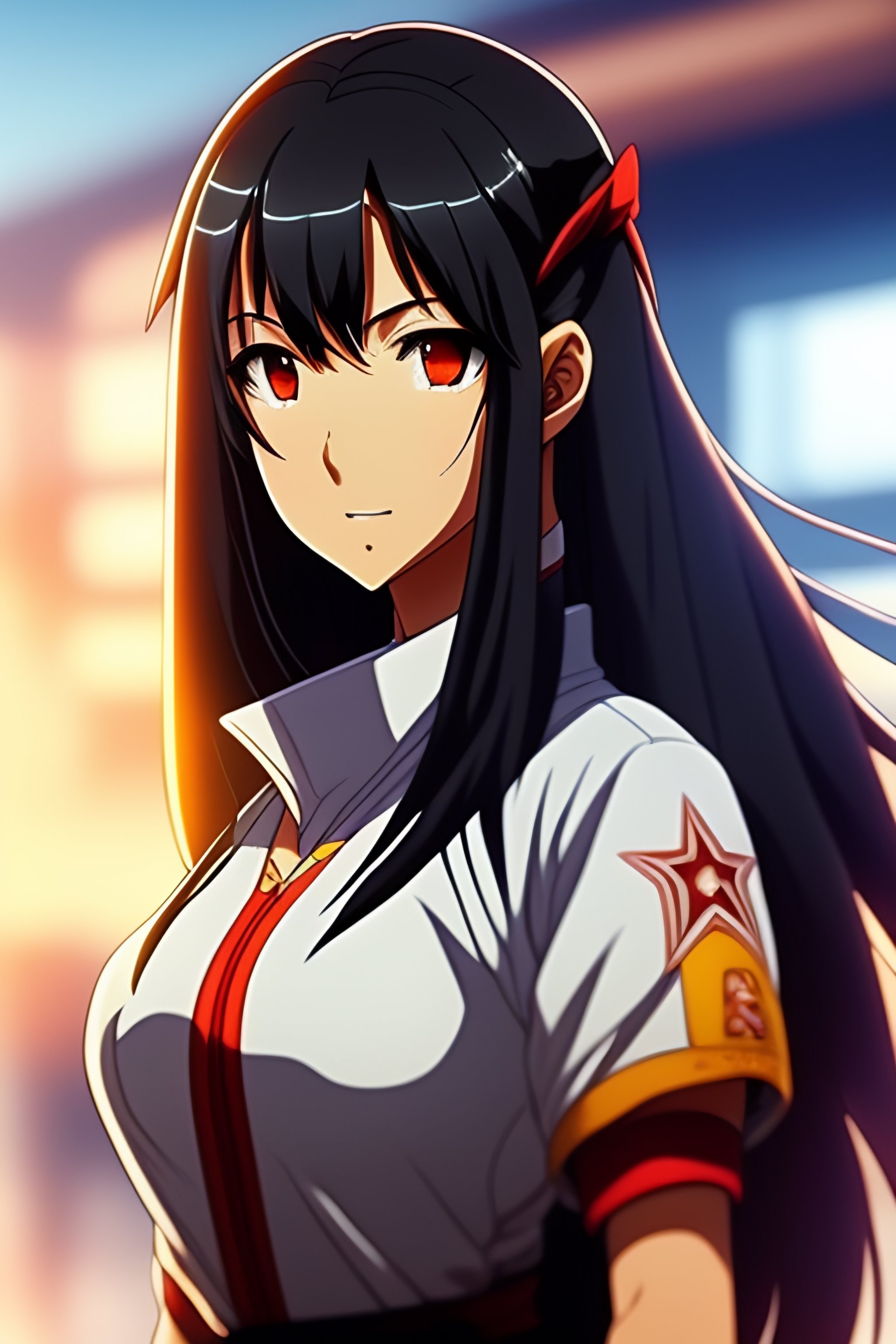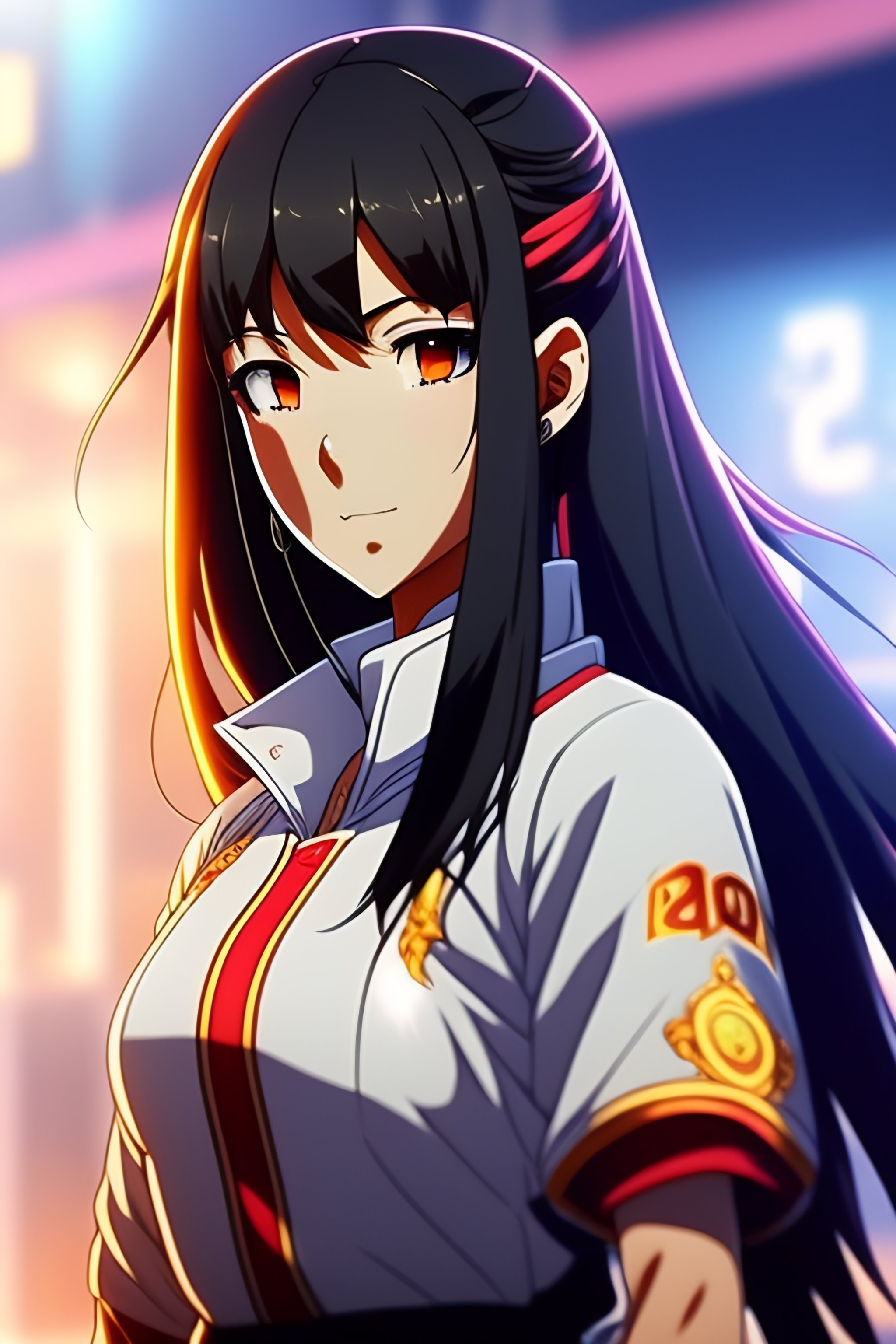 Anime character who is a calm and thoughtful character who values discipline and hard work. she has long, straight black hair and a slim, athletic build, and she is known for her calm and focused fighting style.