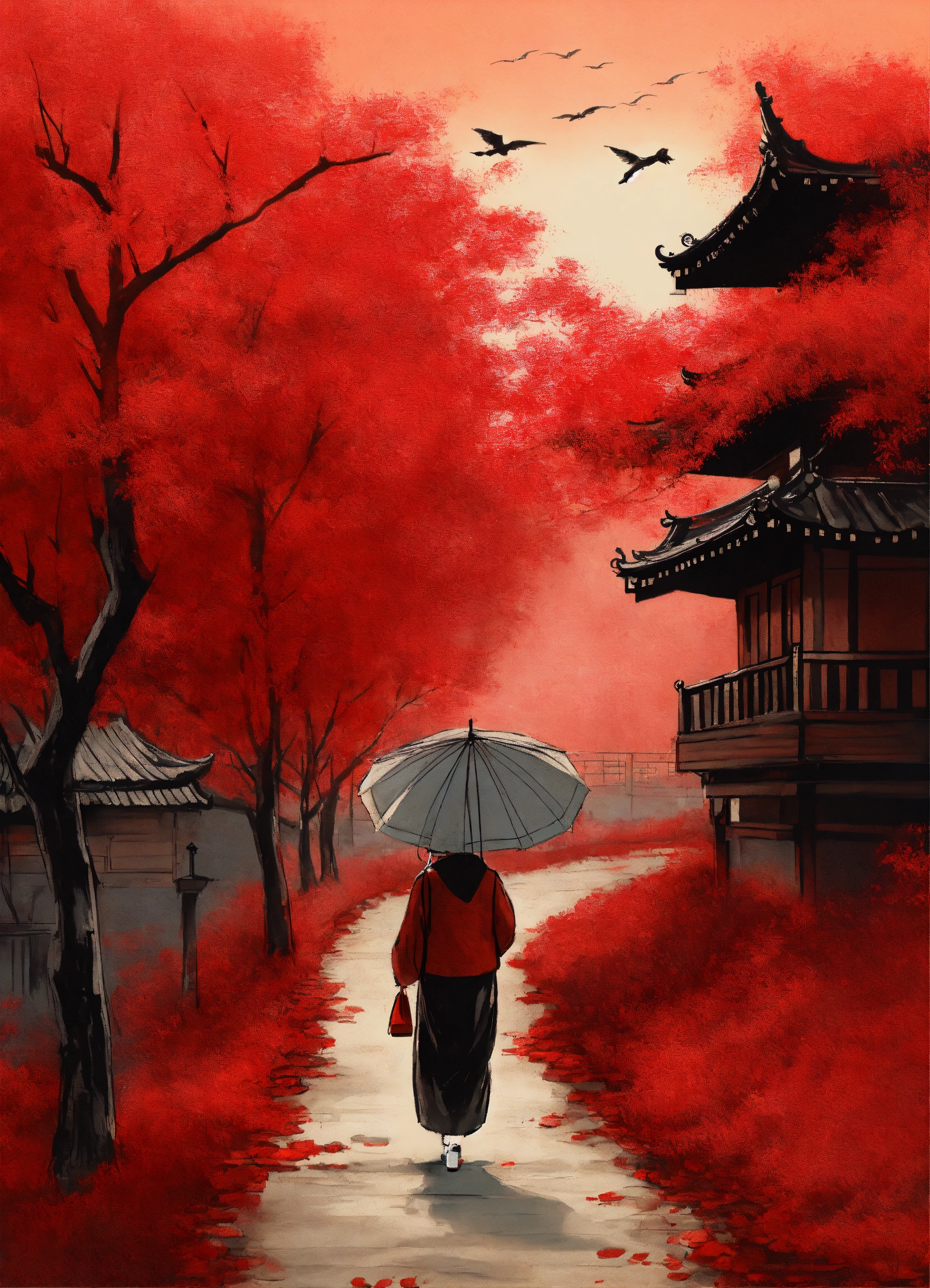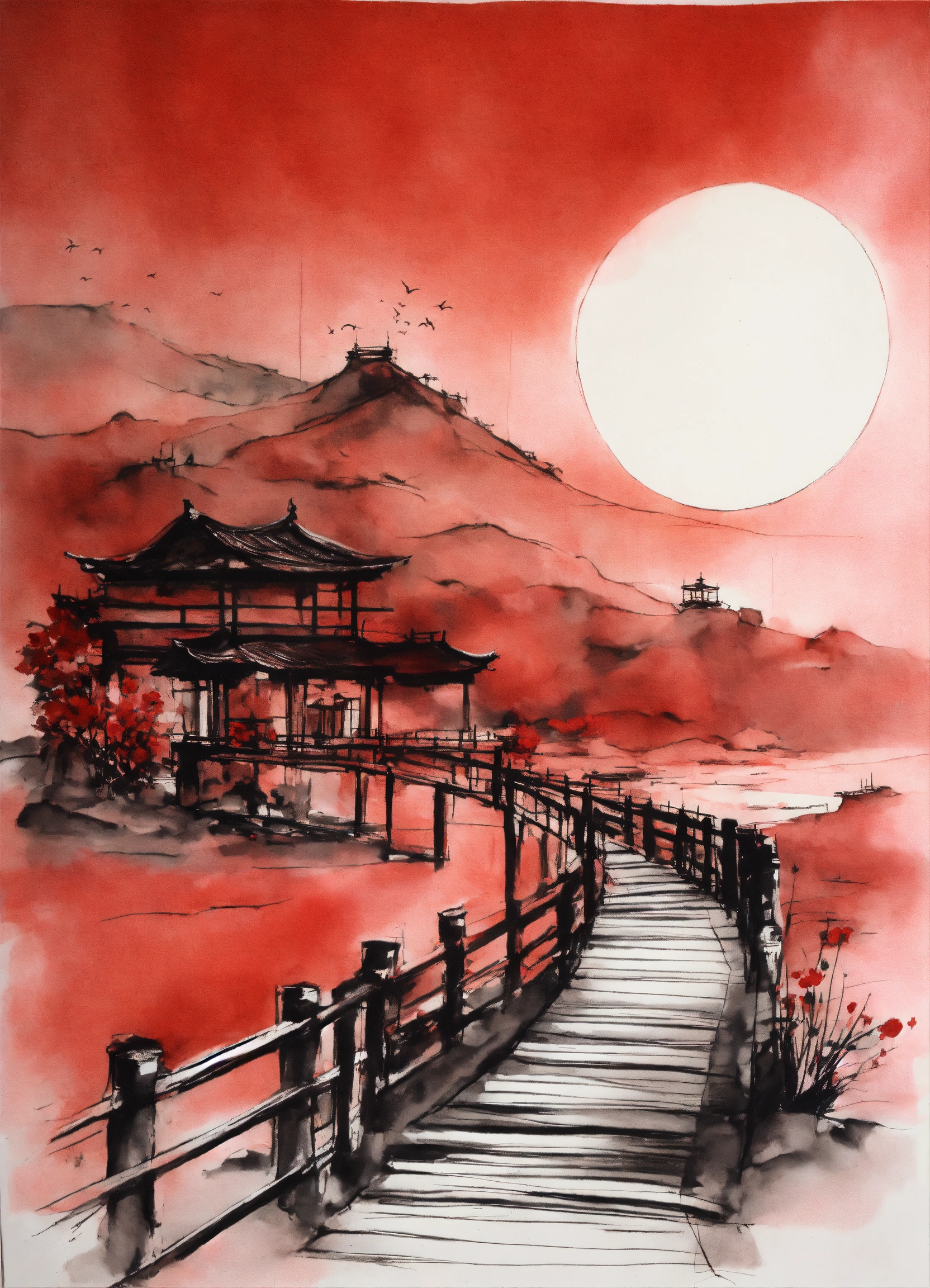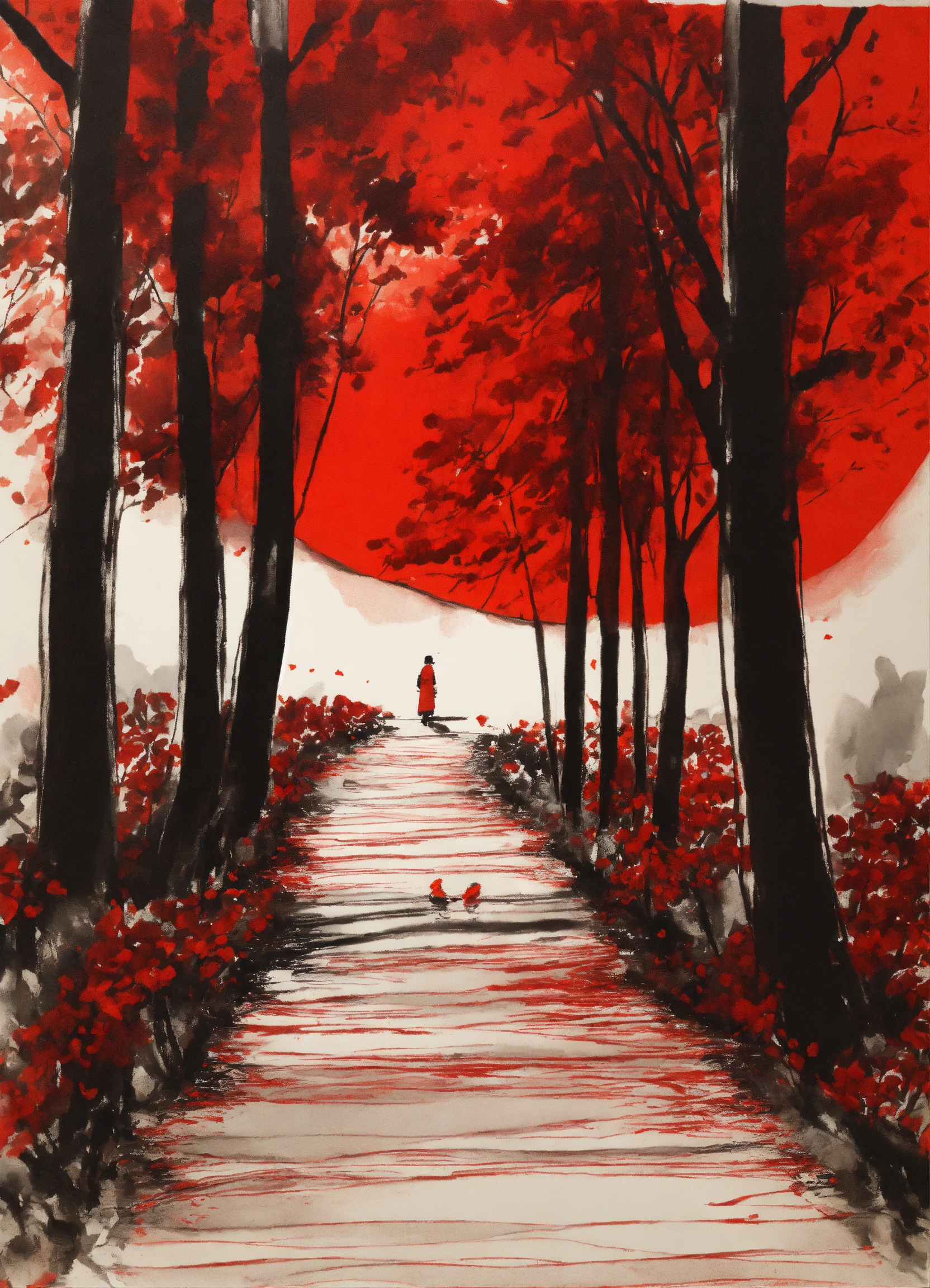 Tinta negra y roja, dos caminos en estilo chino, arte en tinta de mschiffer, boceto caprichoso y aproximado, (boceto1.3)