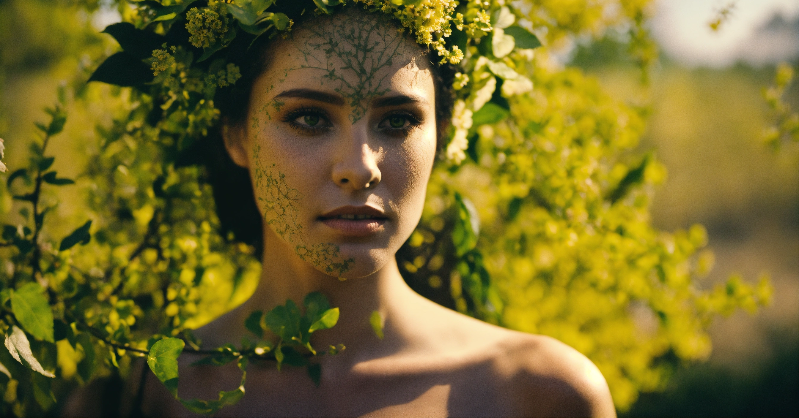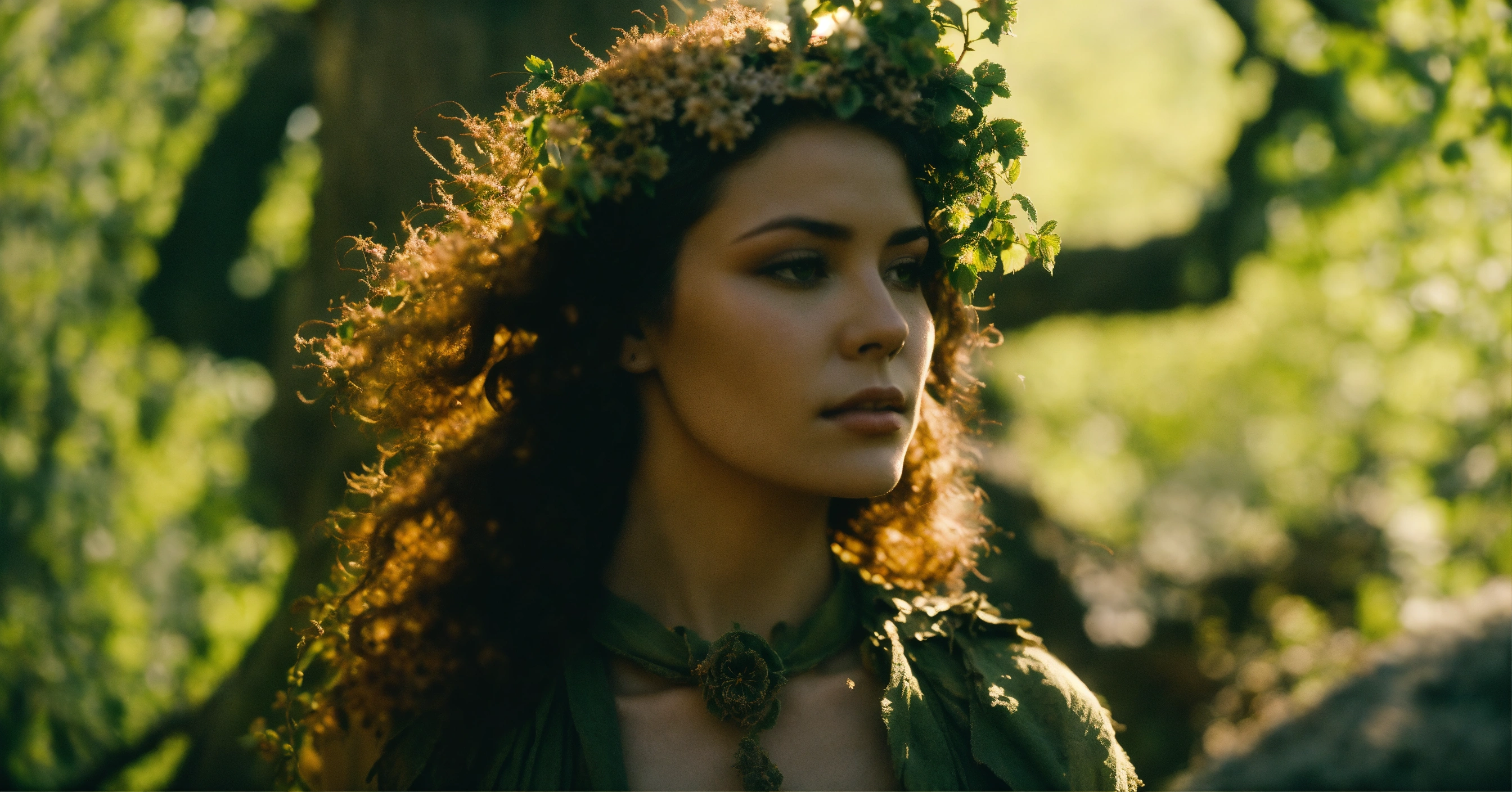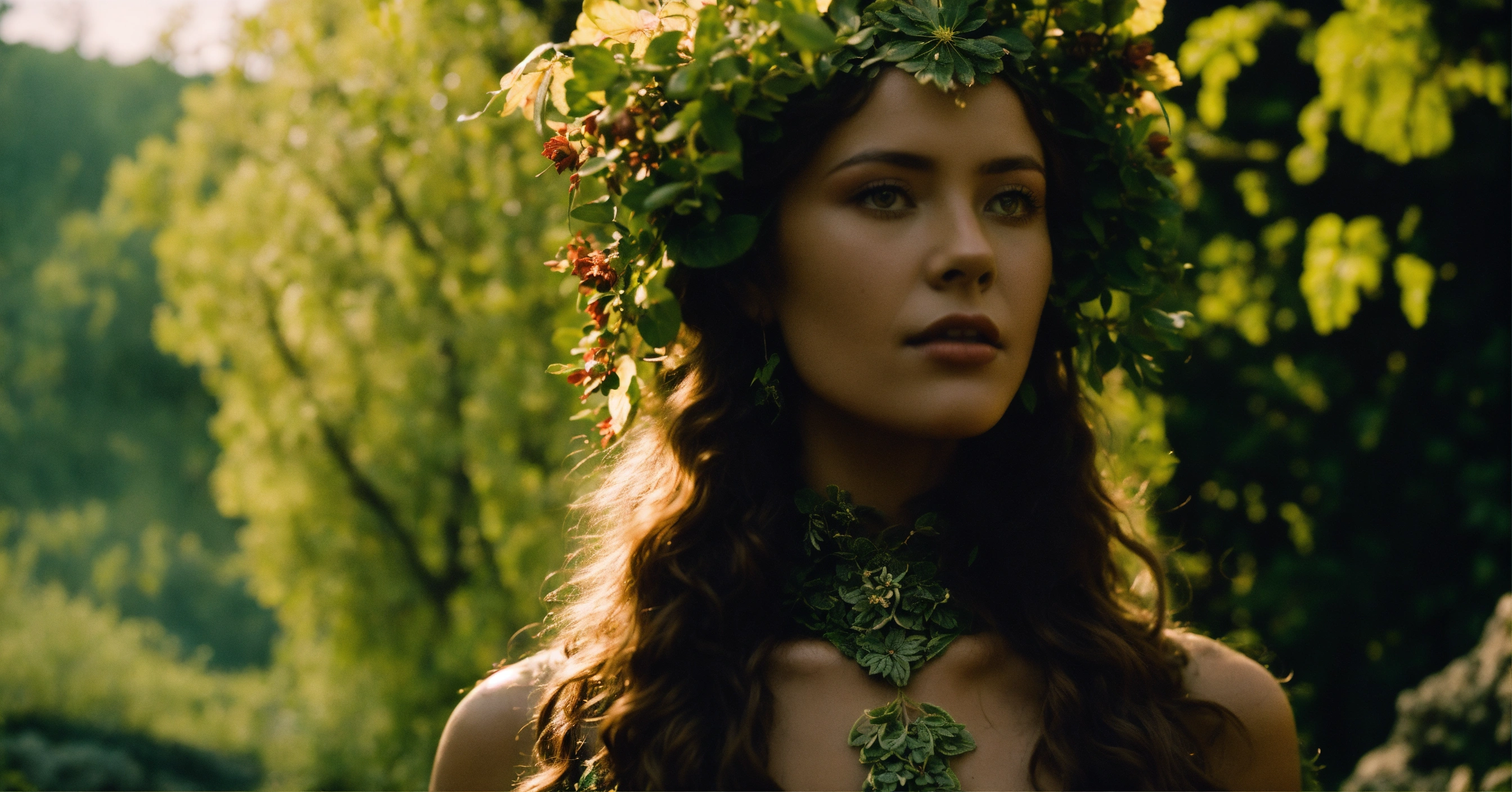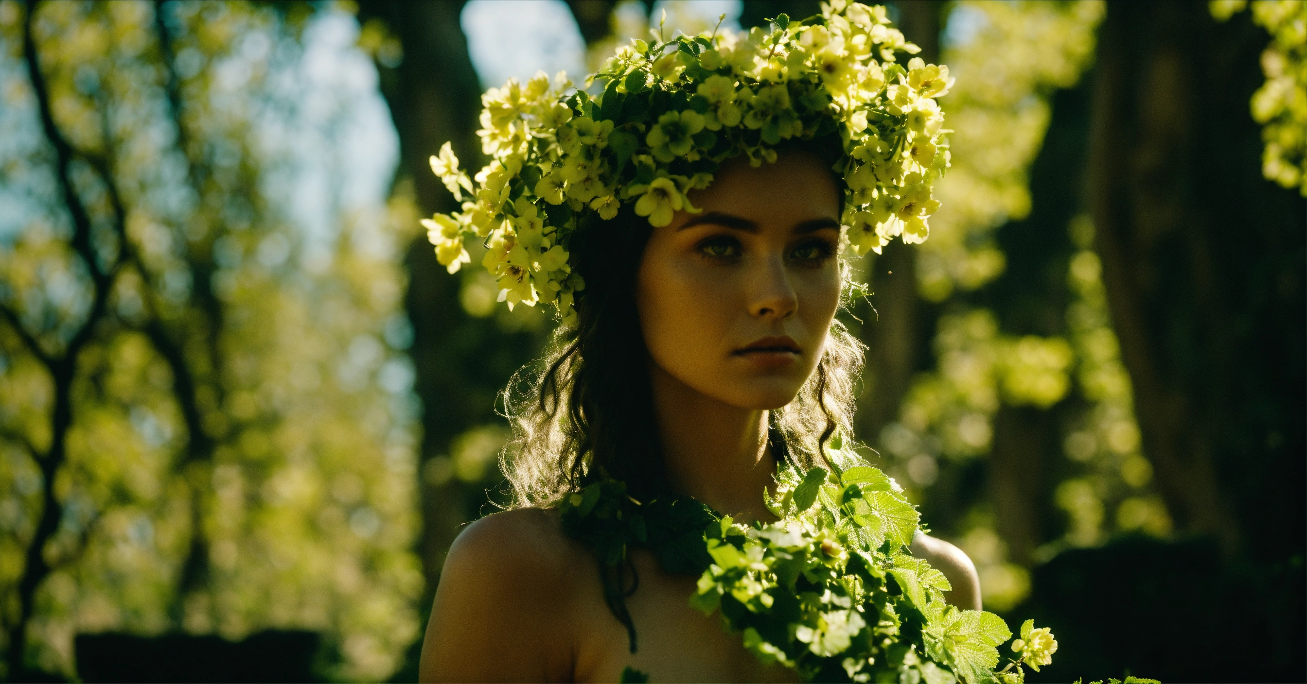 A beautiful flower dryad growing from ash in an ancient city, 35mm cinematic film still. svema color 125 film. 'muted naturals' coloring. 'high contrast' shadow casting. ominous mood.