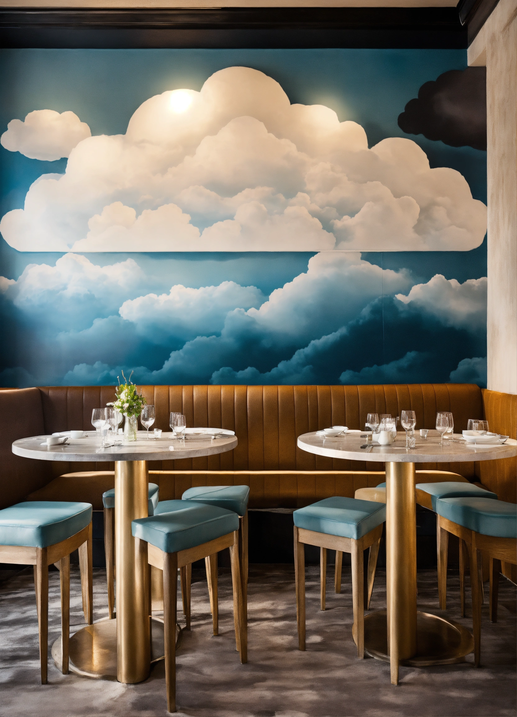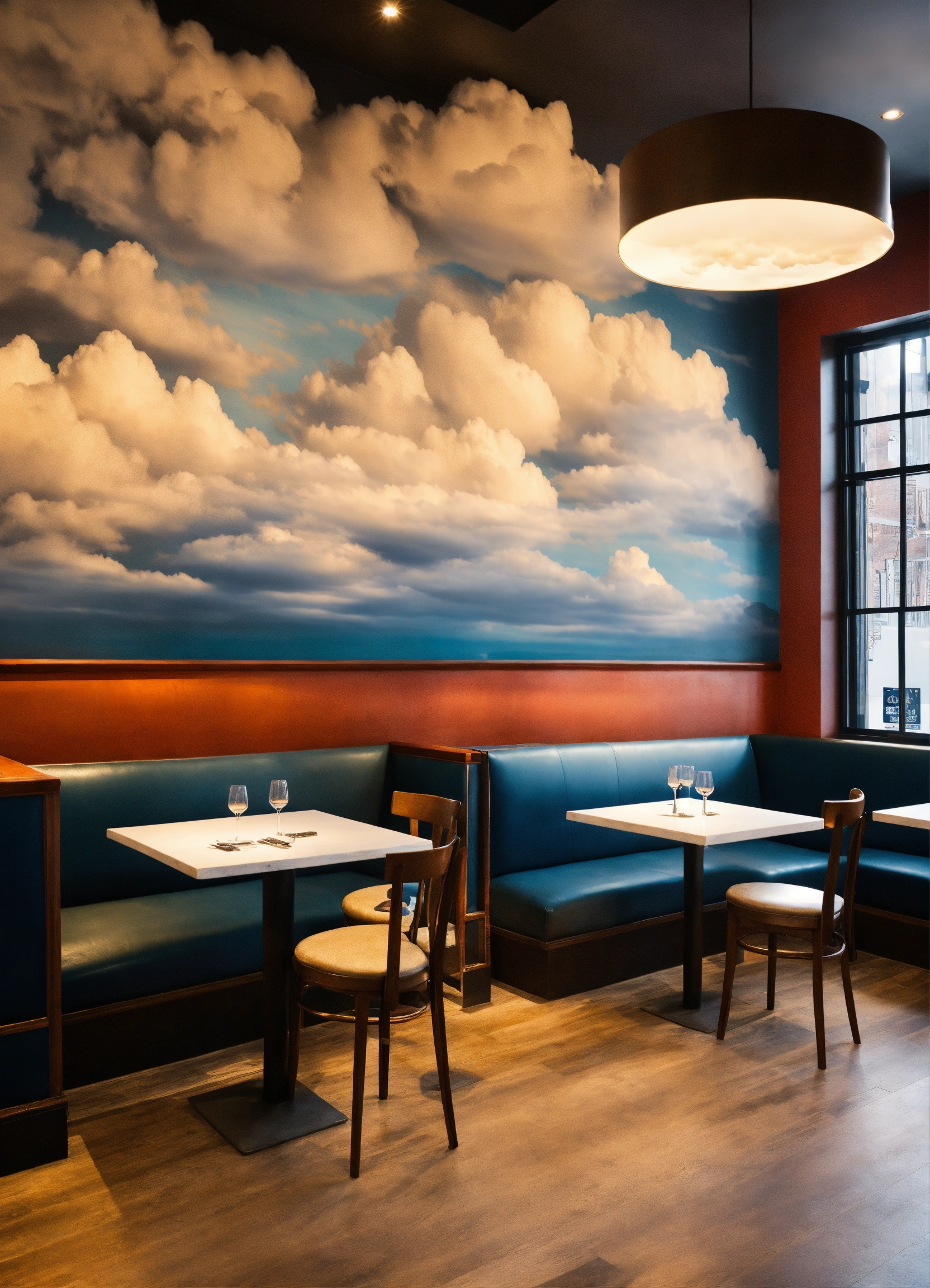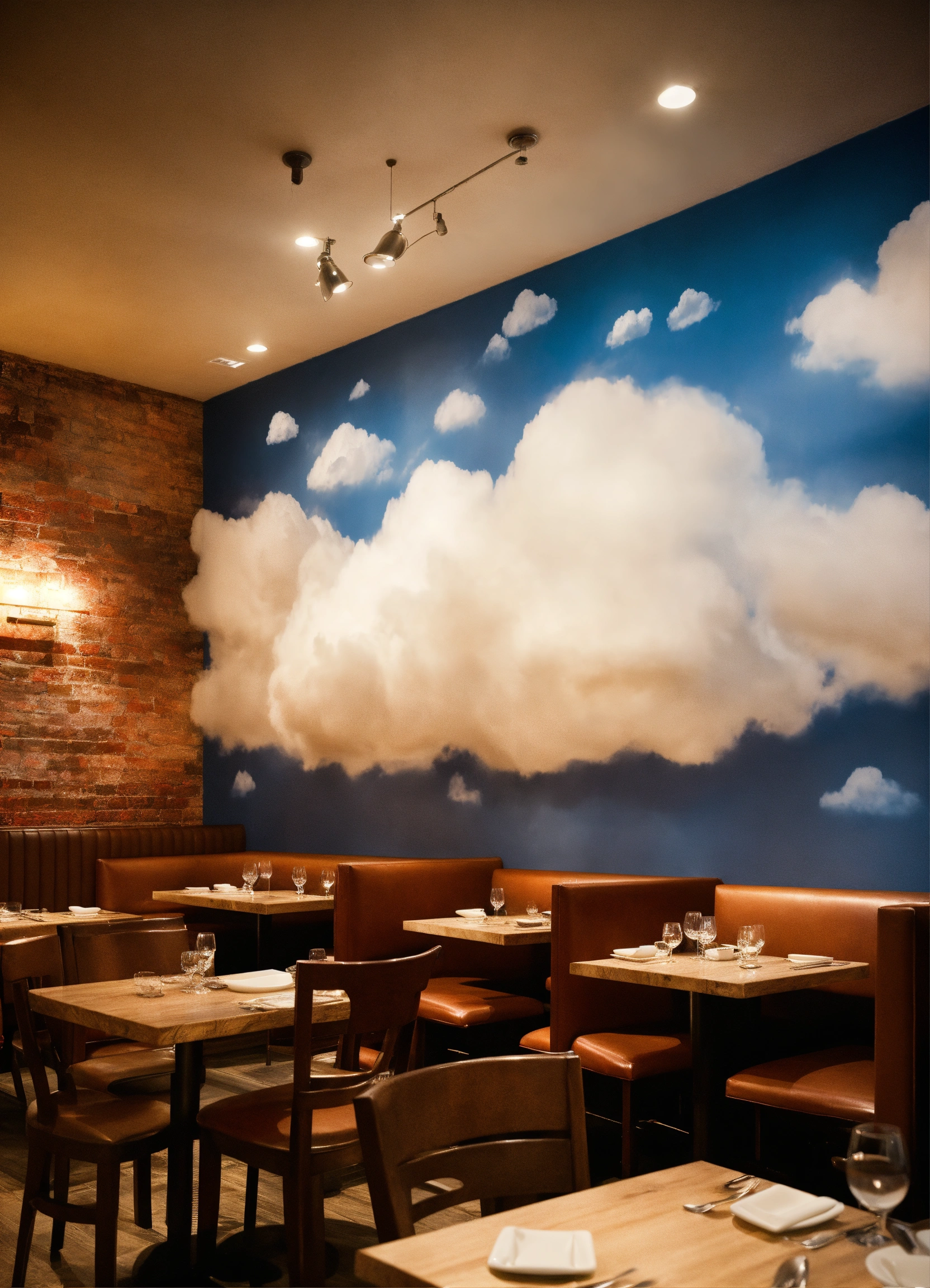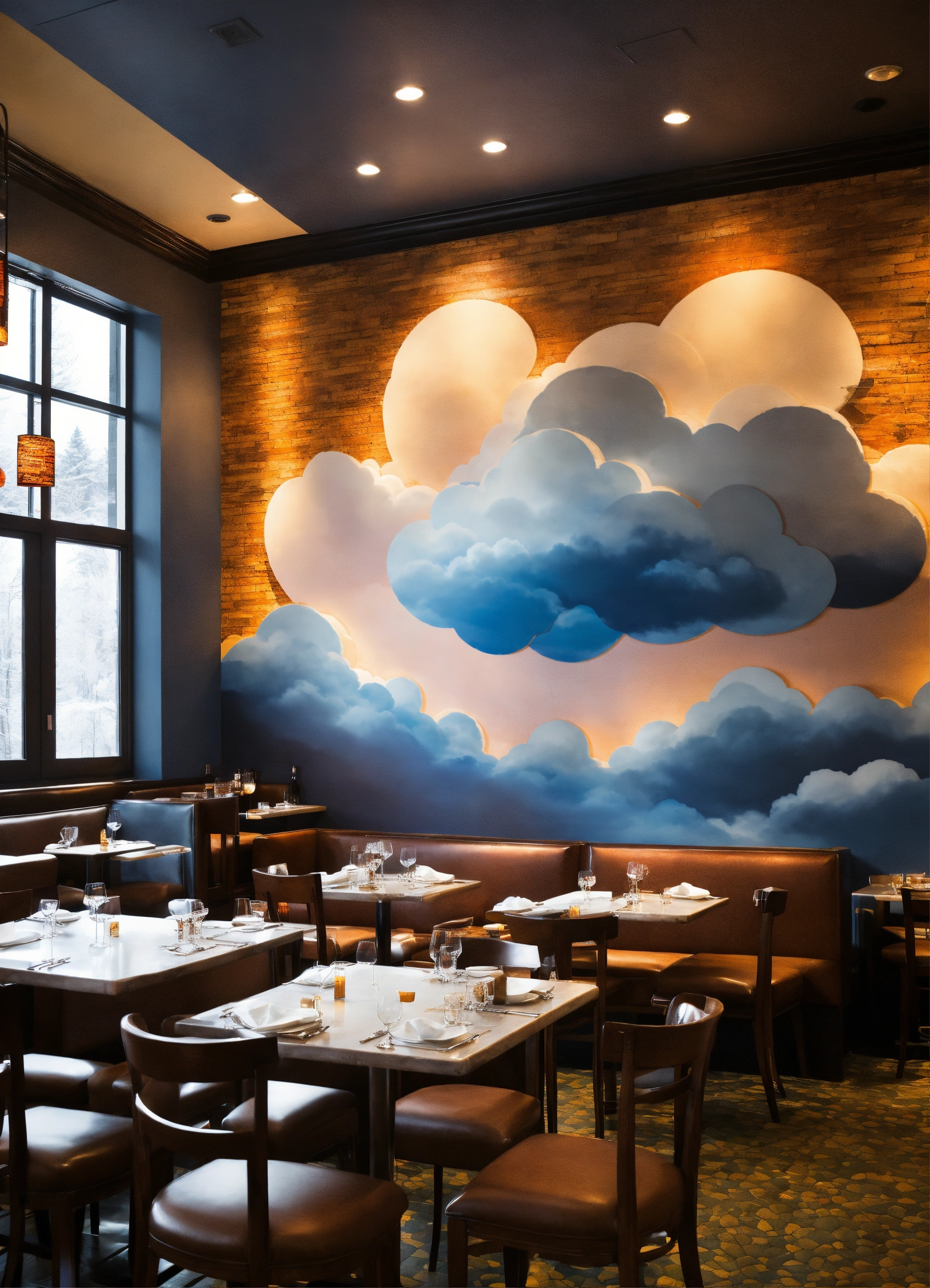Cloud wall art incorporate cloud-themed wall art or murals to tie in with the restaurant's name and emphasize the snowy, cloud-like atmosphere.
