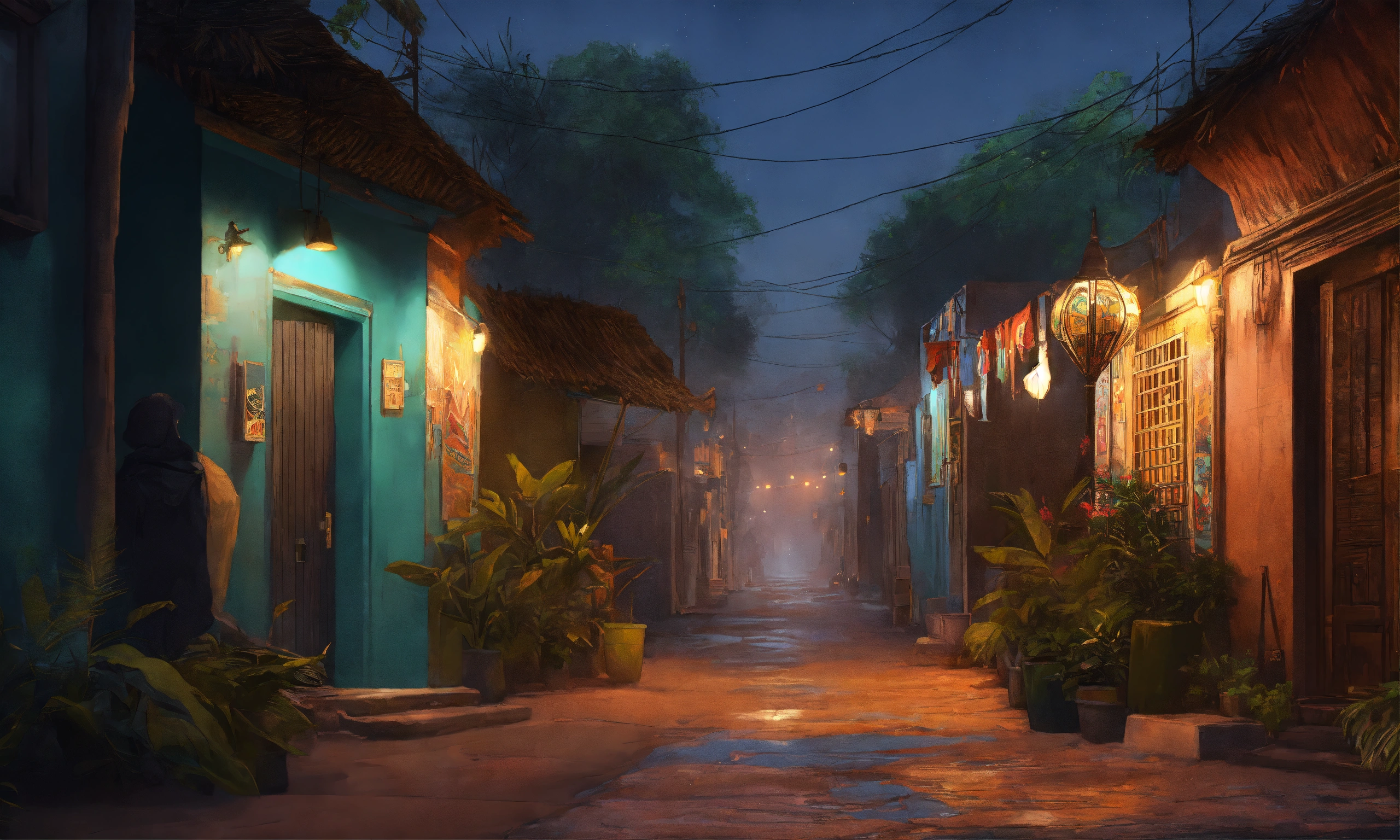 African village dark empty alley ways, at nights, highly detailed, smooth, pixar style by tristan eaton stanley artgerm and tom bagshaw, 8k