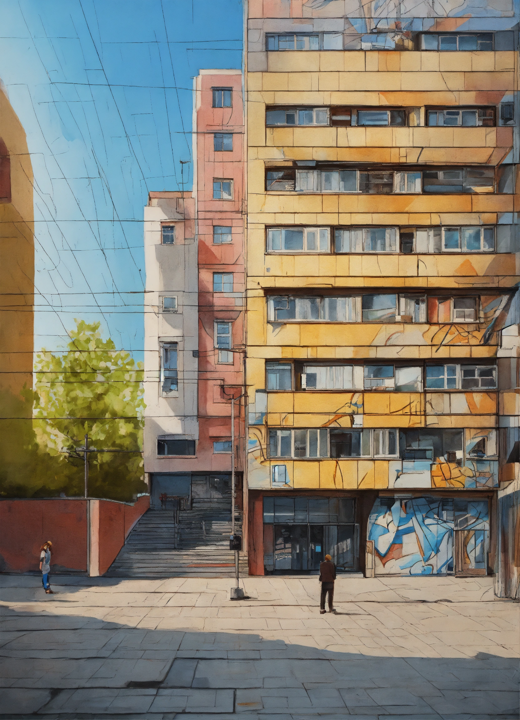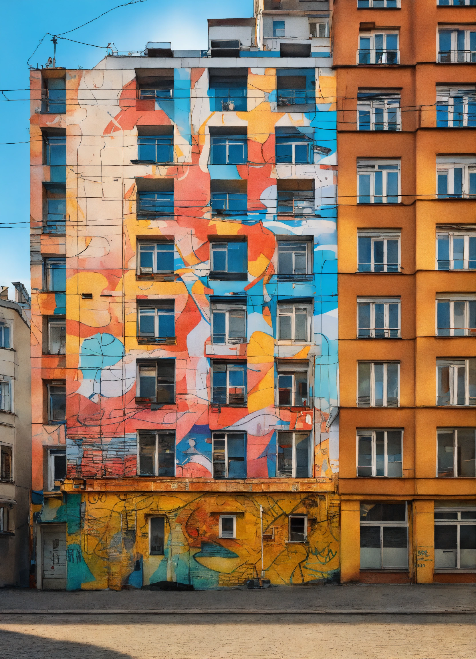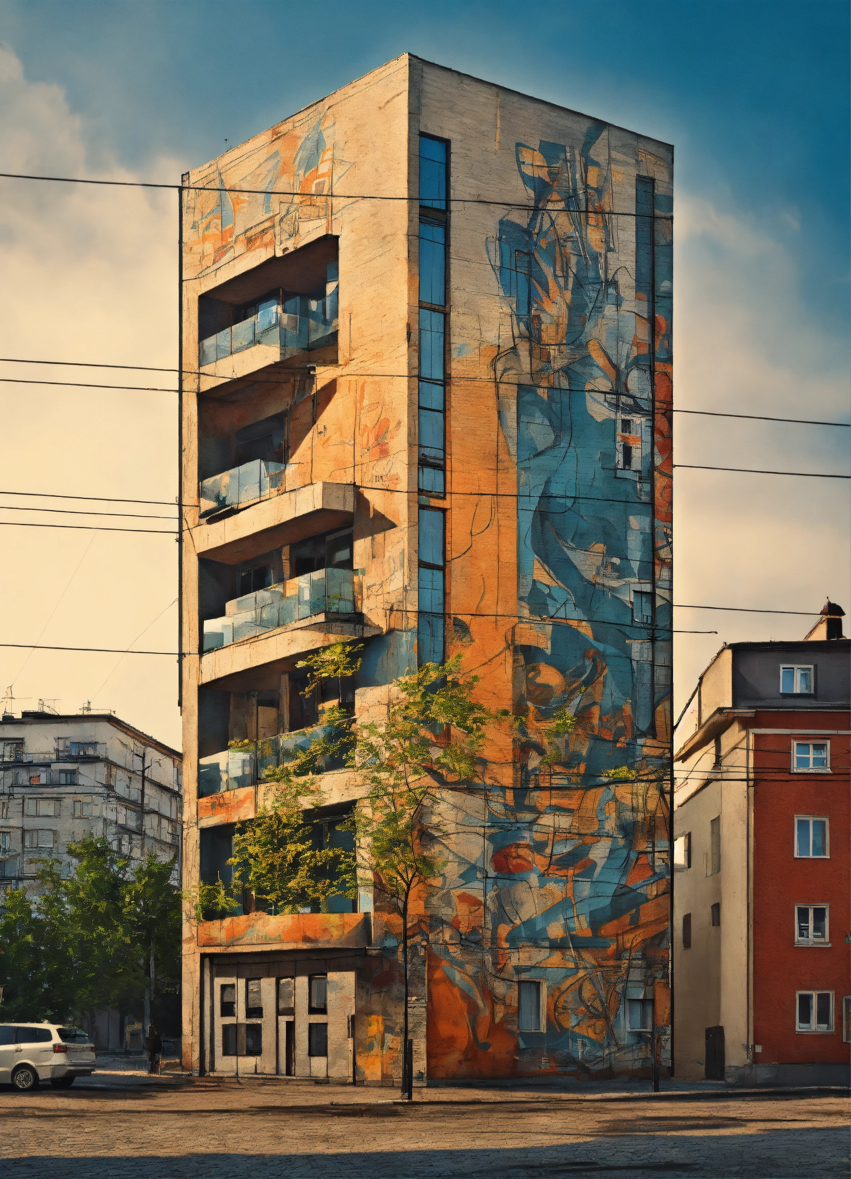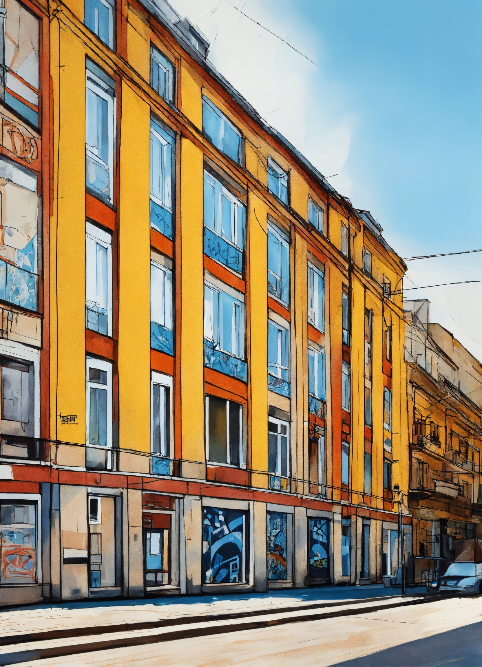 Draw flat texture of modern building of belgrade with graffity ortho projection