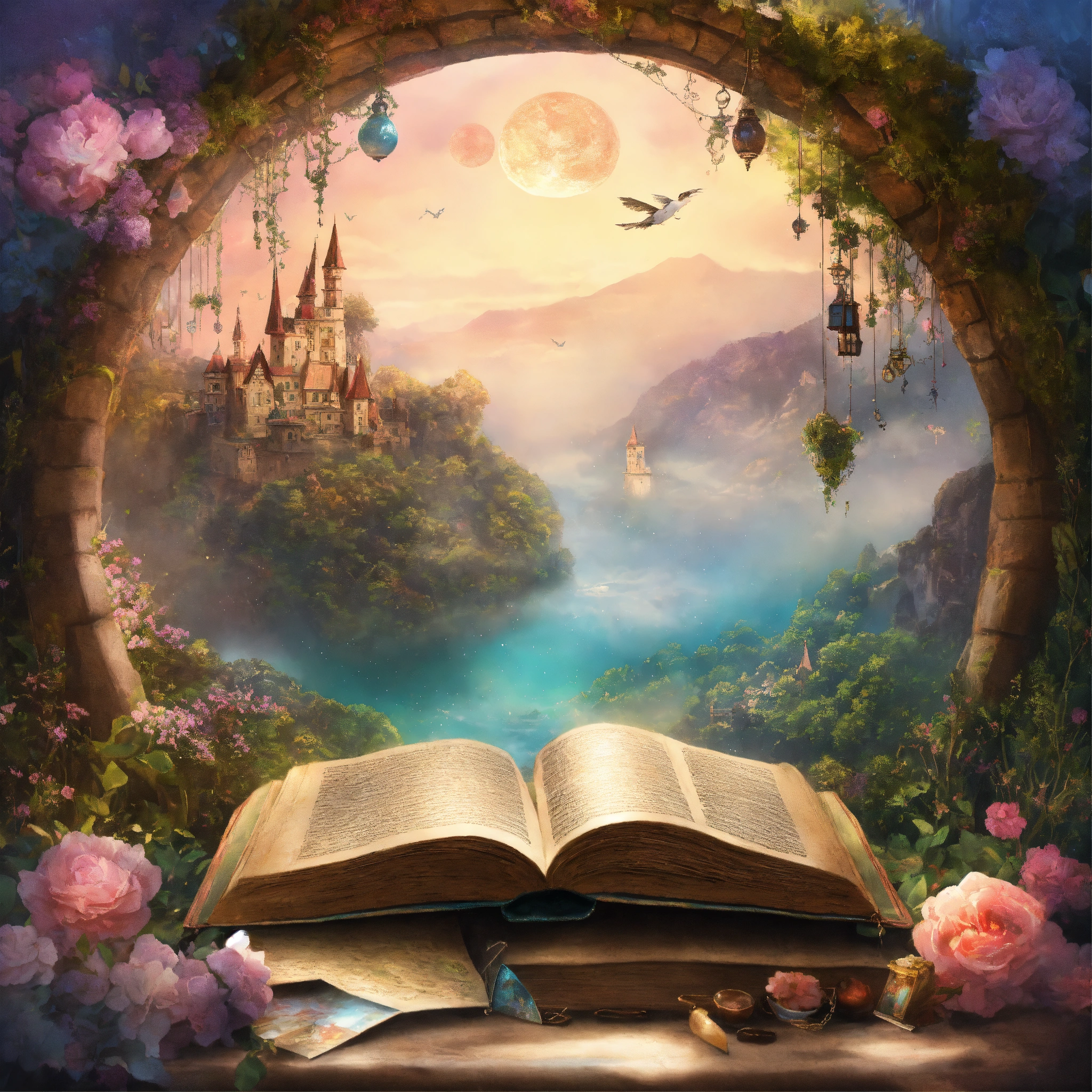 Shabby chic dreamy mist pastel junk journals imagine a world where stories come to life and every book is a portal to a fantastical adventure. in this universe, a young hero embarks on a quest to save the realm from an encroaching darkness. write a tale in which the ancient book reveals prophecies and riddles that guide the hero's quest. they must decipher these clues and embark on a series of quests to retrieve lost chapters of the world's foundational story. explore the hero's challenges, their growth, and the power of storytelling as they navigate this literary world. describe the breathtaking landscapes, the magical encounters, and the ultimate quest to bring light to a world where stories never truly end. swirling magical fairytale abstract art style