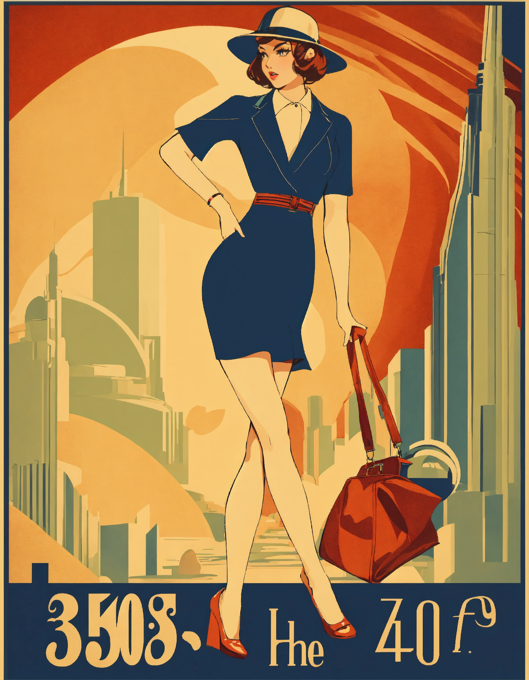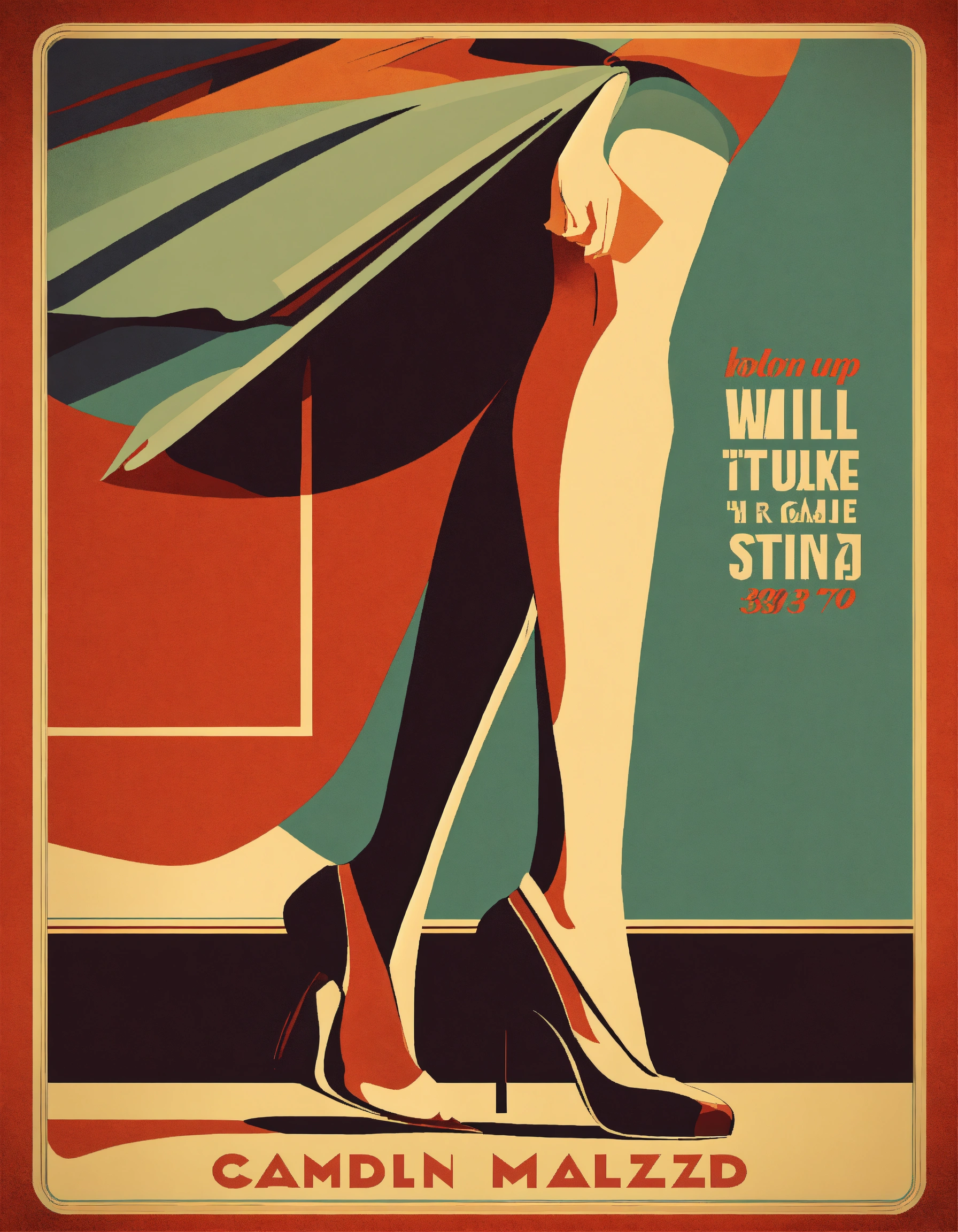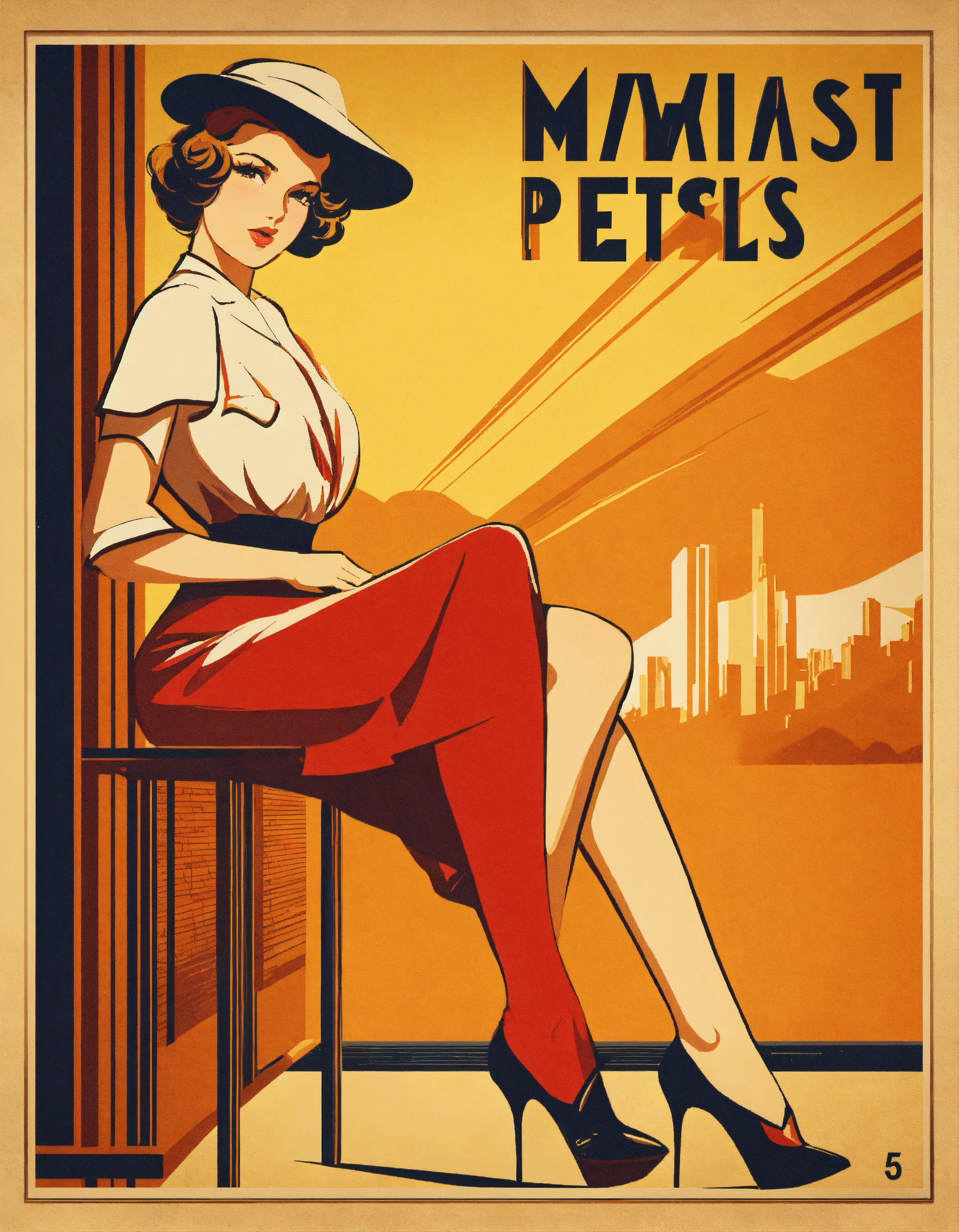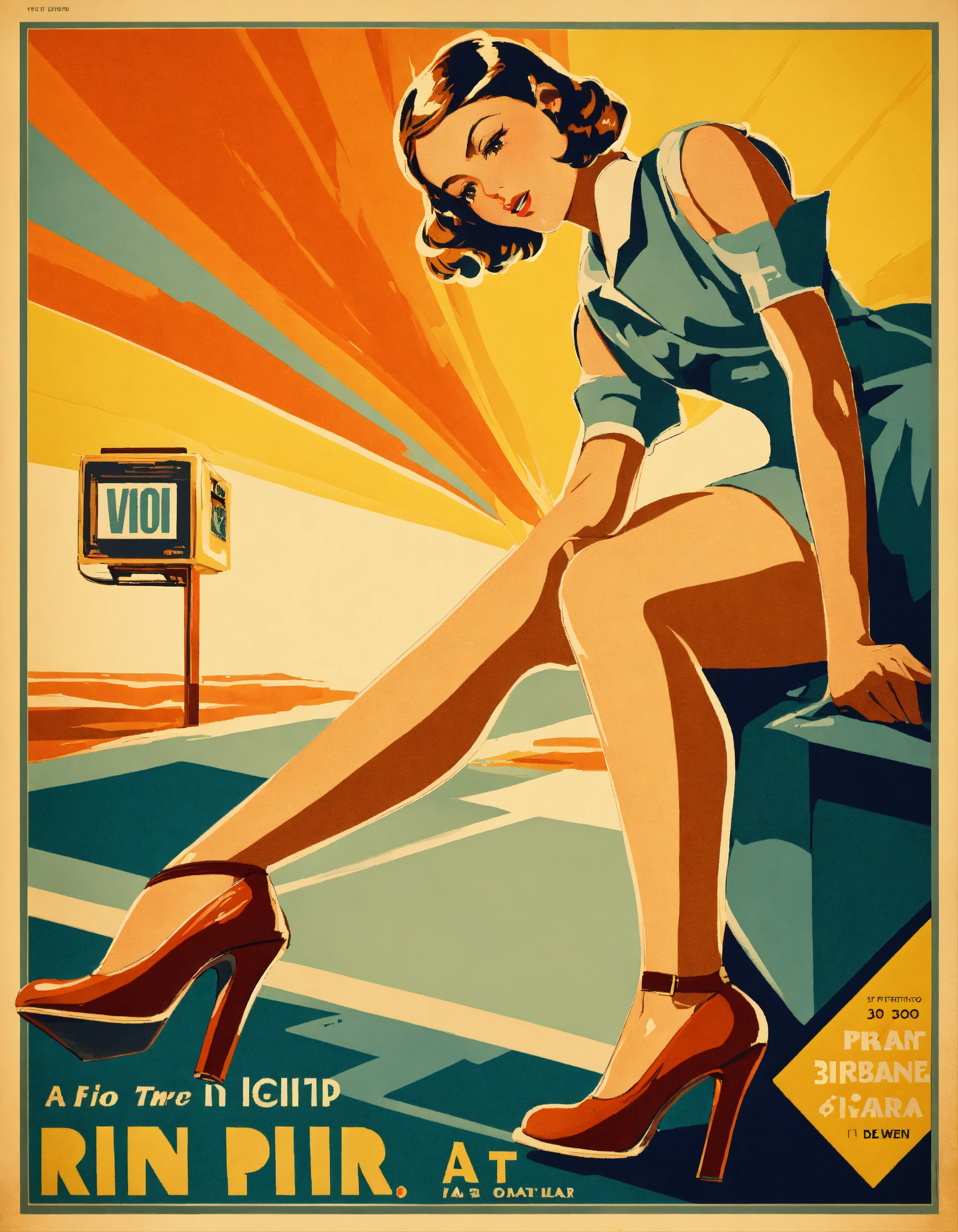 Retro poster with a girl in the style of the 30s, advertising. graphics minimalism рin-up beautiful legs