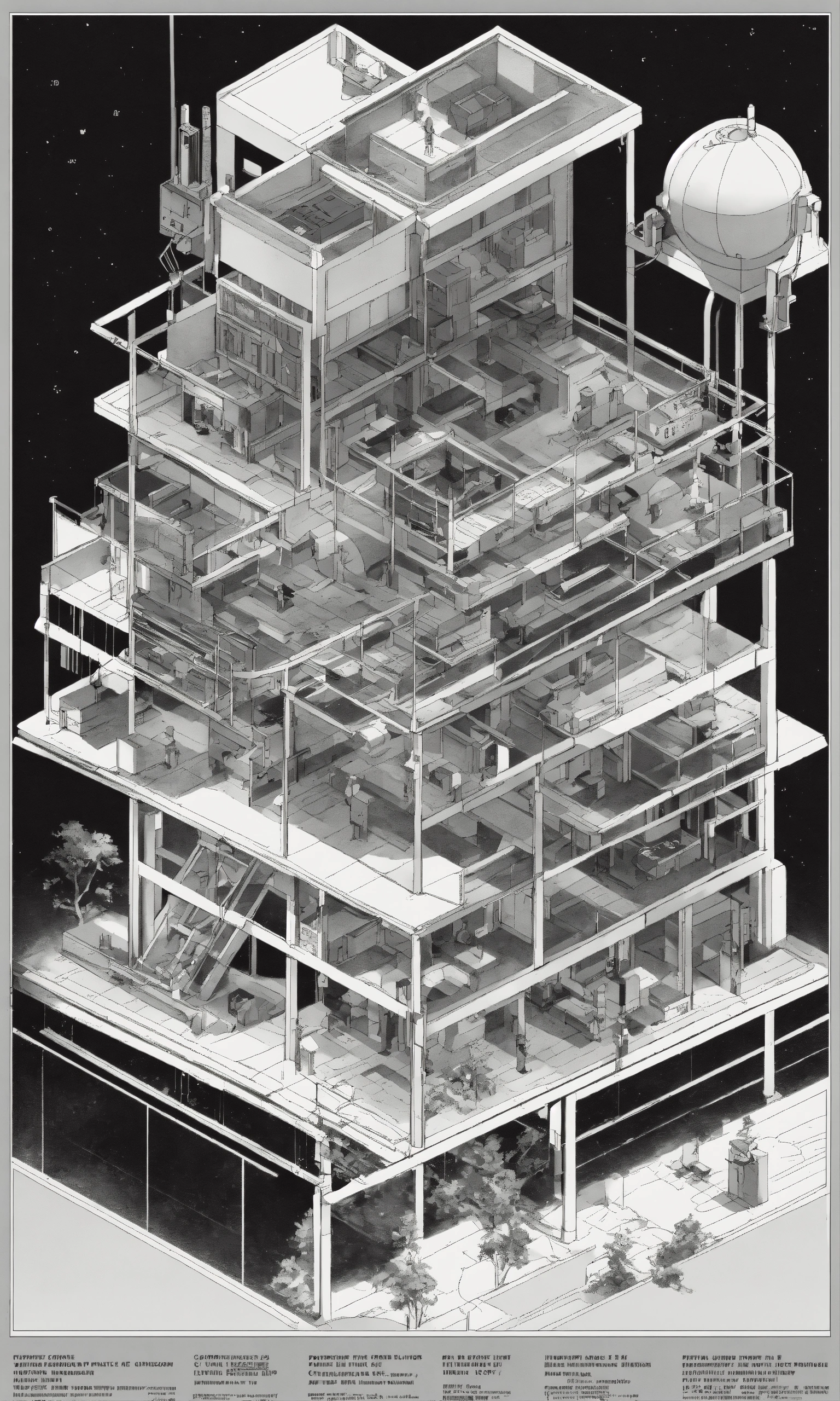 A graphic design poster of the isometric detailed blueprint of a crispr, patent illustration, no text 1 9 9 0, poster design, japan graphic comics manga art illustration, silkscreen risograph, greyscale monochrome, high contrast