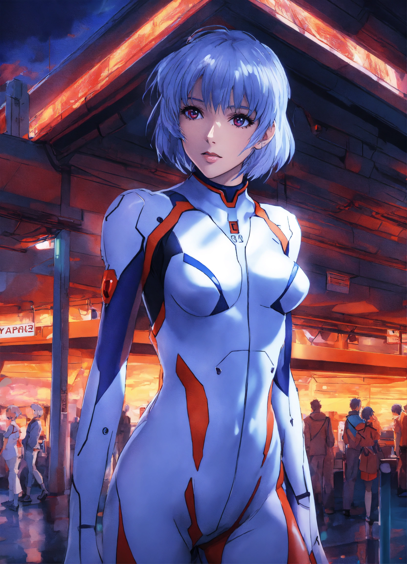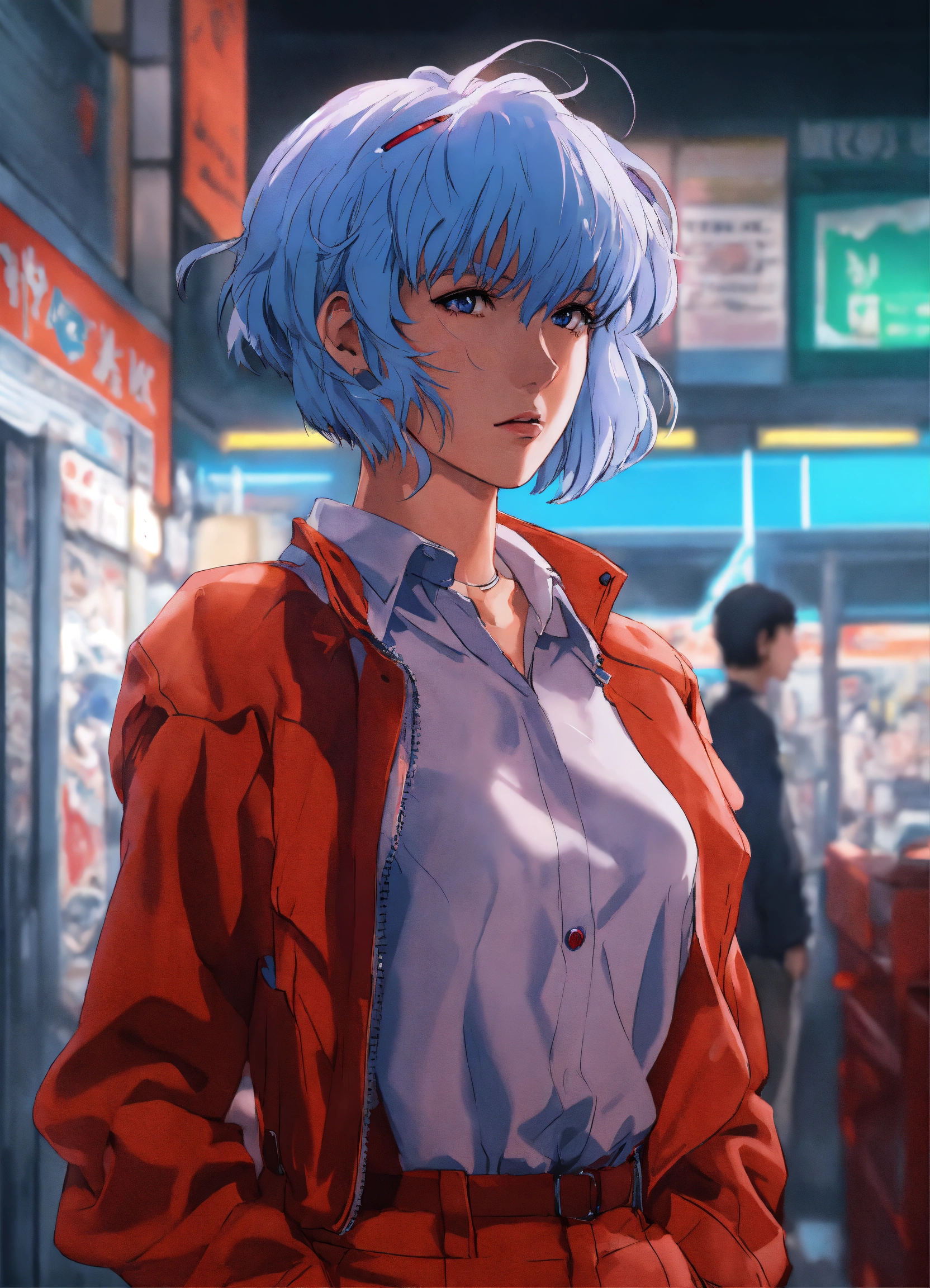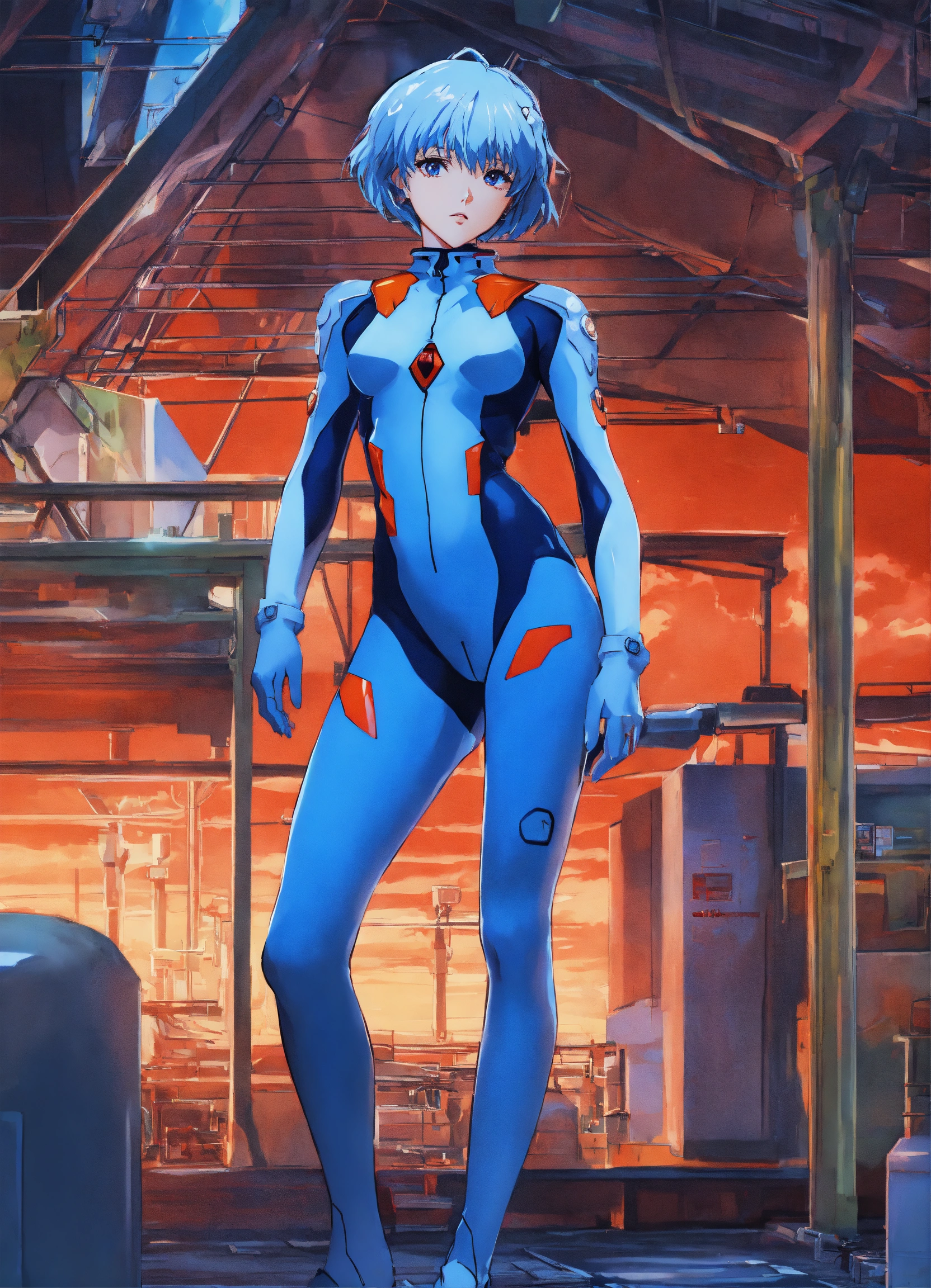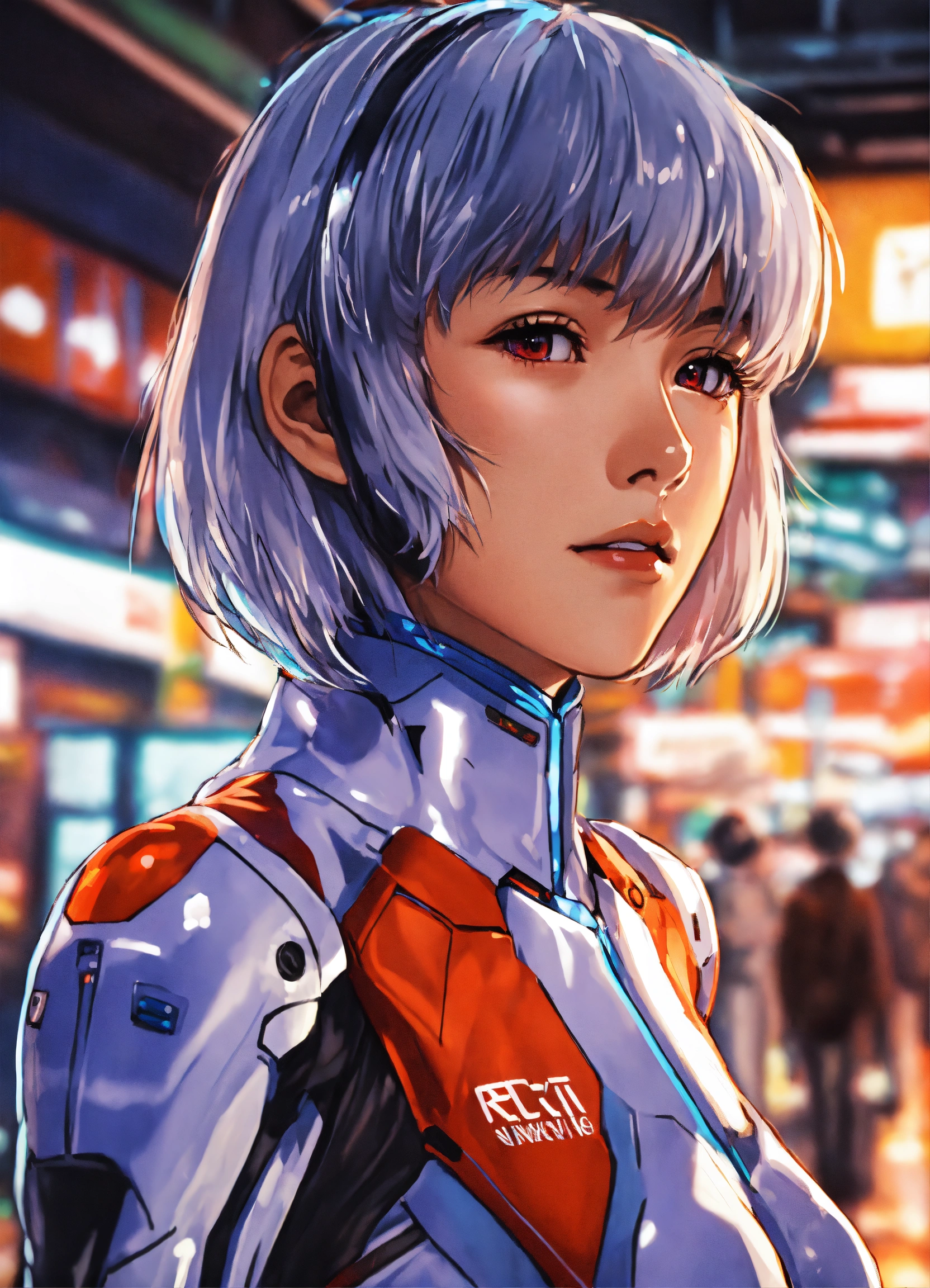 Stunning anime wallpaper illustration of rei ayanami from neon genesis evangelion, detailed scene, stunning details, trending on artstation, ray-traced environment, vintage 90's anime, ray-tracing