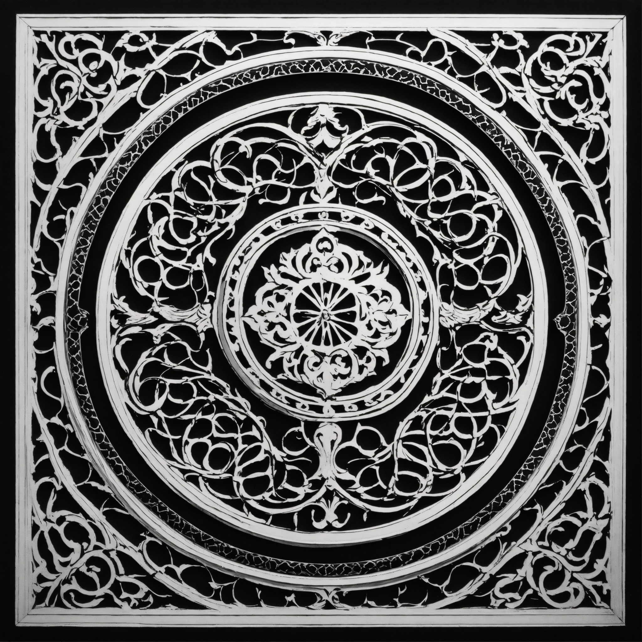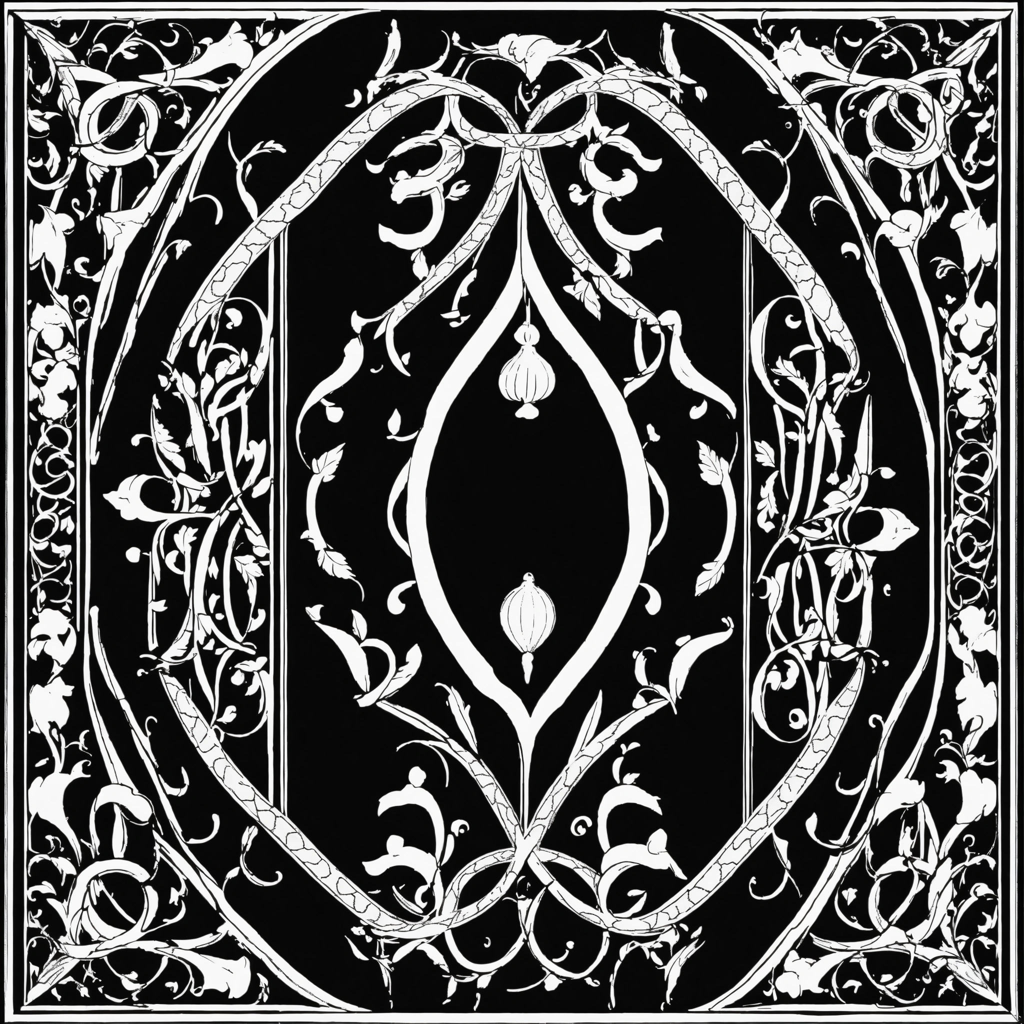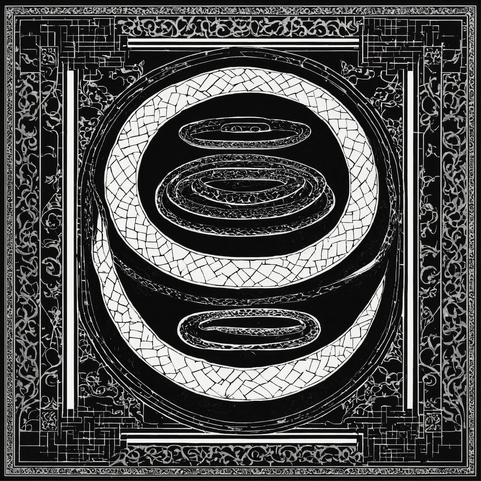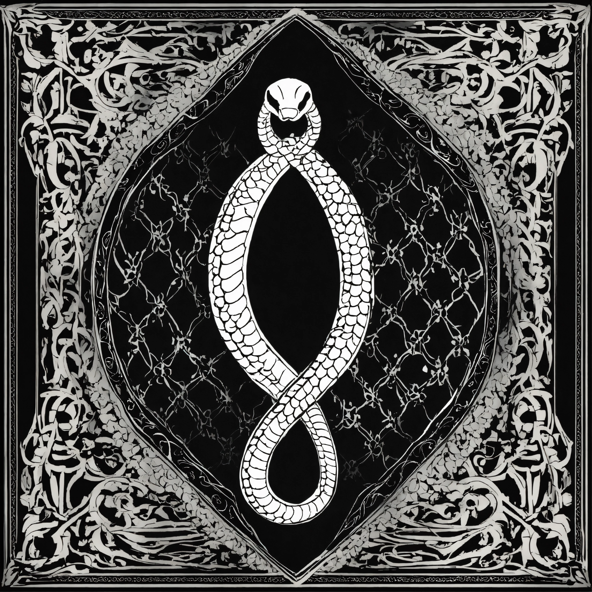 Black and white thin gothic ornament in the form of a straight line in the shape of a snake