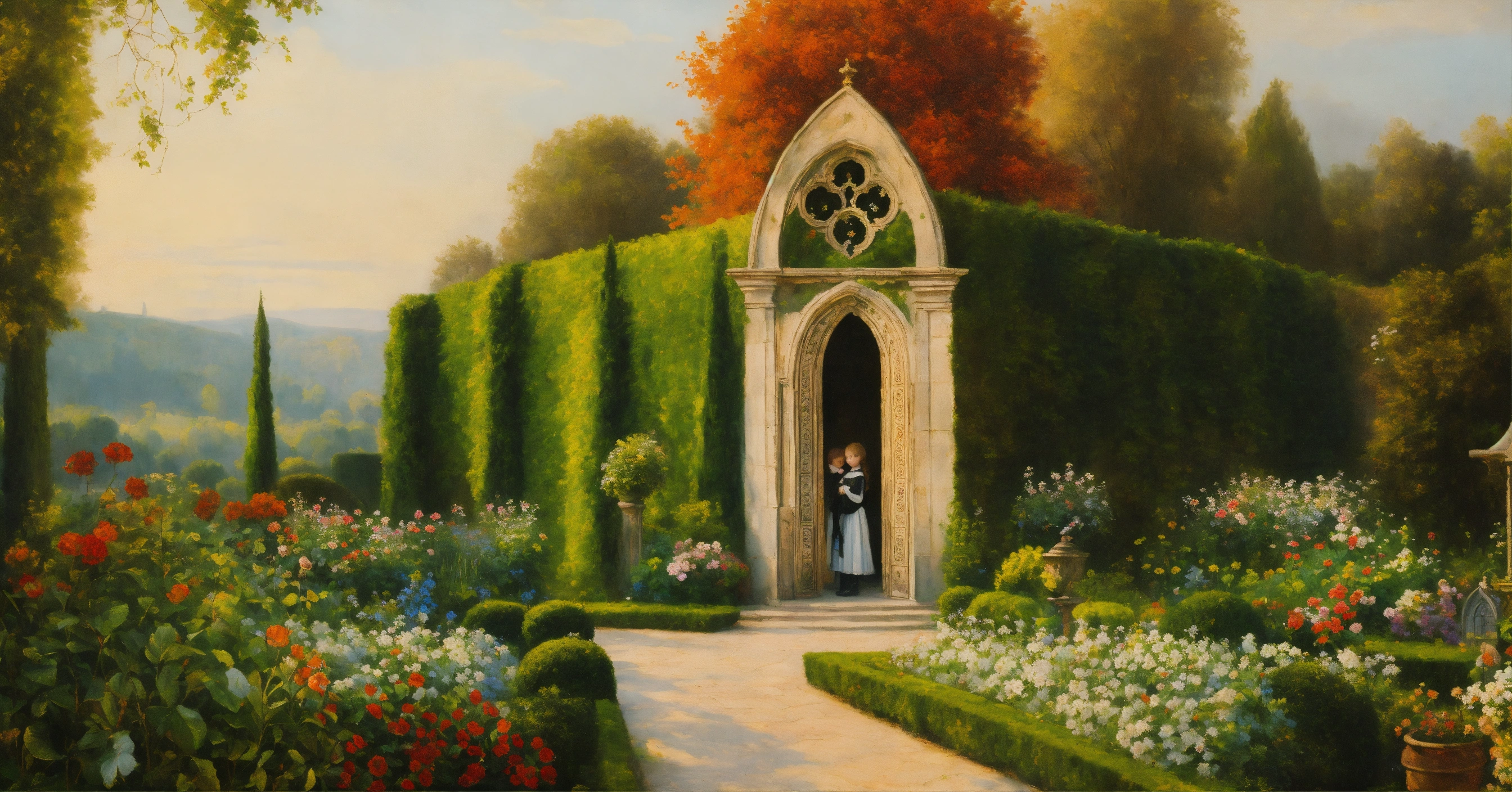 Produce images of gothic painting like picasso of children in beautiful gardens. ensure high resolution, 8k image, realistic.