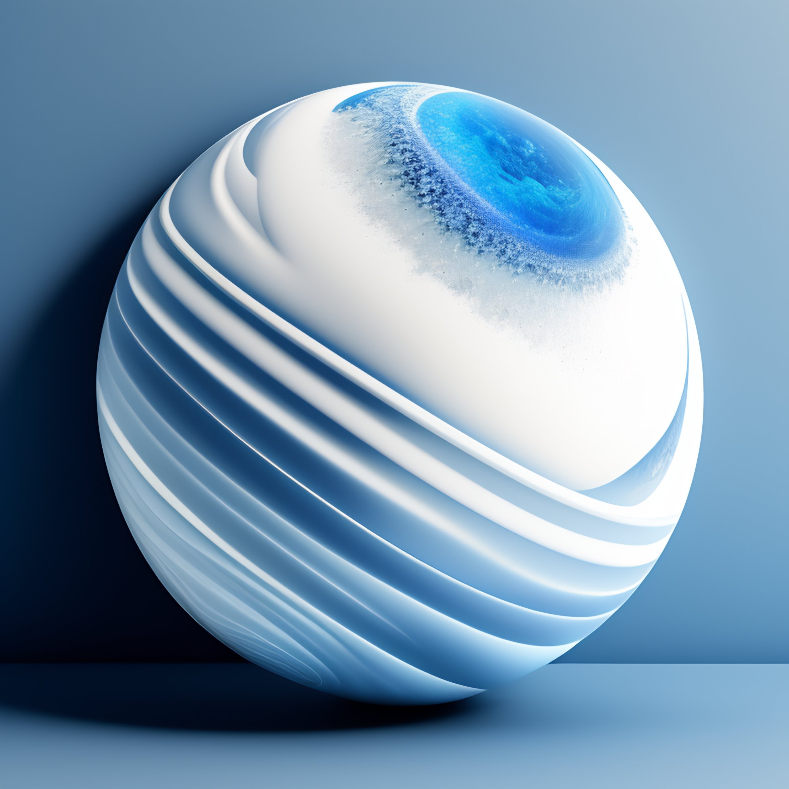 A white and blue contoured sphere