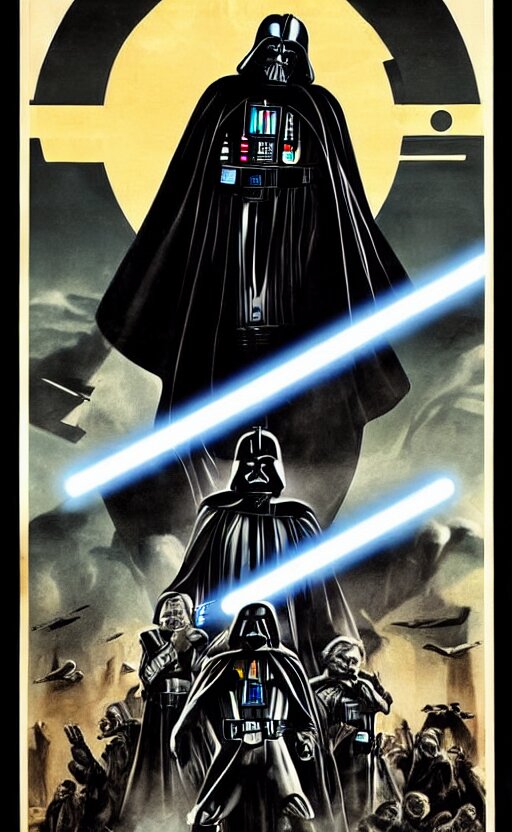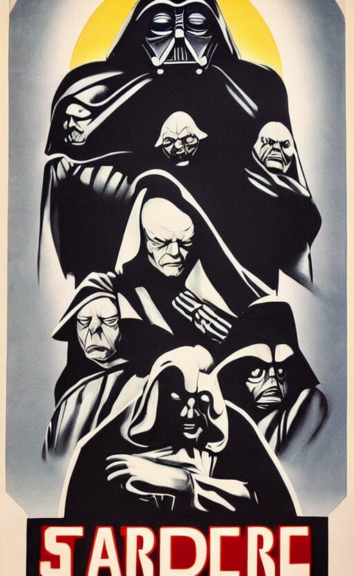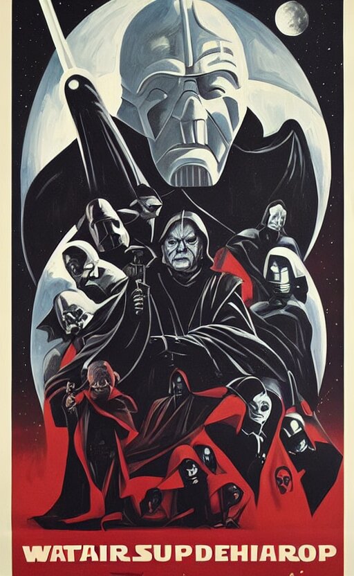 A propaganda poster for the galactic empire in star wars, featuring the emperor palpatine, sidious, as a shadow
