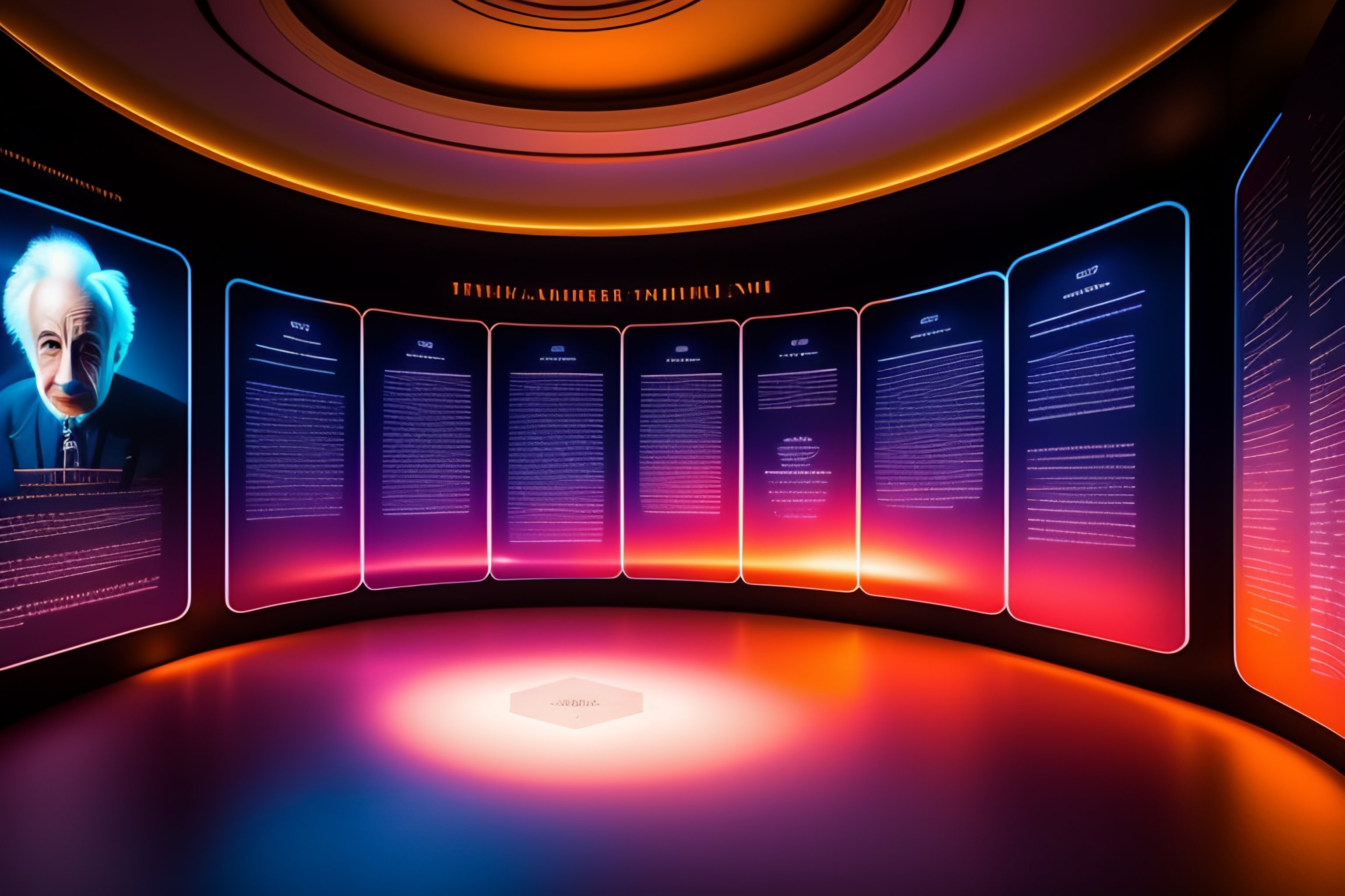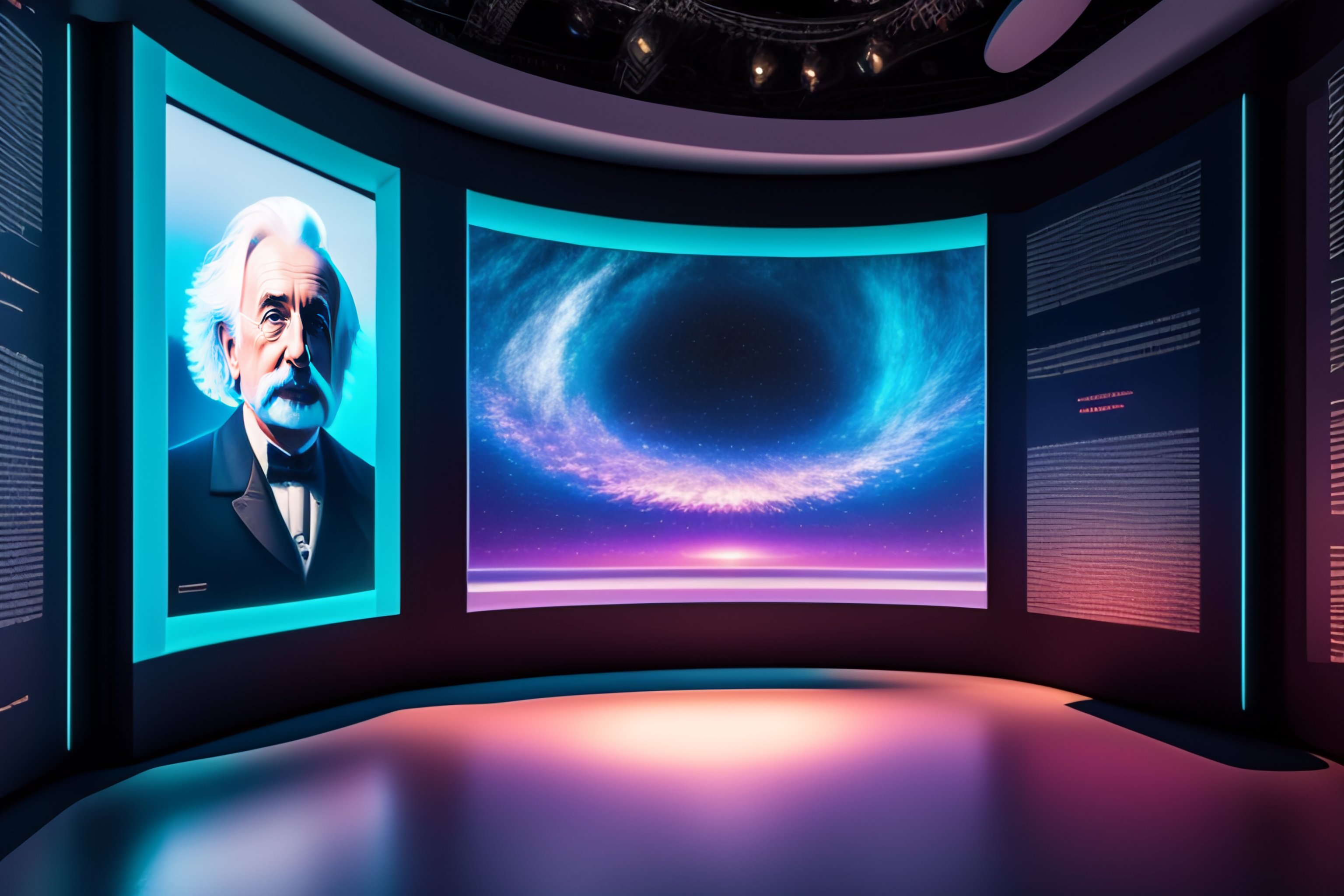 A immersive and high tech holy hall exhibition about planck、einstein and many other great physic scientists in history with cyberpunk mood