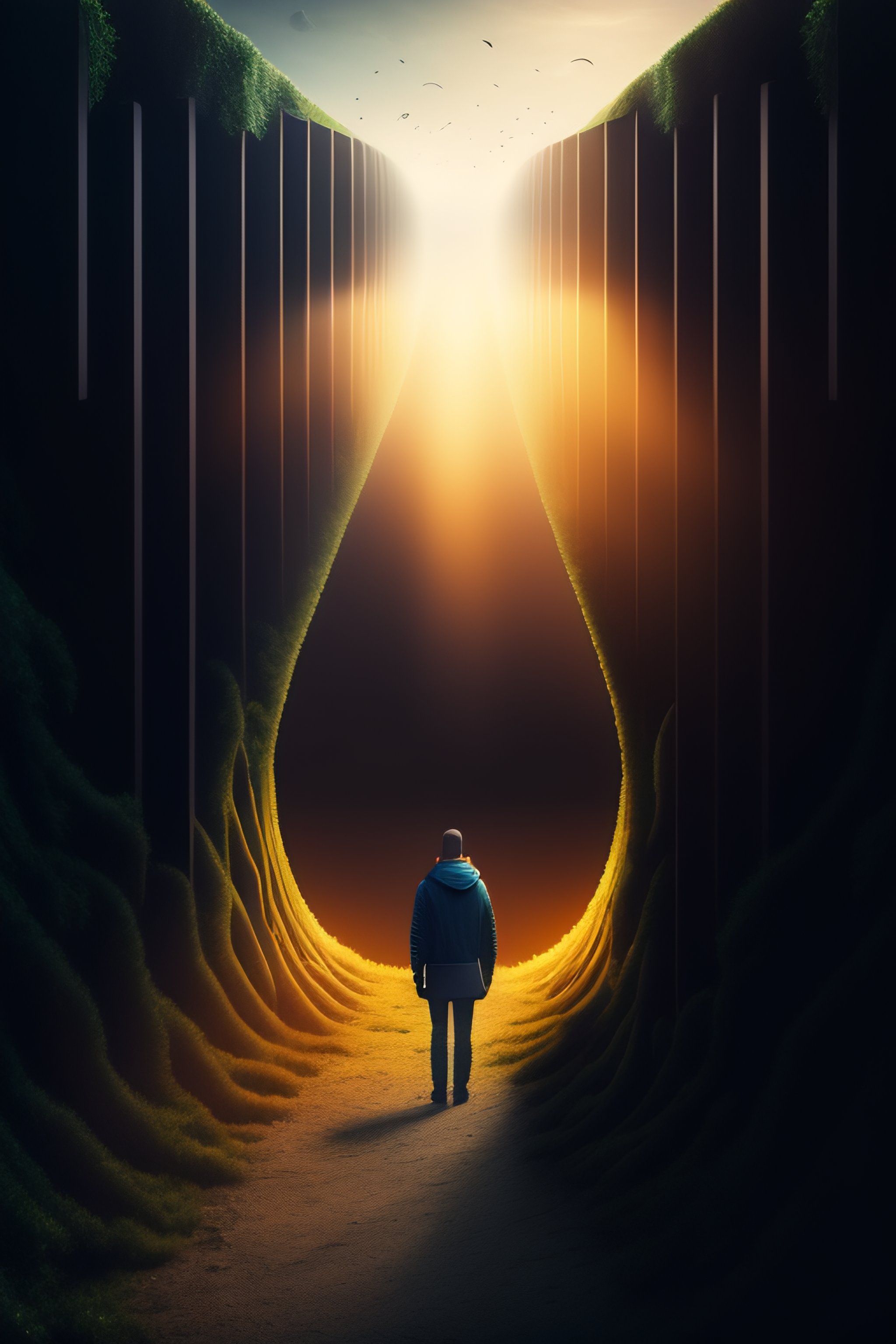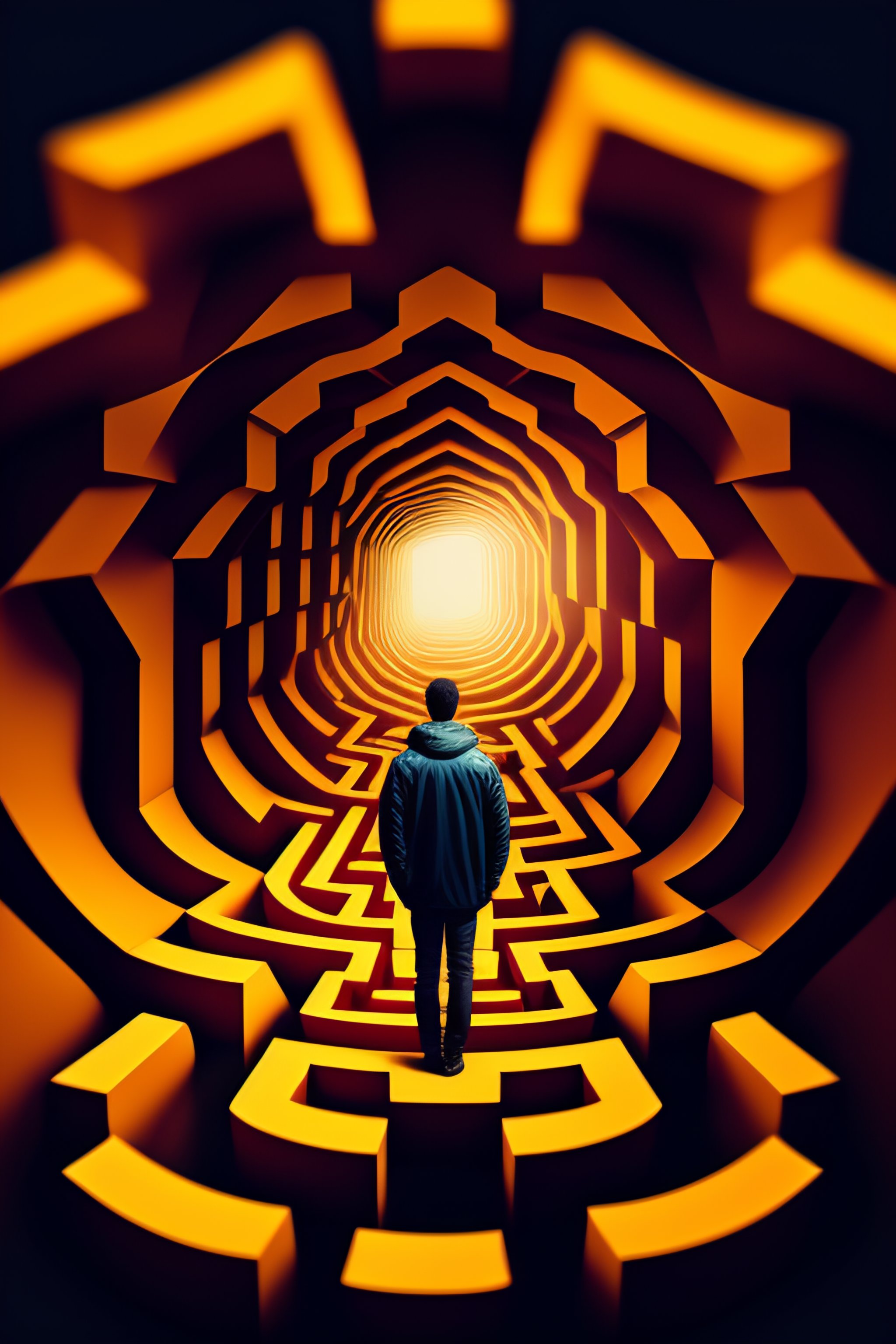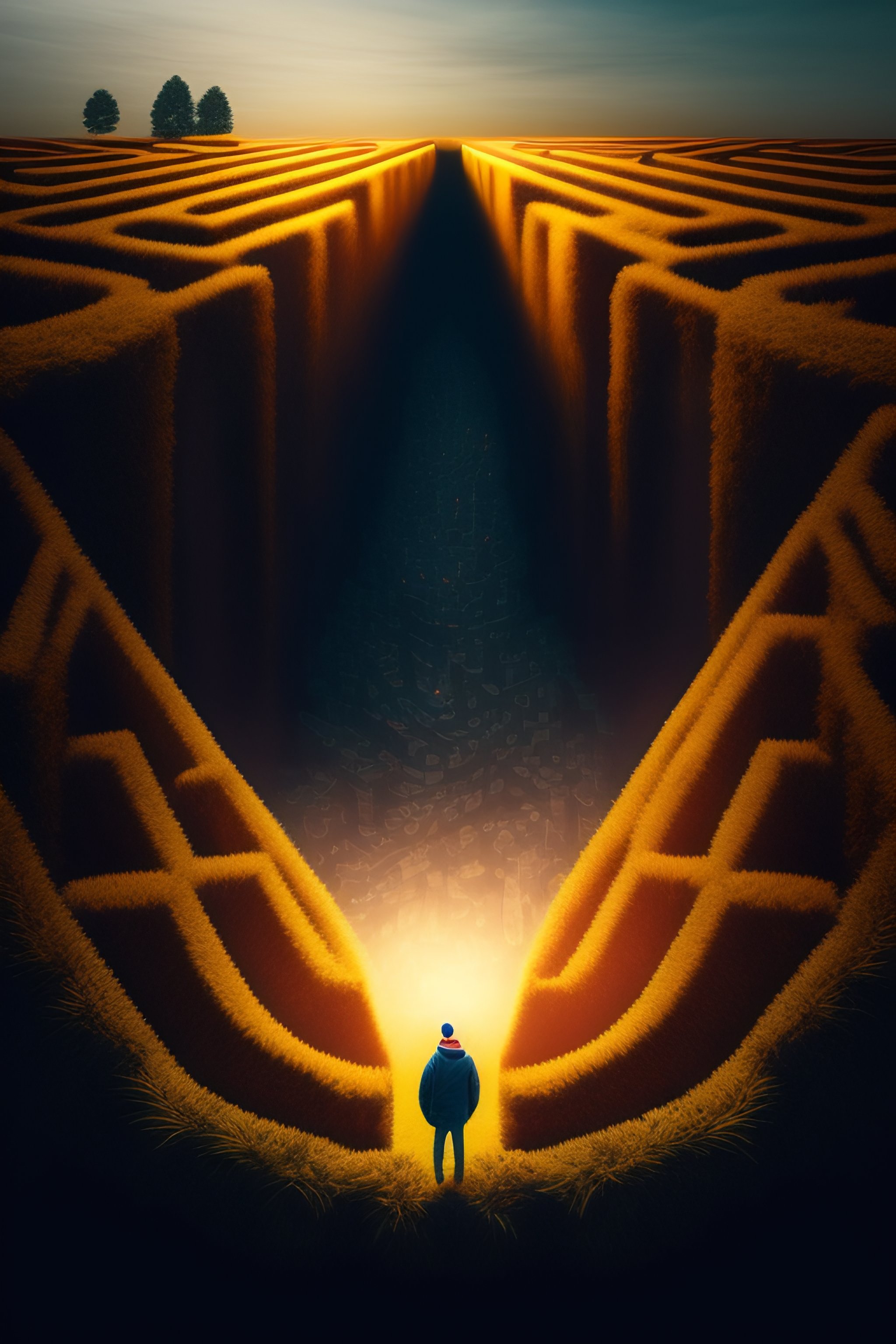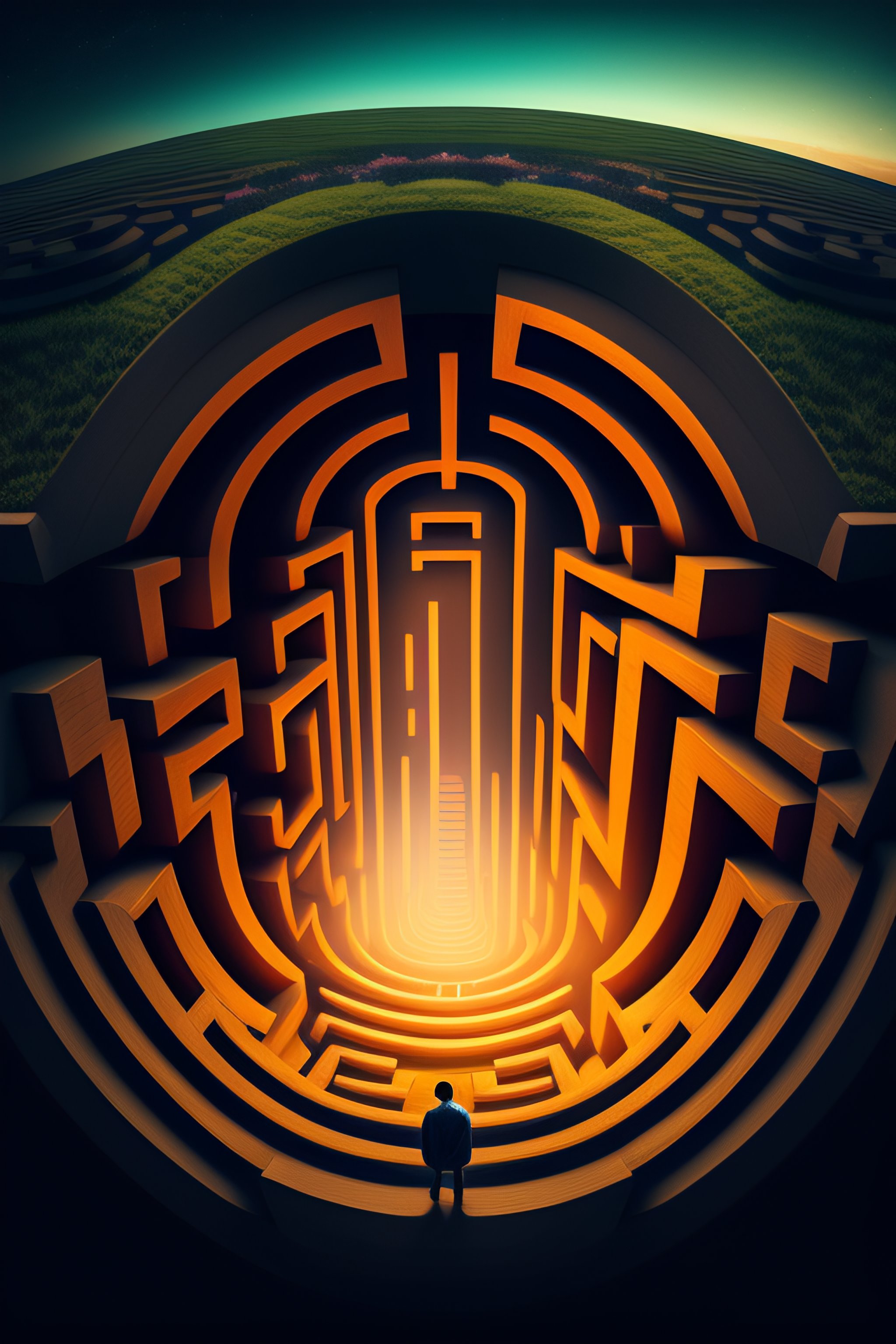 A bird eye vie image of someone lost in a big dark