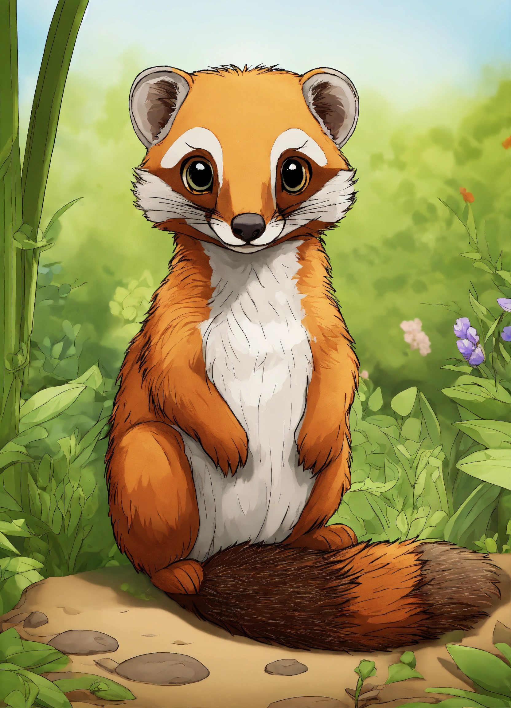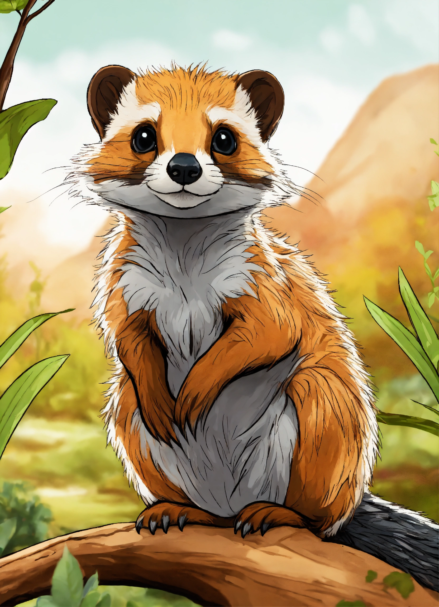 Generate a cute mongoose of the selve, 4k resolution, cartoon-sticker style with clear lines on a pure white background suitable for a children's coloring book.